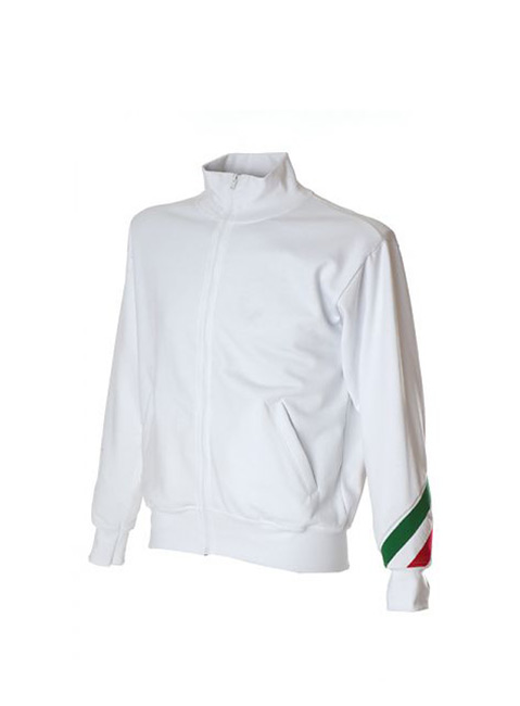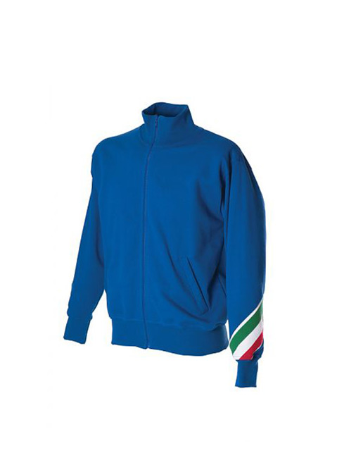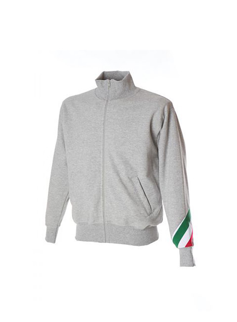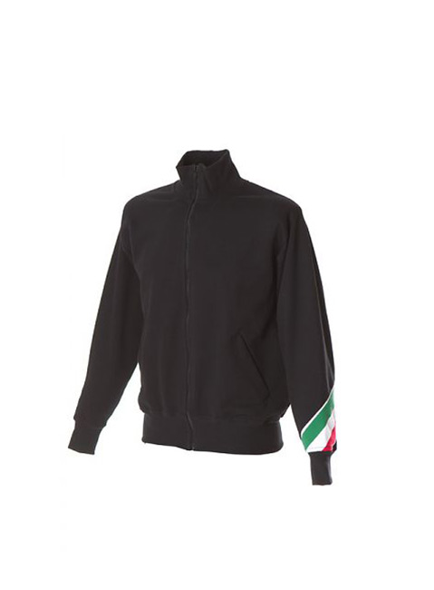 Felpa made in Italy 100% cotone Peso: 280 g/m2 – Collo a lupetto in costina – Zip lunga – Torcia tricolore sul braccio – Due tasche aperte a filetto