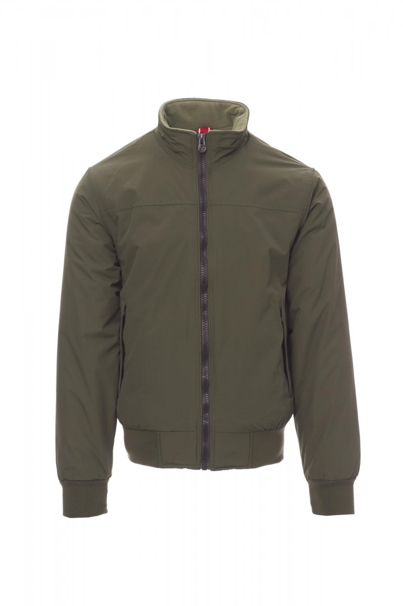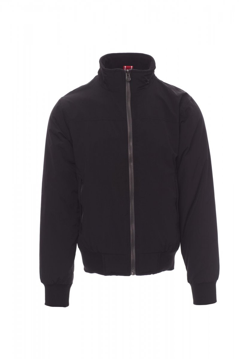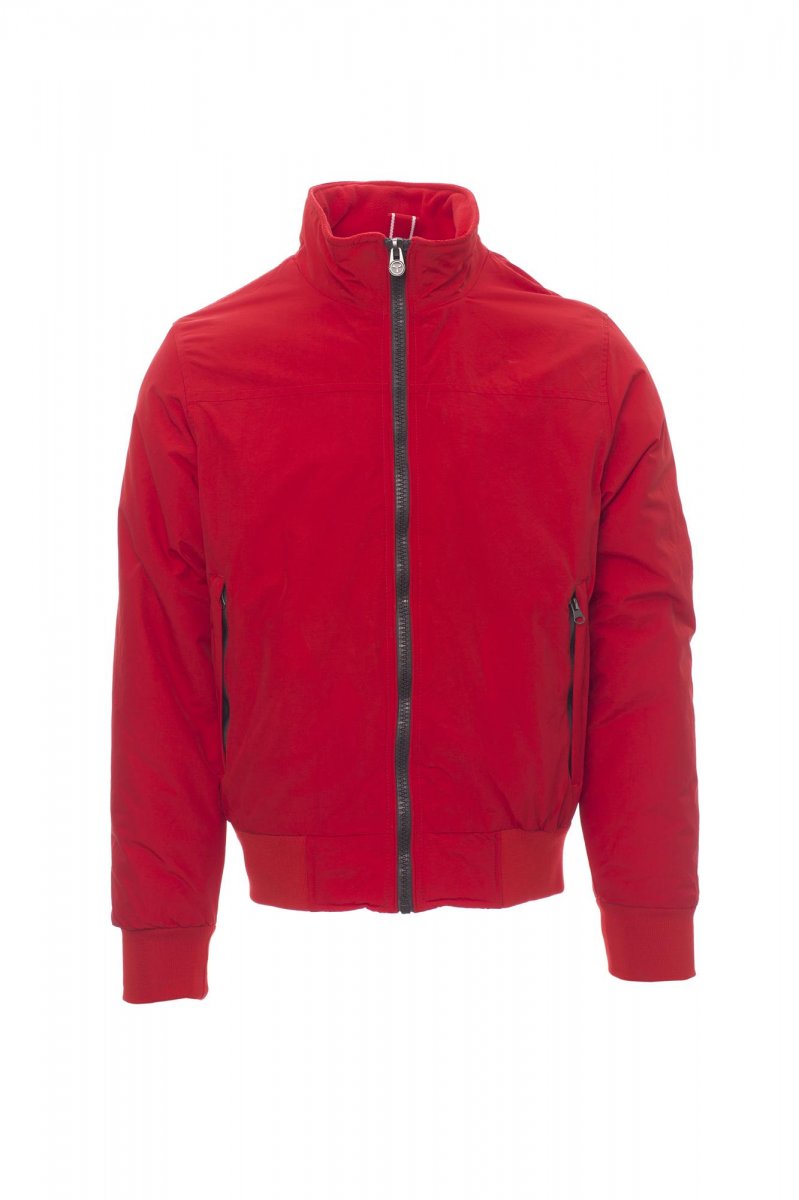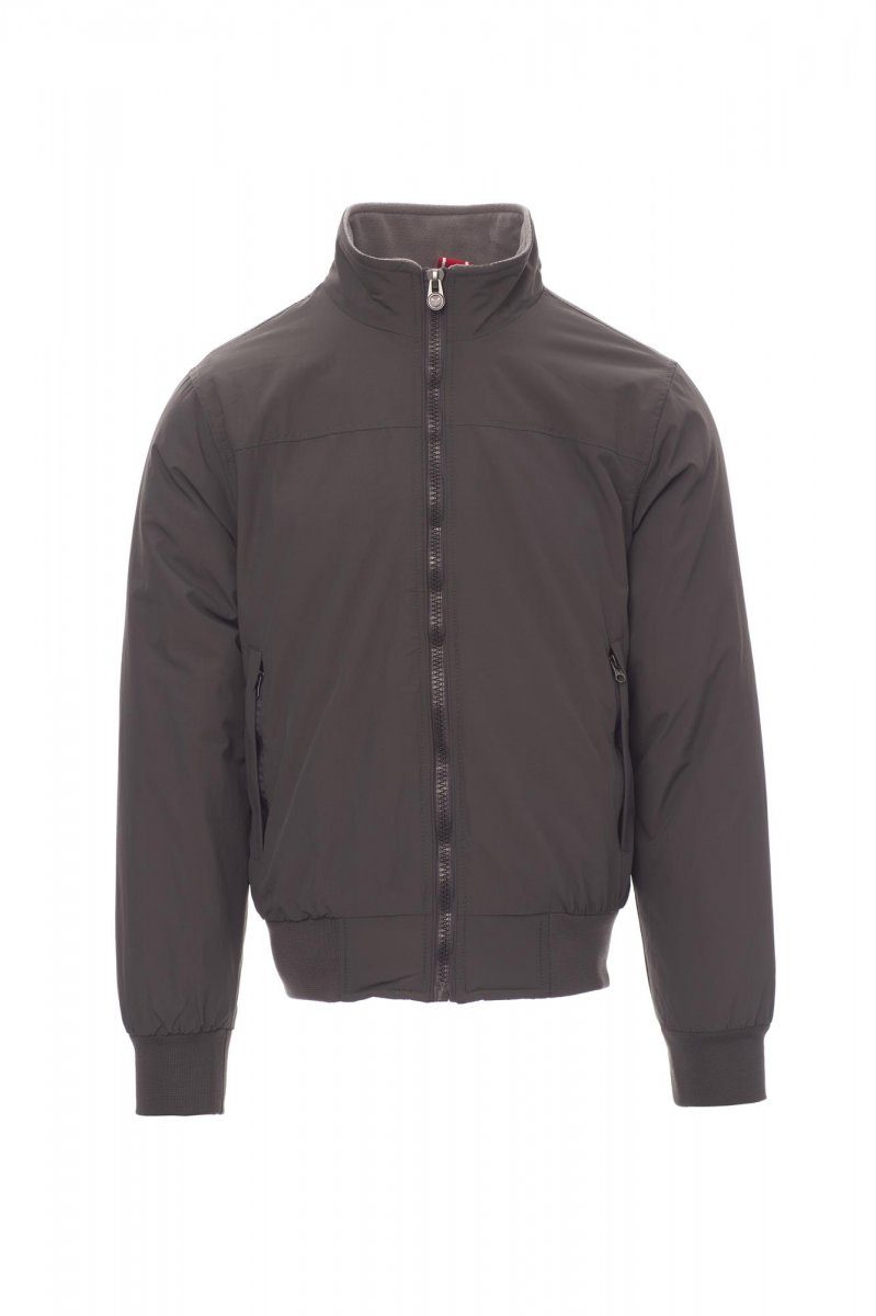 Giubbino con rib elasticizzato in vita e ai polsi, due tasche esterne con zip coperta; interno imbottito e micropile nel colletto e nella schiena, 1 tasca interna porta smartphone con cerniera e passaggio per cuffie, zip al petto e sul fondo per agevolare stampe e ricami.