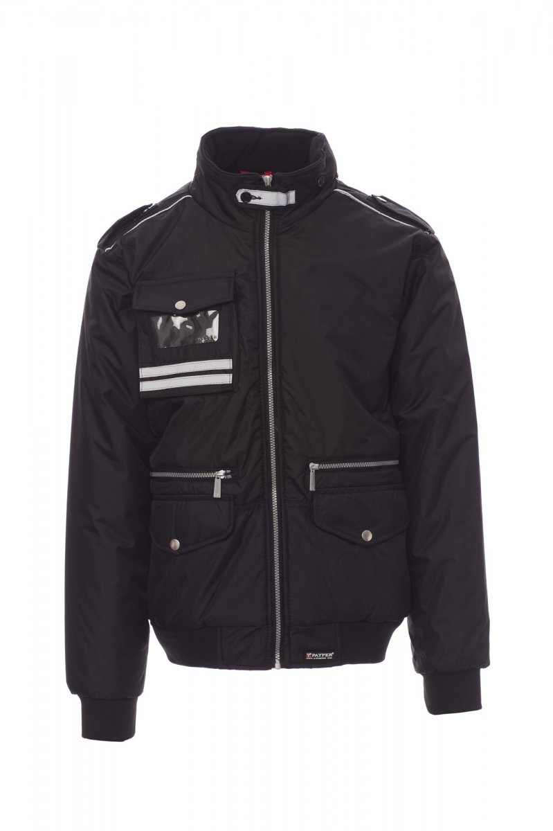Giubbino dal design casual dall’effetto slanciato, con cappuccio richiudibile nel colletto, rib in vita e ai polsi, spalline e chiusura al collo, piping reflex alle spalle e doppia fascia riflettente sulla tasca al petto e sulla schiena, interno colletto in pile, composizione multitasche esterna con un portabadge a scomparsa e due tasche LOCK SYSTEM; interno imbottito, rifinito con fodera in alta densità argentata, schiena in micropile, una tasca interna.