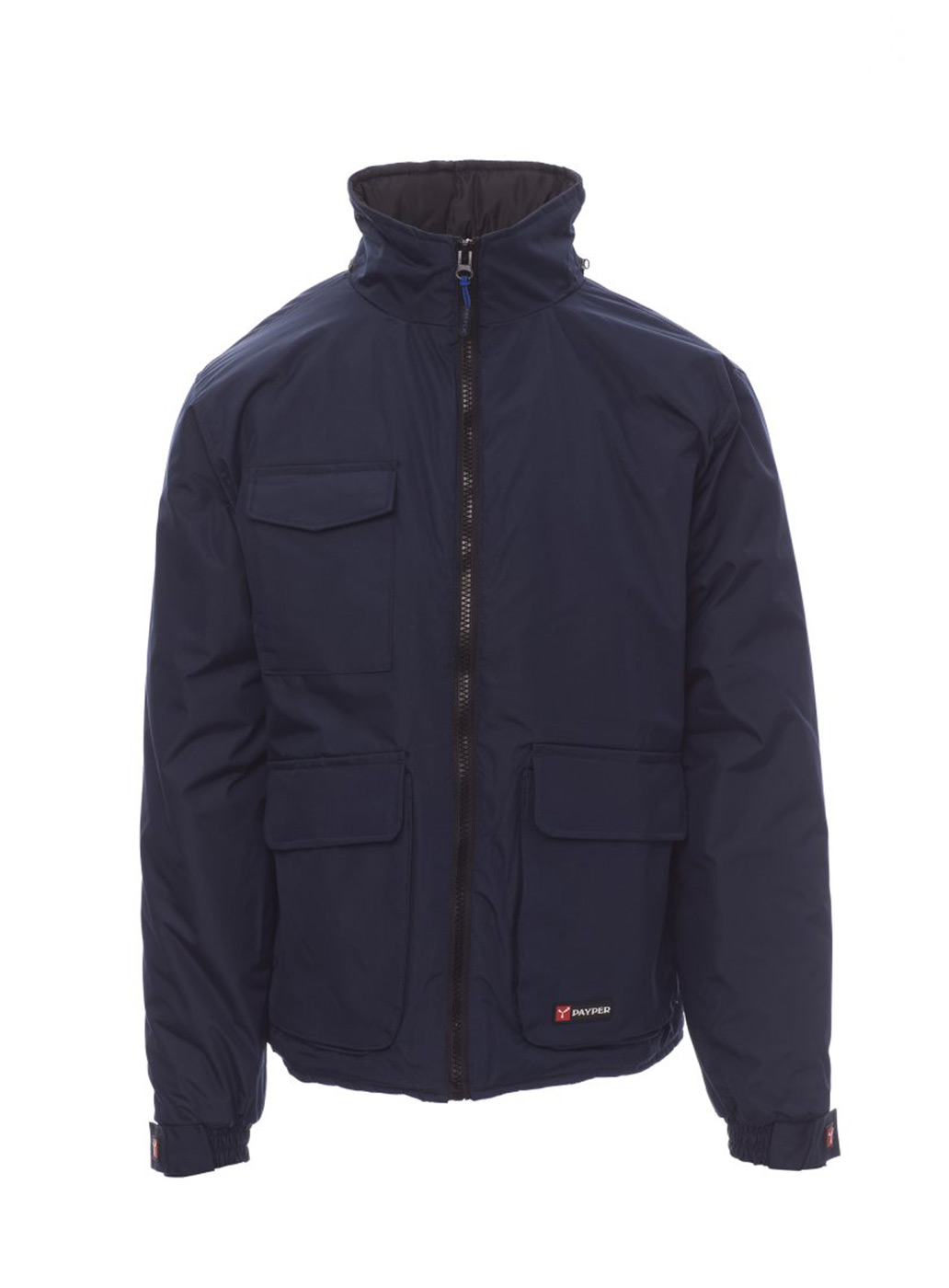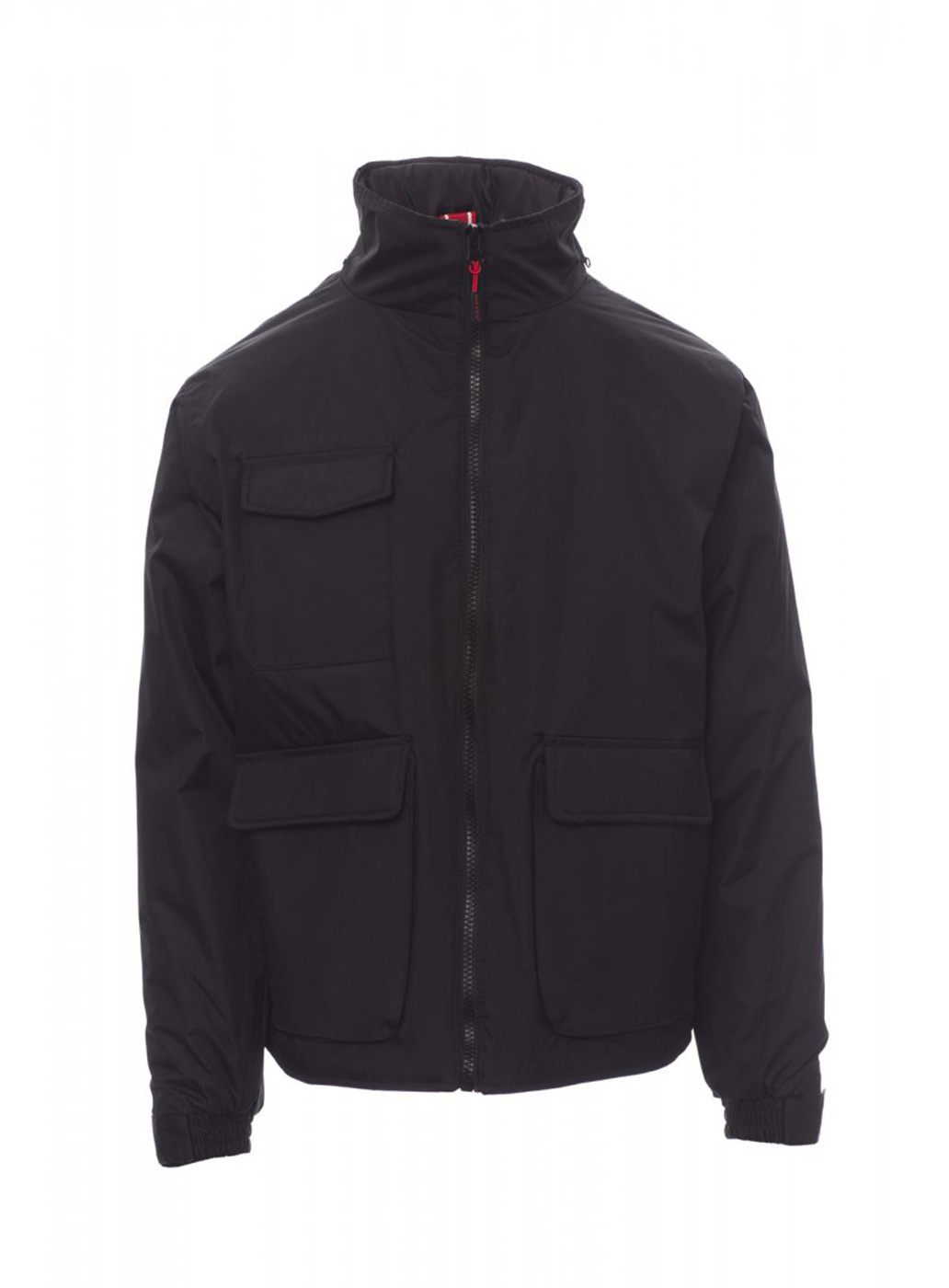 Giubbino unisex, zip 8mm in plastica con cursore in metallo, cappuccio richiudibile nel colletto, elastico e stringi polsi, due ampie tasche frontali LOCK-SYSTEM, due tasche laterali, porta cellulare al petto. Interno: imbottito, zip per agevolare stampe e ricami.