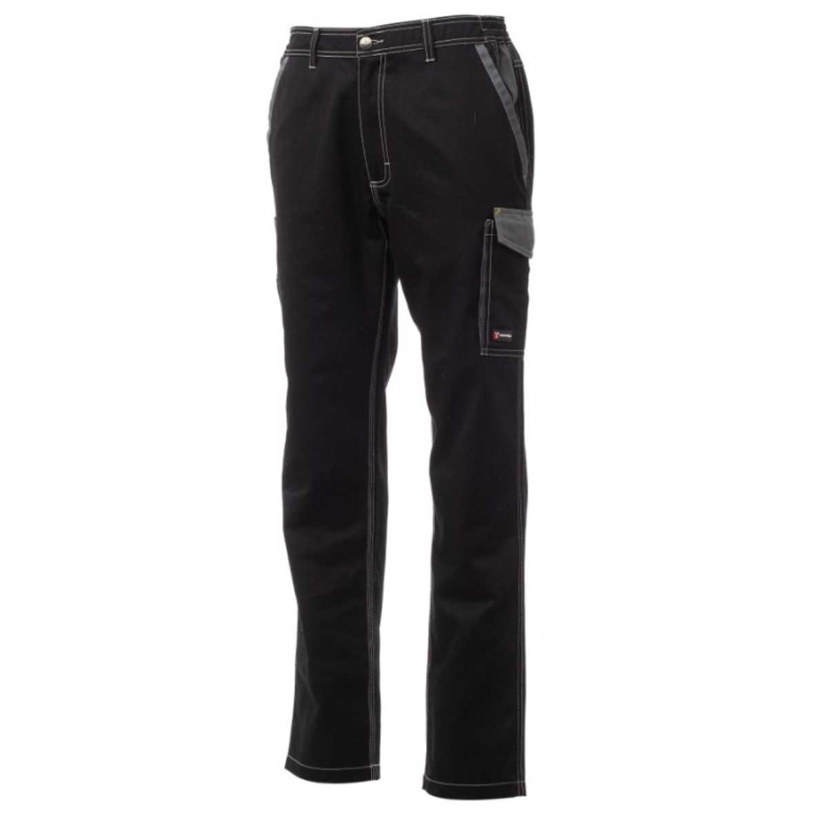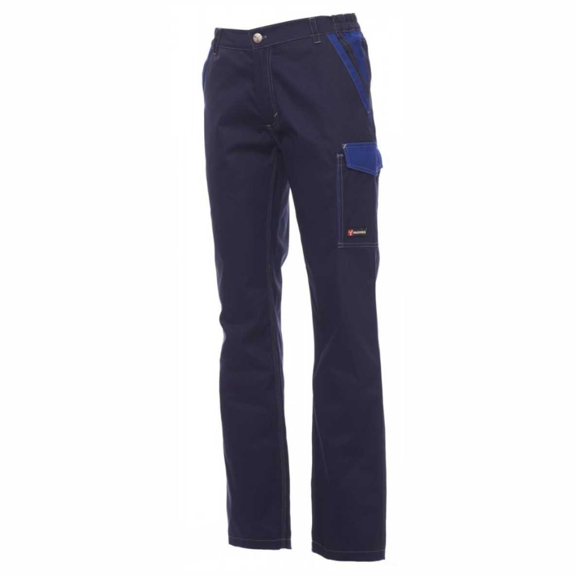 Pantalone unisex, mutistagione, elastici laterali e passanti in vita, chiusura con zip e bottone in metallo, due tasche anteriori a taglio classico e una tasca con zip, una tasca laterale LOCK SYSTEM, una doppia tasca lato sinistro porta metro, due tasche posteriori una aperta e una con patta e velcro. Inserti ed impuntare a contrasto, bande reflex su tasca posteriore, cucitura tripla interno gamba.