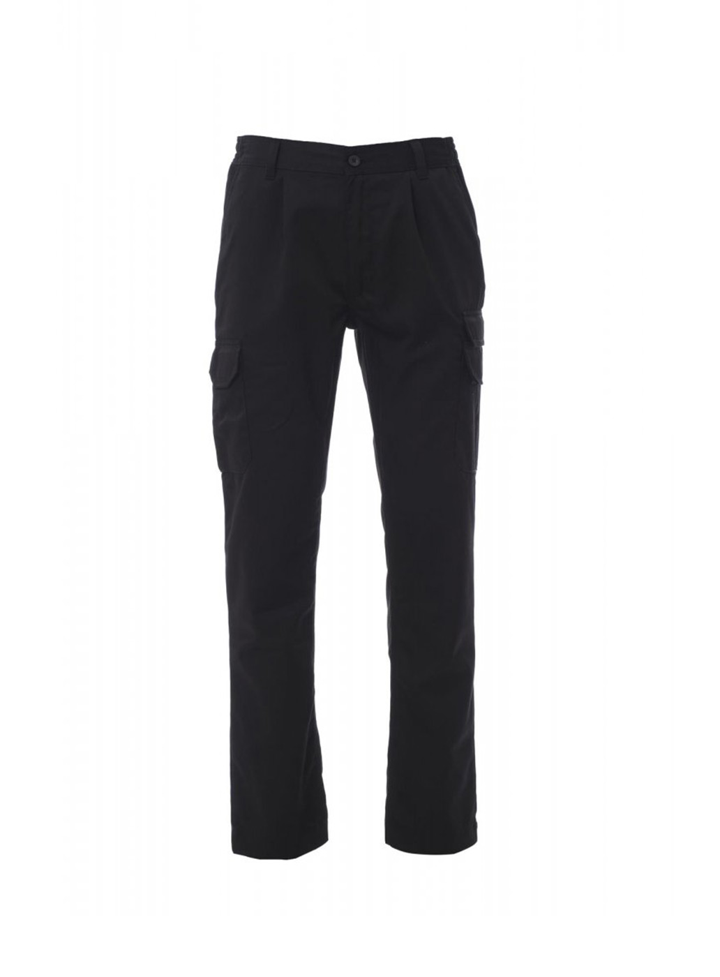Pantalone multitasche con elastico e passanti in vita, chiusura con zip e bottone, cuciture cavallo e interno gamba a triplo ago, due tasche frontali a taglio classico, una tasca laterale sx con patta e una con secur-zip e patta di copertura, una tasca laterale dx con patta spezzata in due per porta metro, due tasche posteriori di cui una con patta di chiusura.