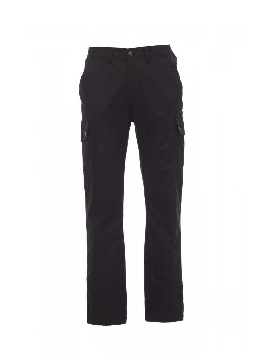 Pantalone uomo, invernale foderato, elastici laterali e passanti in vita, chiusura con zip e bottone in metallo, due tasche anteriori a taglio classico, due tasche laterali con patta e bottoni automatici, una tasca con zip lato sinistro, un portametro a scomparsa lato destro, due tasche posteriori a filo con asola e bottone.