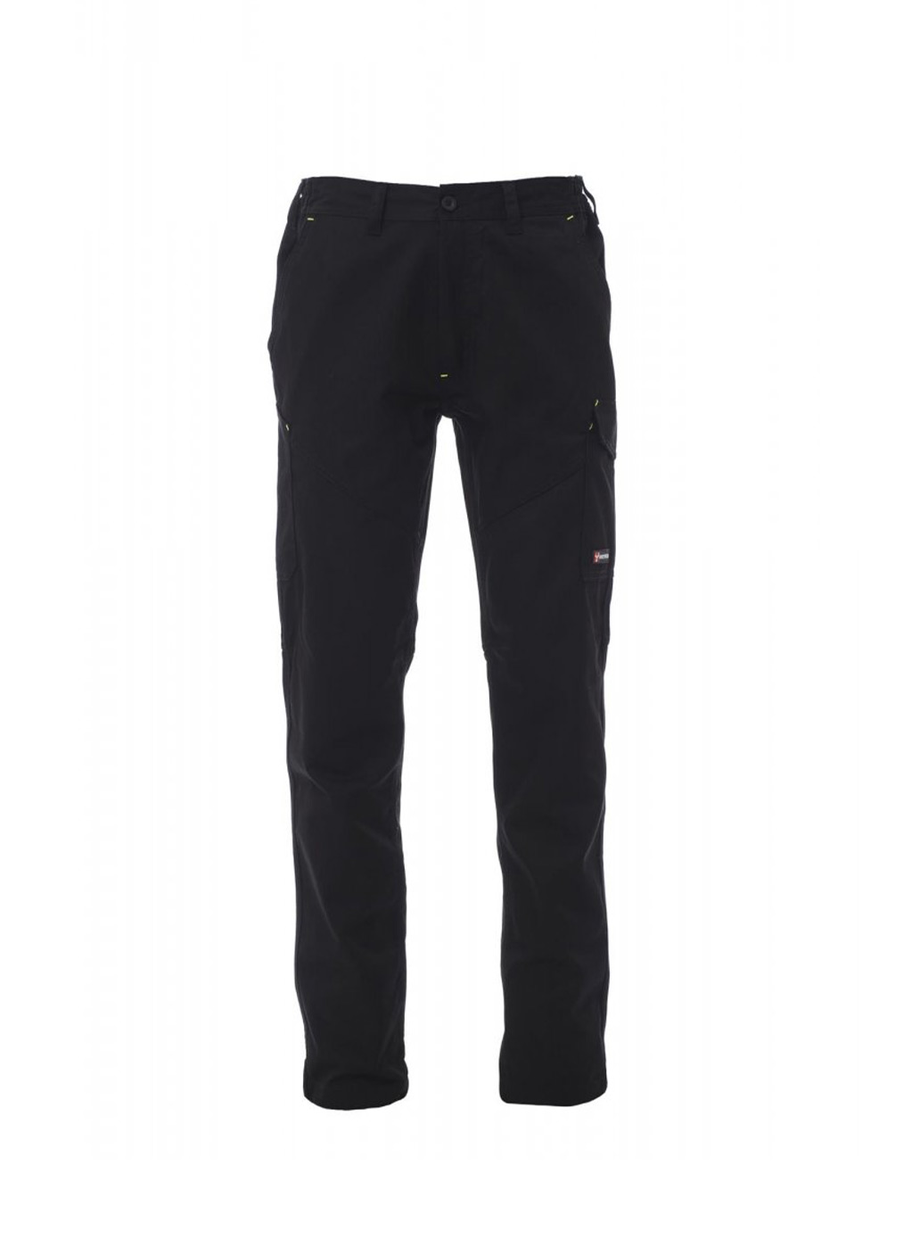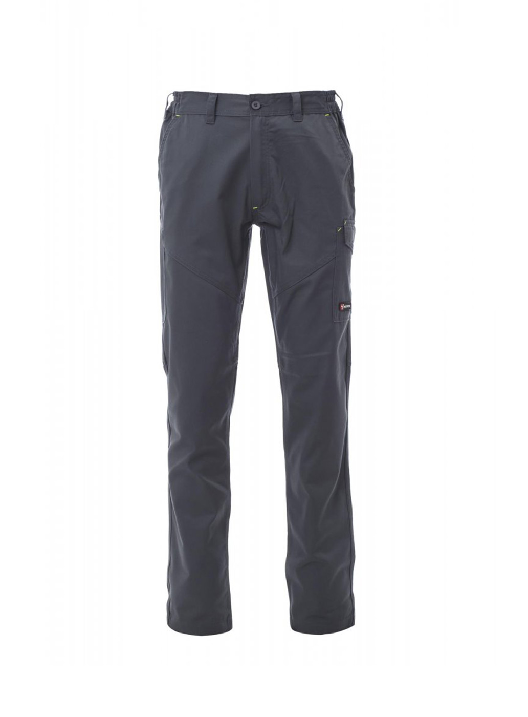 Pantalone unisex, multistagione, elastici laterali e passanti in vita, chiusura con zip e bottone in plastica, due tasche anteriori a taglio classico, una tasca laterale LOCK SYSTEM, un porta metro, due tasche posteriori una aperta e una con patta e velcro, impunture in tinta, bande reflex su tasca posteriore, cuciture triple.