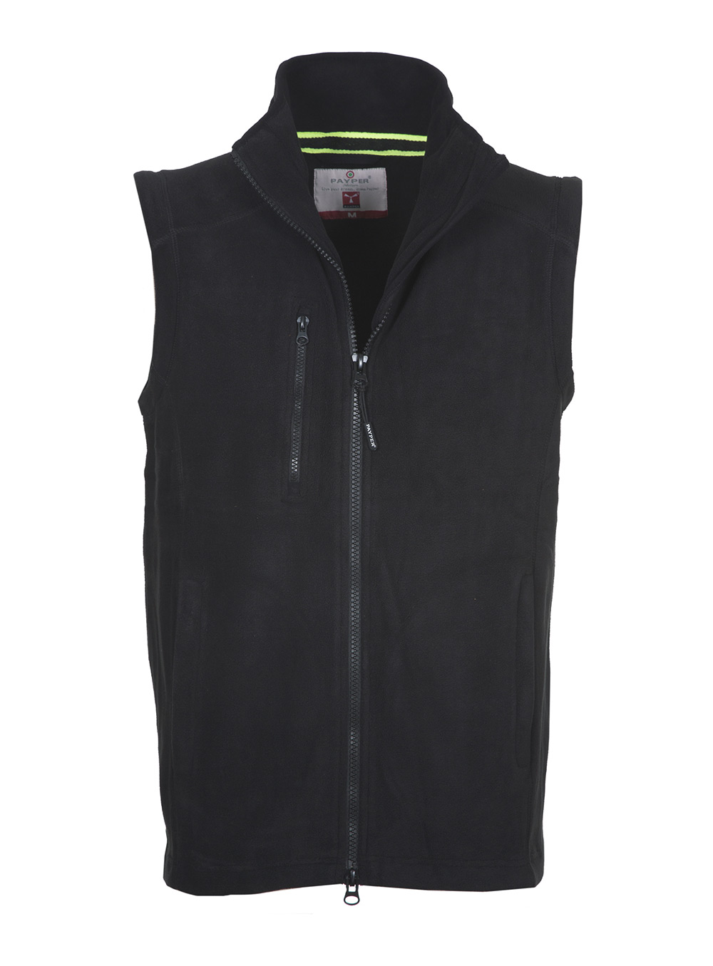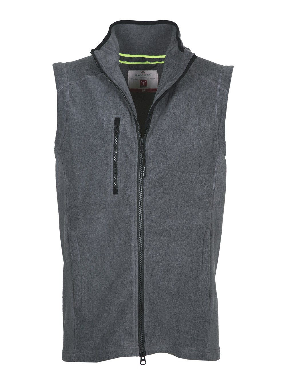 Gilet taglio sportivo in micropile, full zip con doppio cursore; due tasche frontali con zip coperta e una tasca al petto con zip.