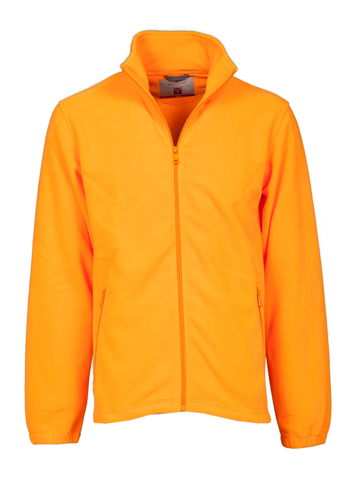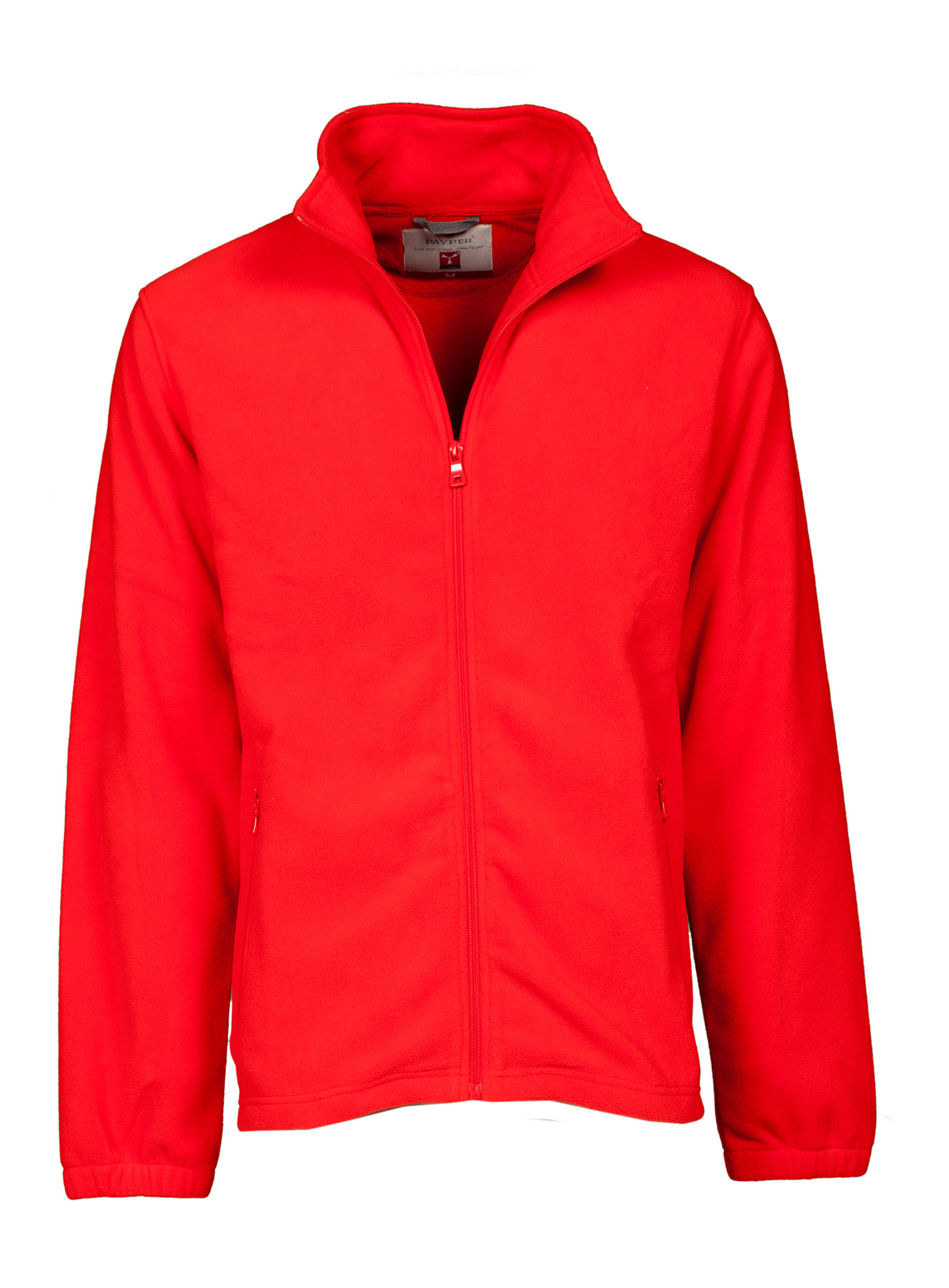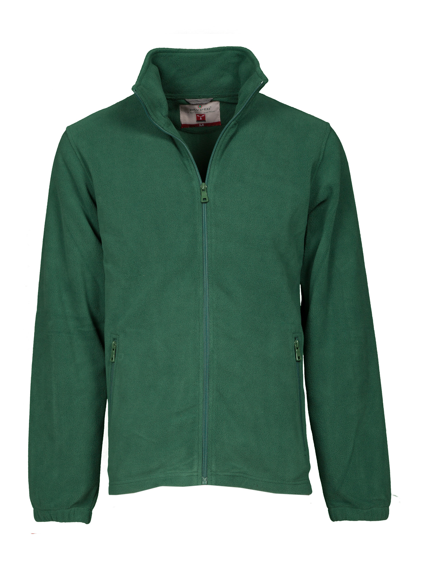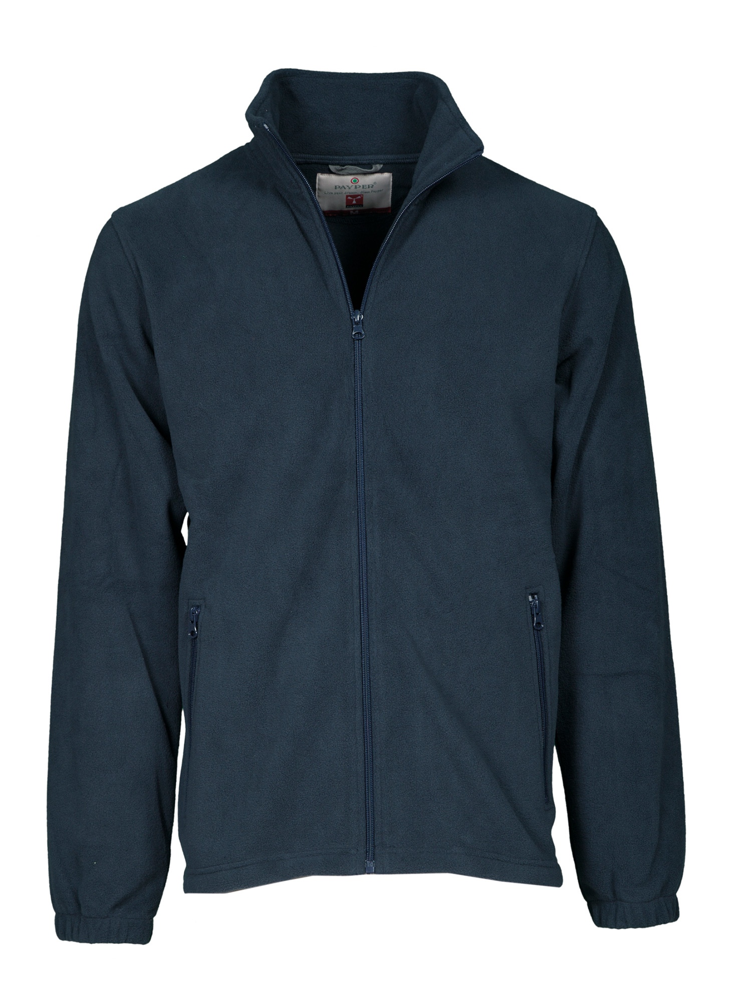 Pile full zip con manica a giro, zip in tinta in nylon con cursore singolo, due tasche con zip, elastico stringi polso e fondo non sagomato.
