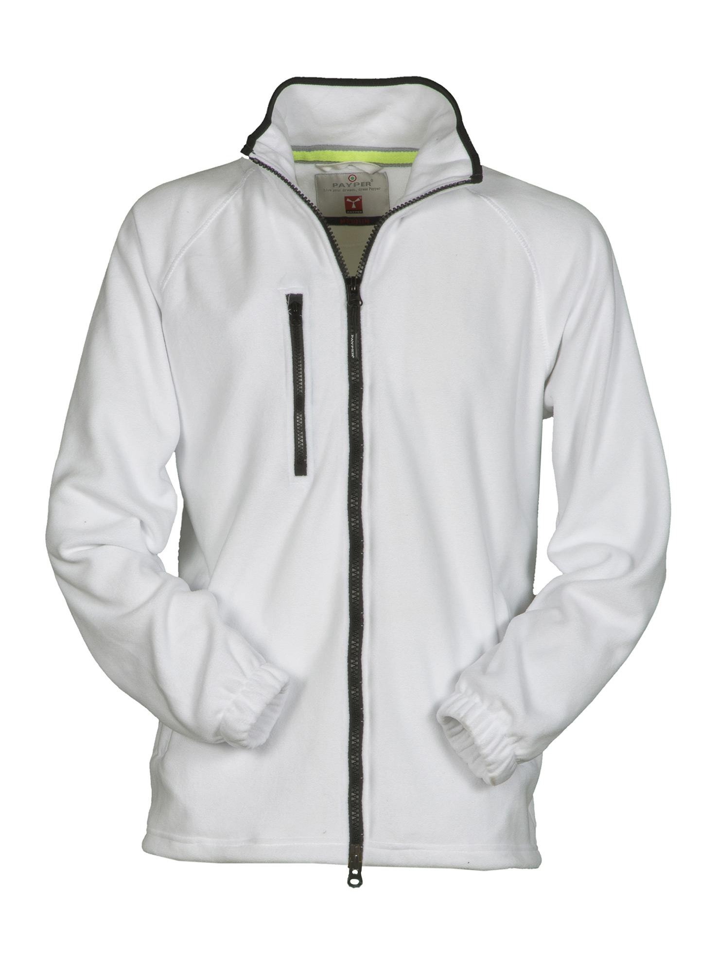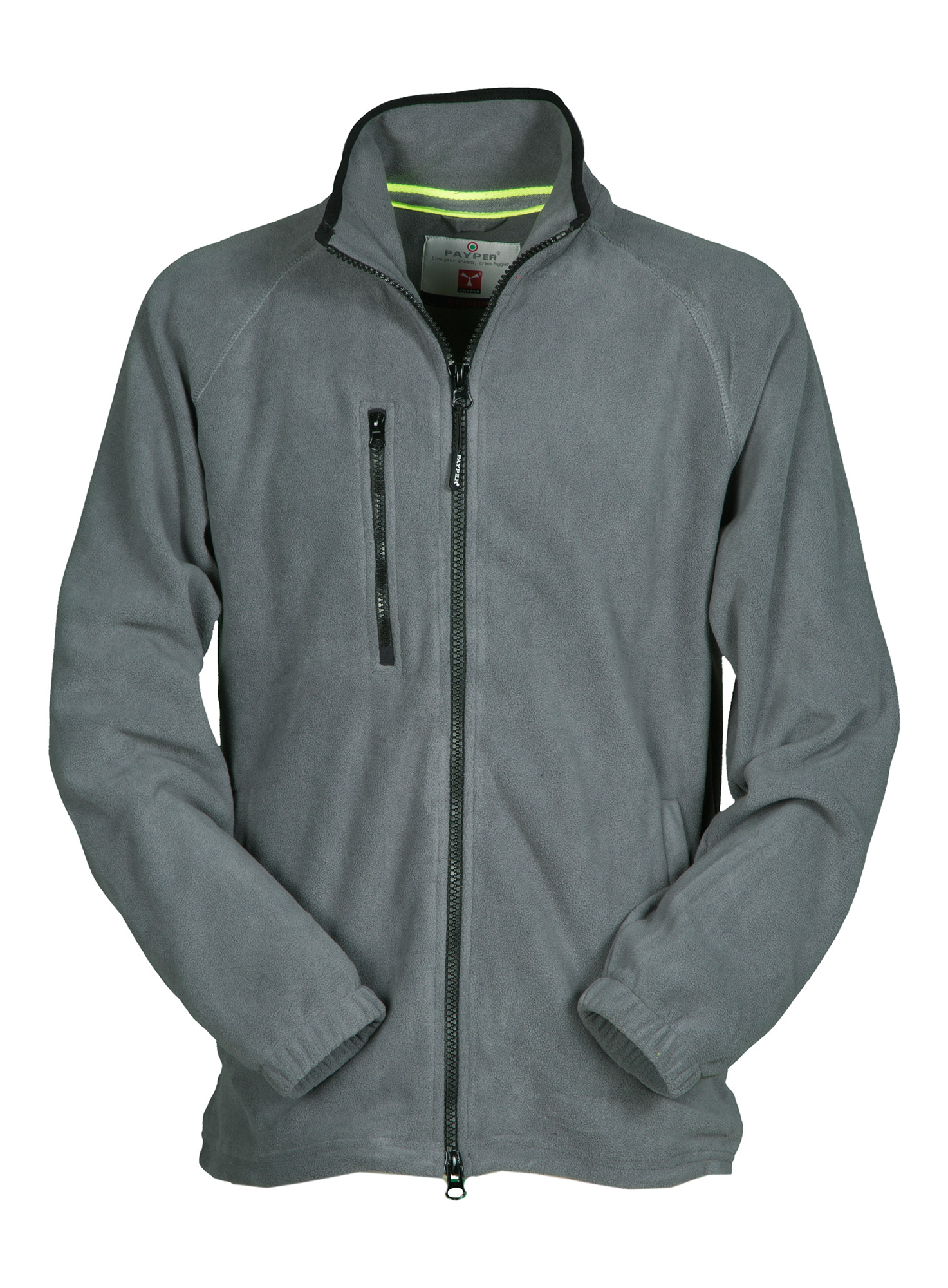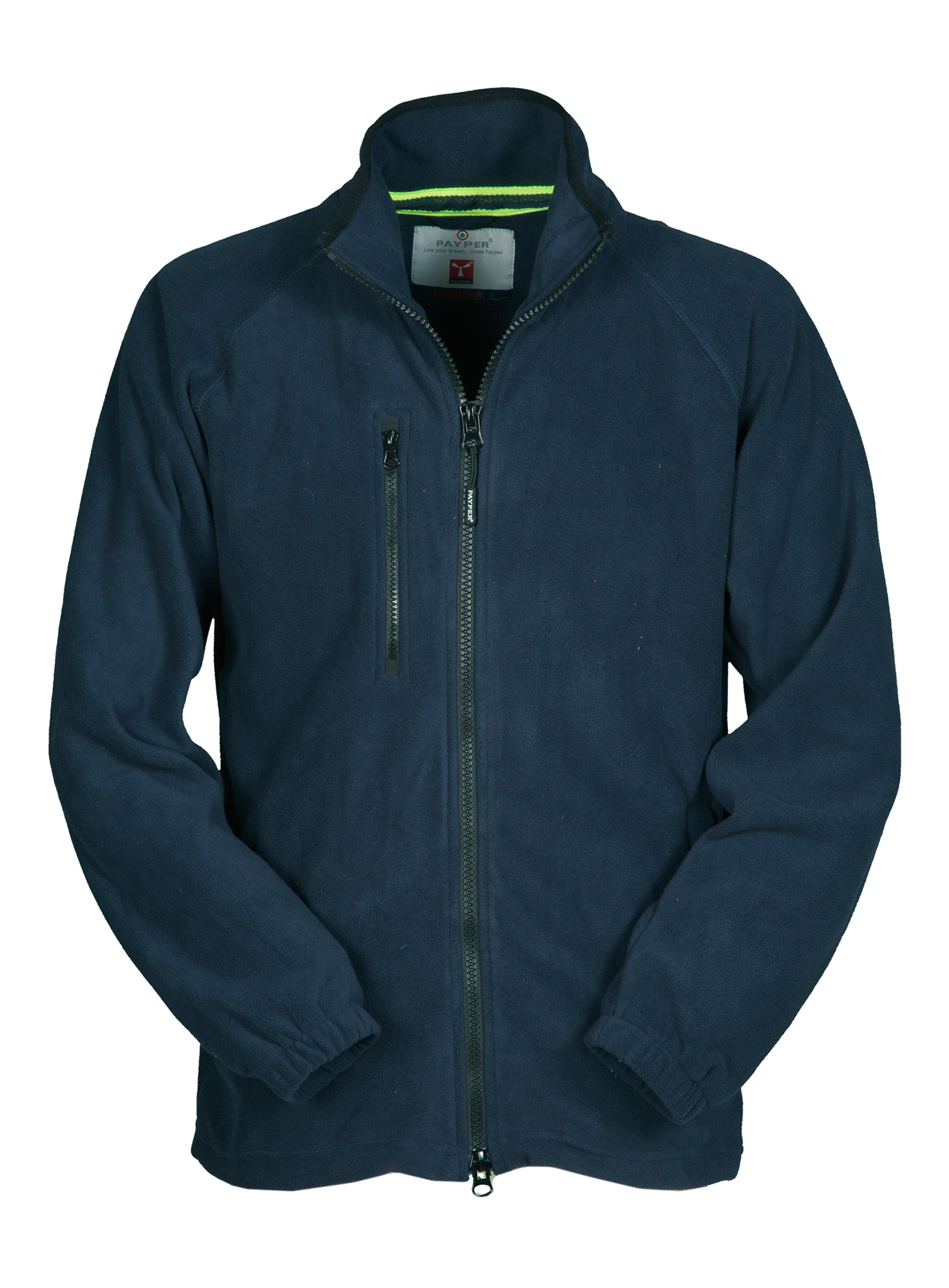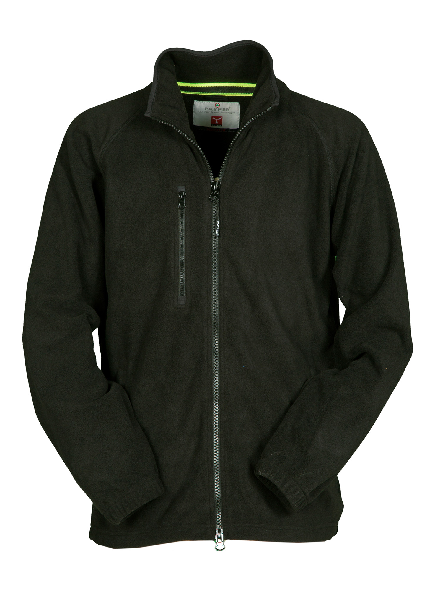 Micropile con zip intera di colore nero e manica raglan, coulisse regolabile a fondo giacca, elastici stringi polso, due tasche con zip nascosta e una tasca al petto con zip. Collo con bordatura in contrasto, cuciture rinforzate.