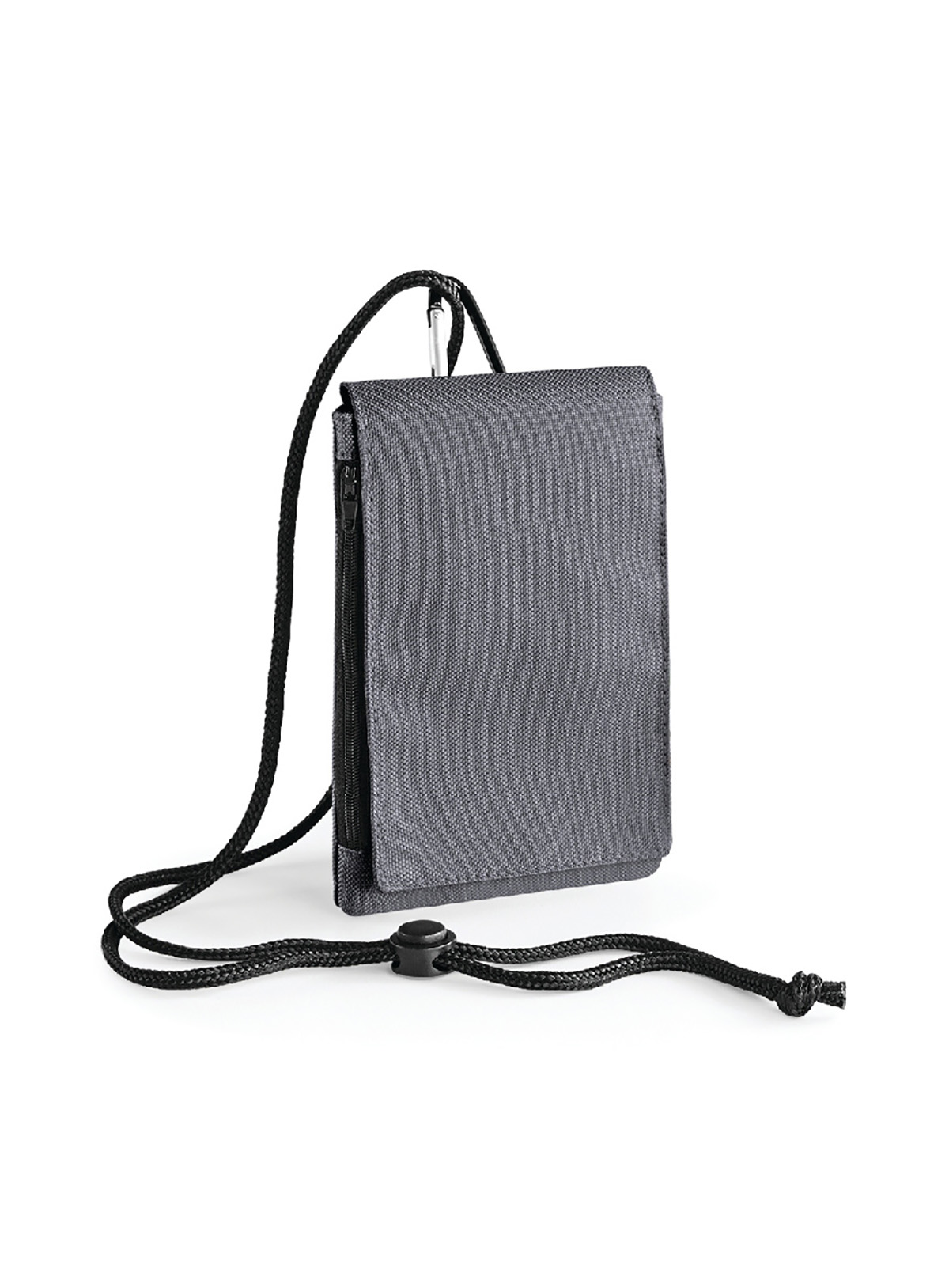 Cordicella per portarlo al collo removibile, passante per cintura e moschettone.