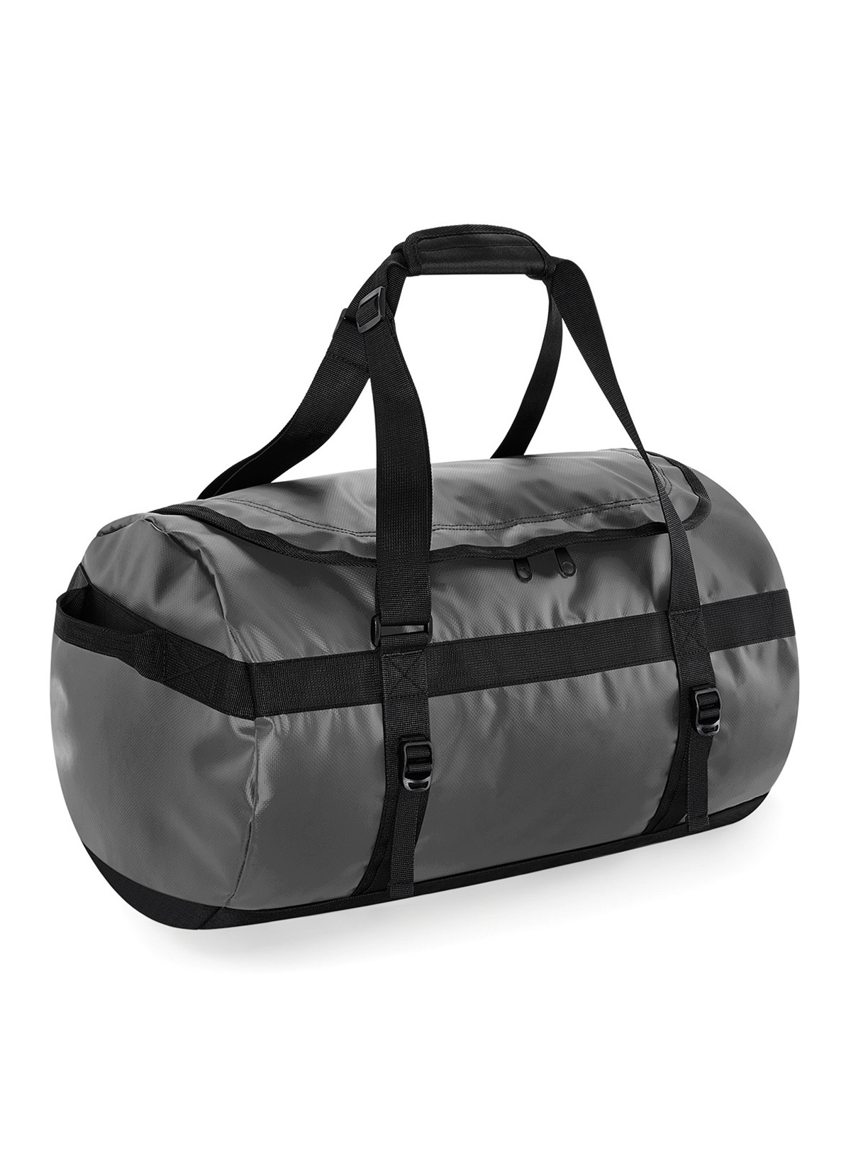 Tessuto impermeabile e resistente, bretelle per la regolazione, chiusura con ampia cerniera per facilitare l’accesso, tasche interne a rete, può essere portata a mano o in spalla, gancio per presa a mano, etichetta facilmente rimovibile.