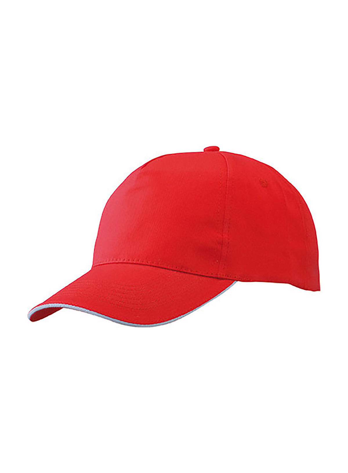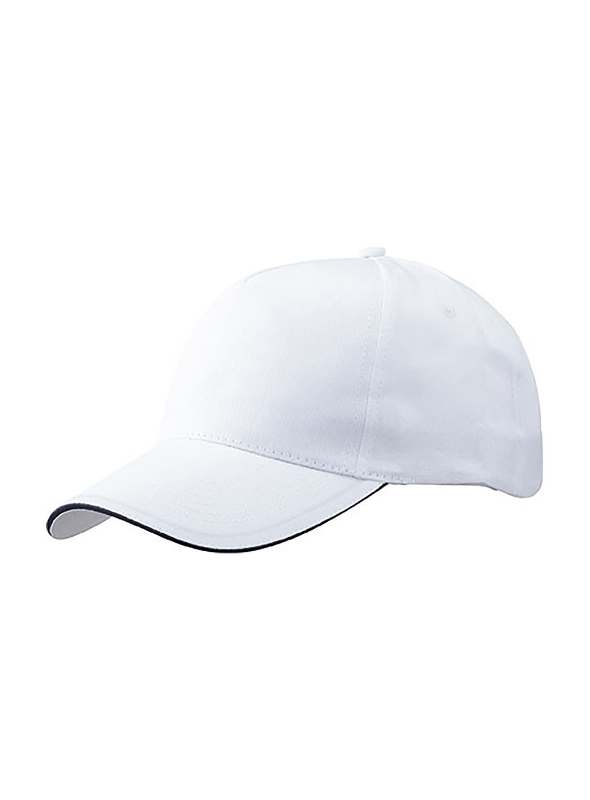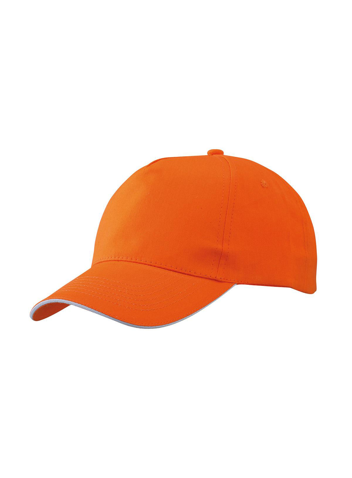 Promo Cap a 5 pannelli con sandwich a contrasto Pannelli frontali leggermente laminati, 4 fori di aerazione imbastiti, 6 cuciture sulla visiera, Chiusura in velcro, Fascetta tergisudore in cotone, Sandwich