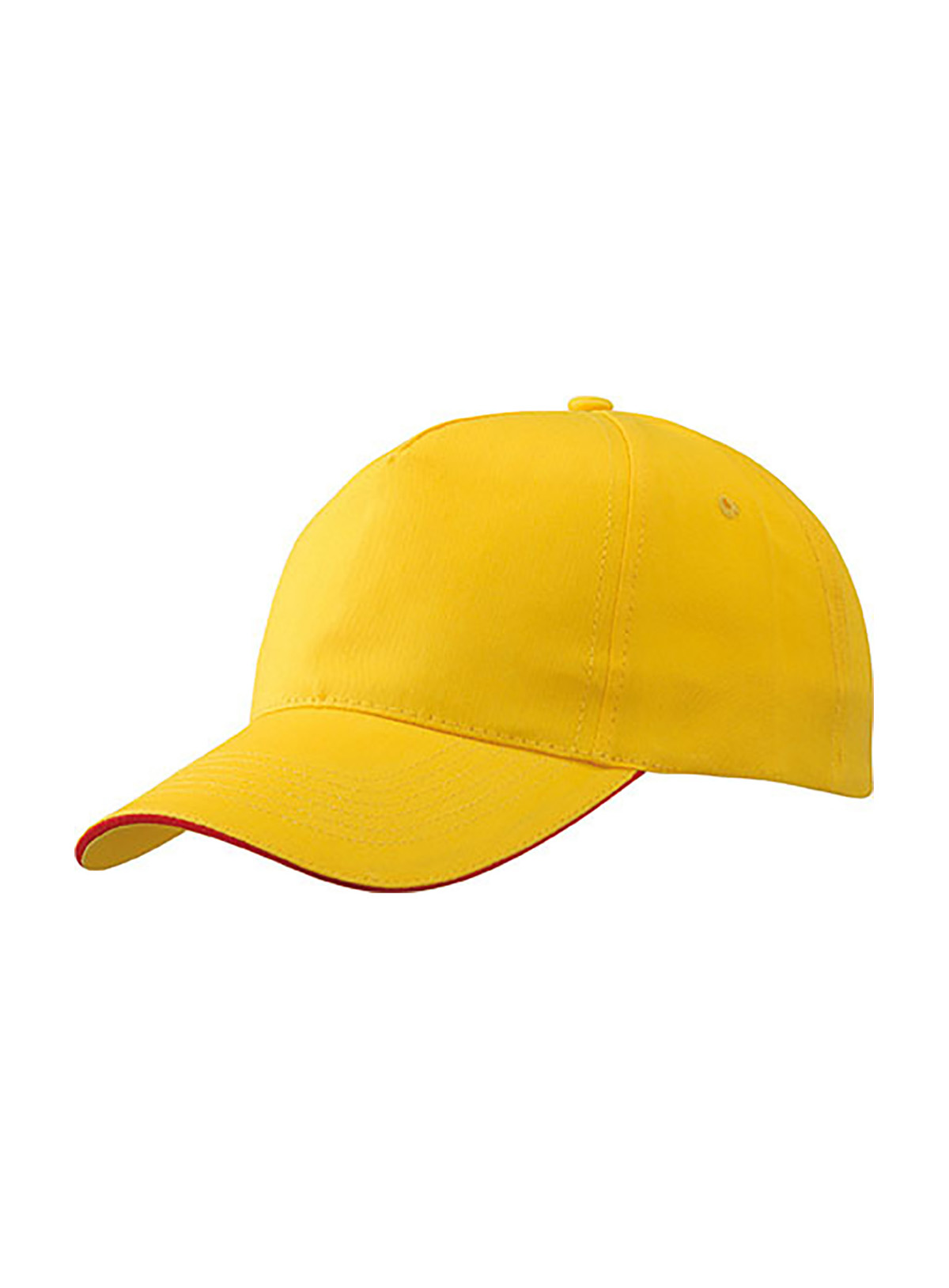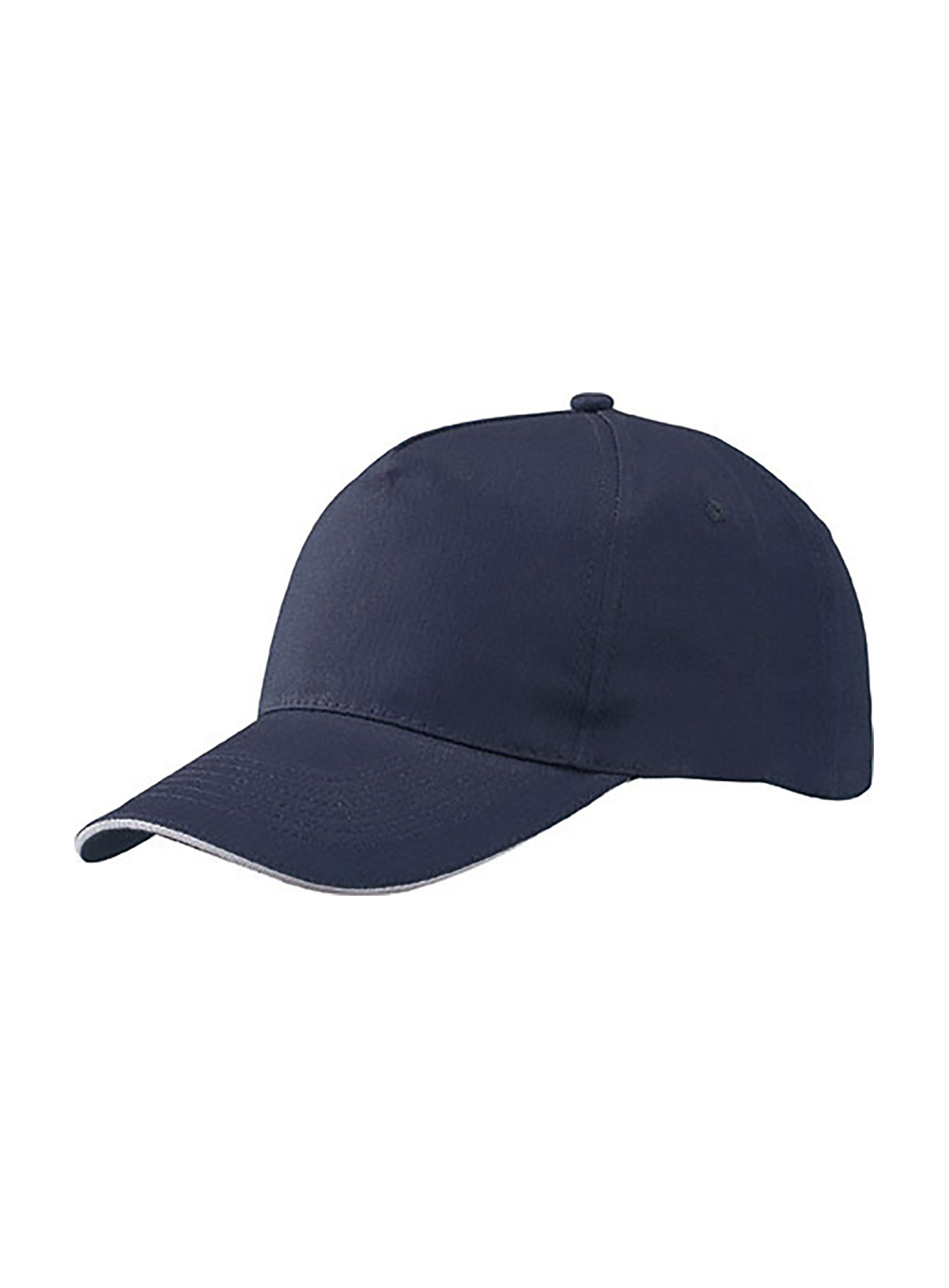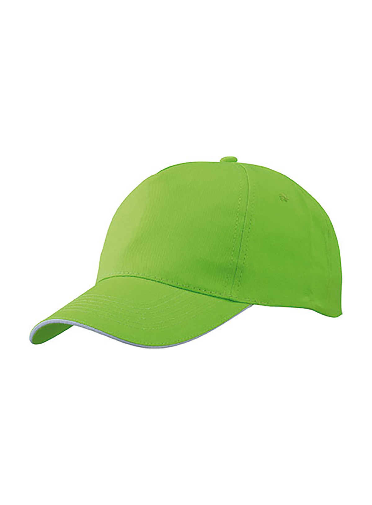 Promo Cap a 5 pannelli con sandwich a contrasto Pannelli frontali leggermente laminati, 4 fori di aerazione imbastiti, 6 cuciture sulla visiera, Chiusura in velcro, Fascetta tergisudore in cotone, Sandwich