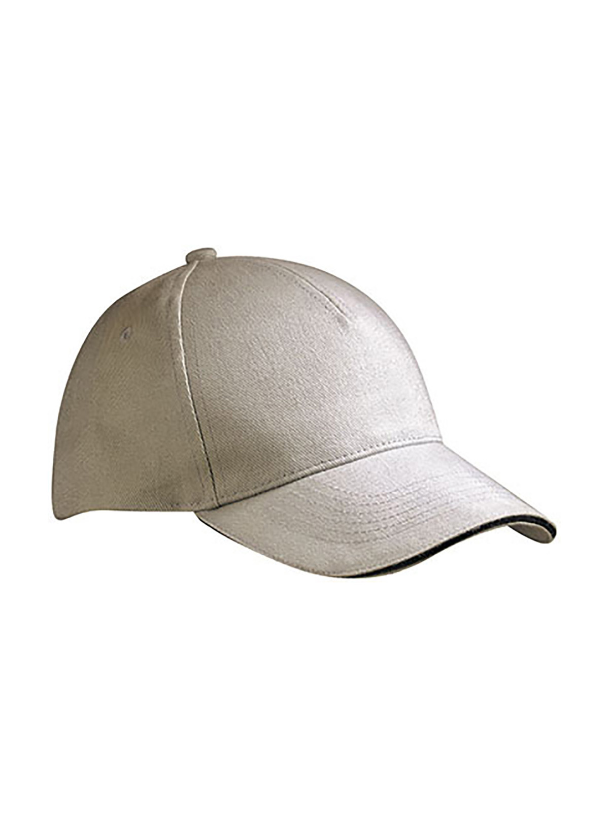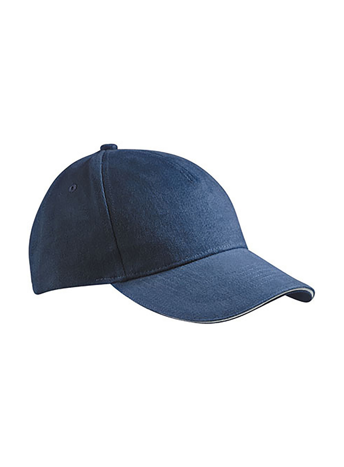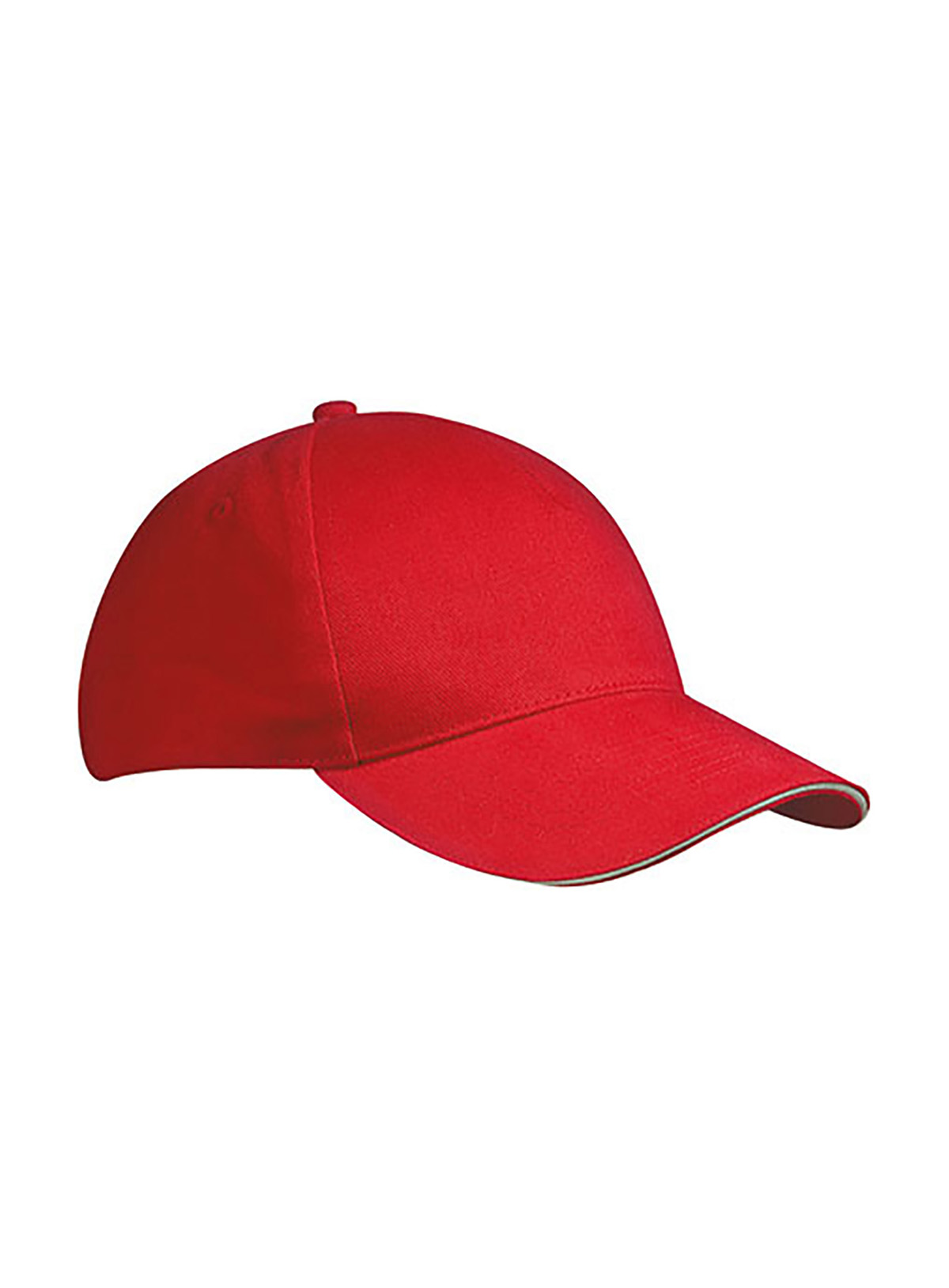 Cap a 5 pannelli di alta qualità con sandwich a contrasto 4 fori traspiranti imbastiti, 6 cuciture decorative sulla visiera. Pannello frontale laminato. Fascetta tergisudore imbottita in satin. Chiusura in velcro, cotone spazzolato ,velcro,policromo, Sandwich