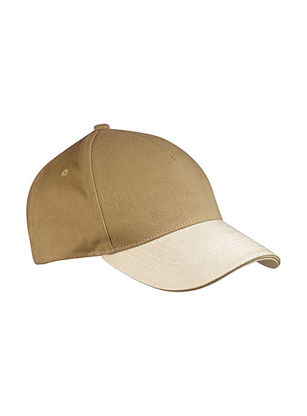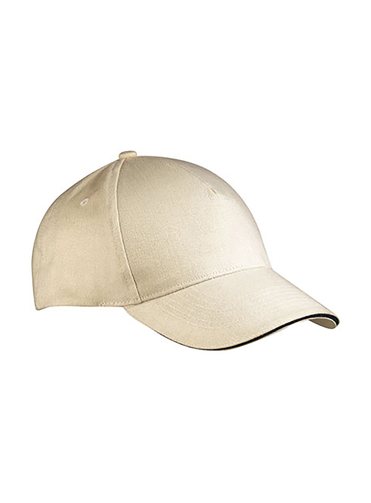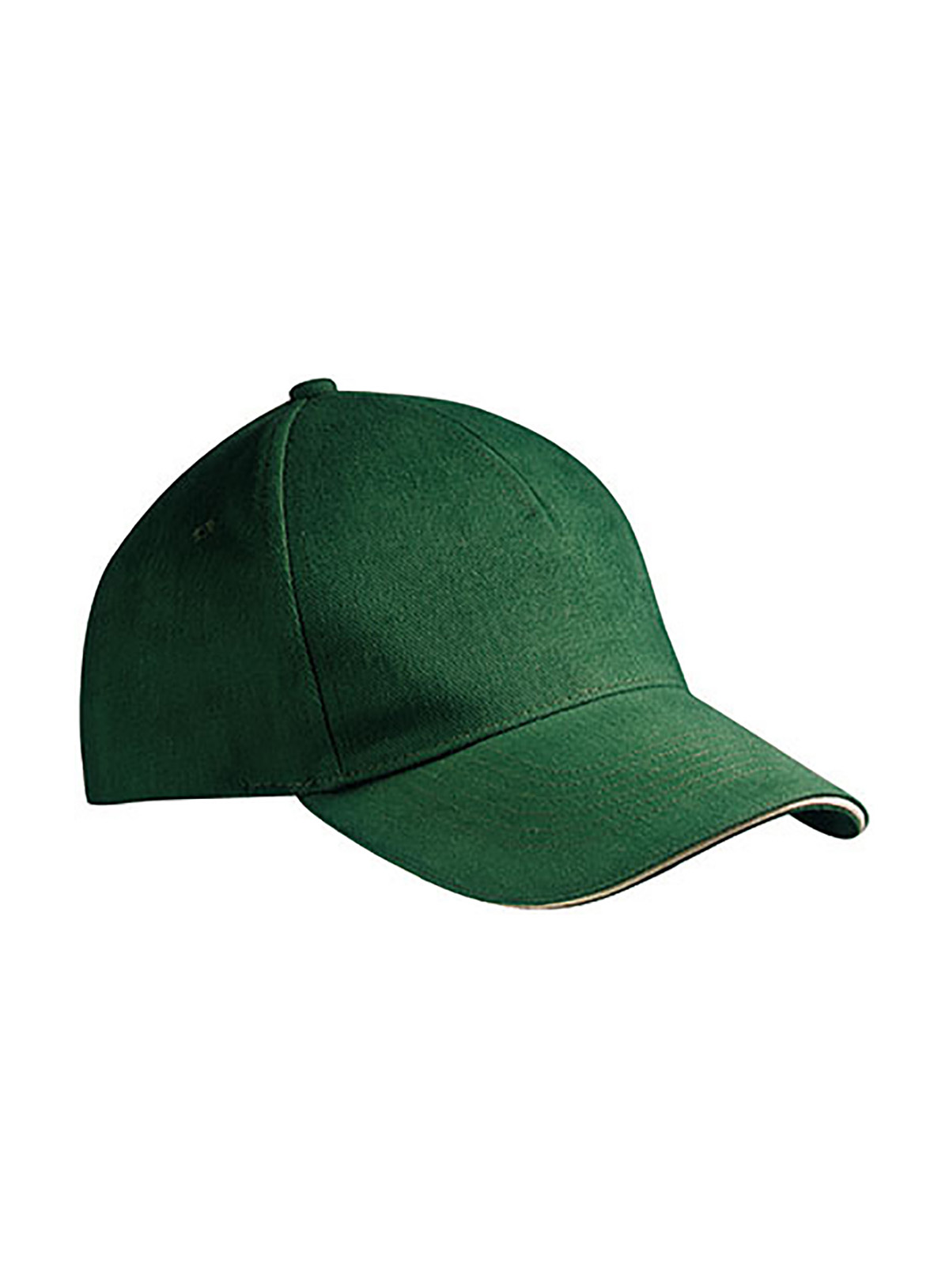 Cap a 5 pannelli di alta qualità con sandwich a contrasto 4 fori traspiranti imbastiti, 6 cuciture decorative sulla visiera. Pannello frontale laminato. Fascetta tergisudore imbottita in satin. Chiusura in velcro, cotone spazzolato ,velcro,policromo, Sandwich