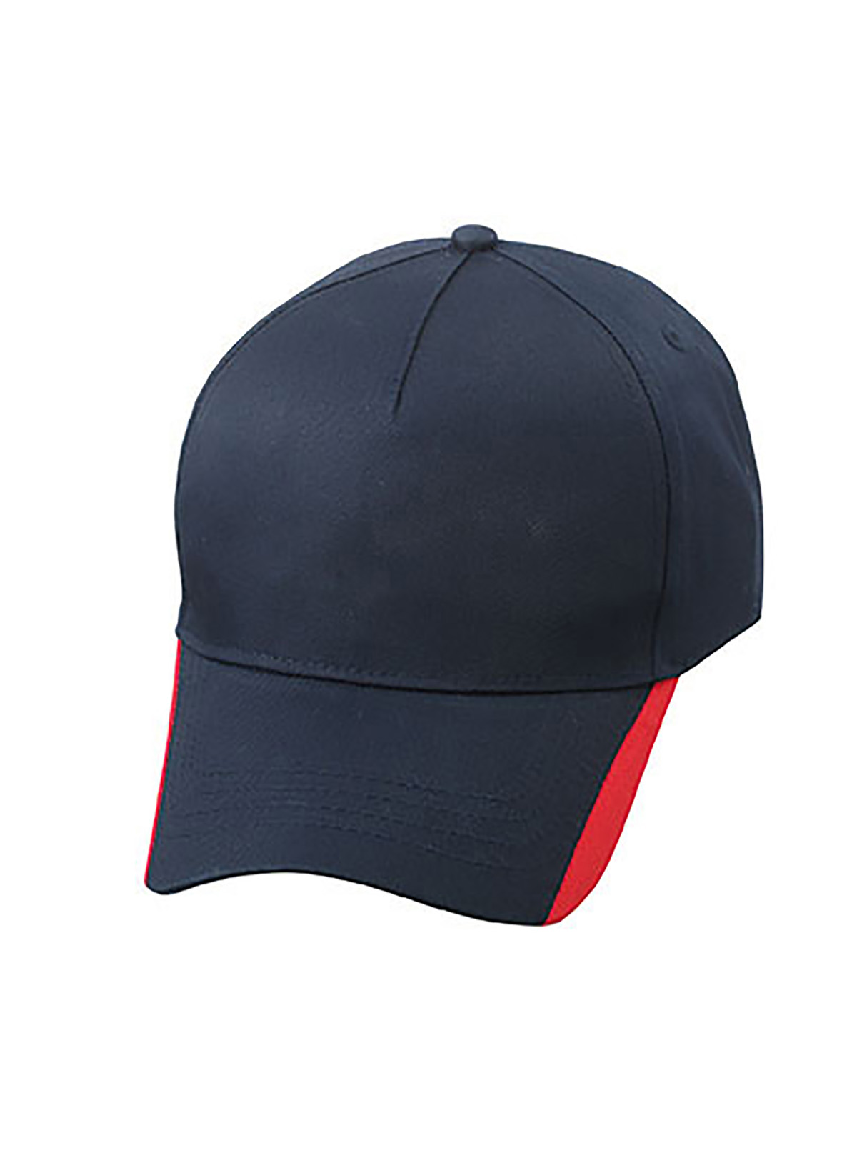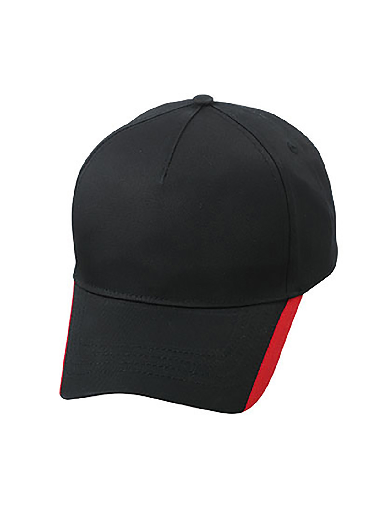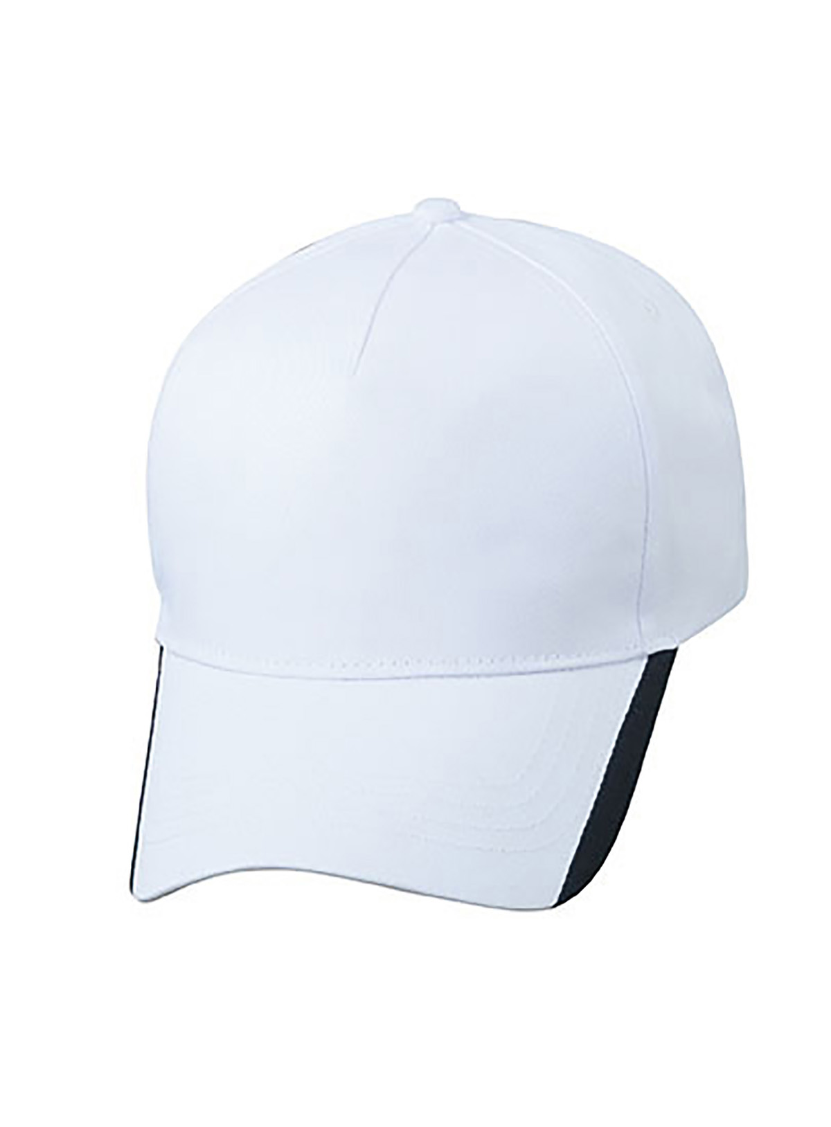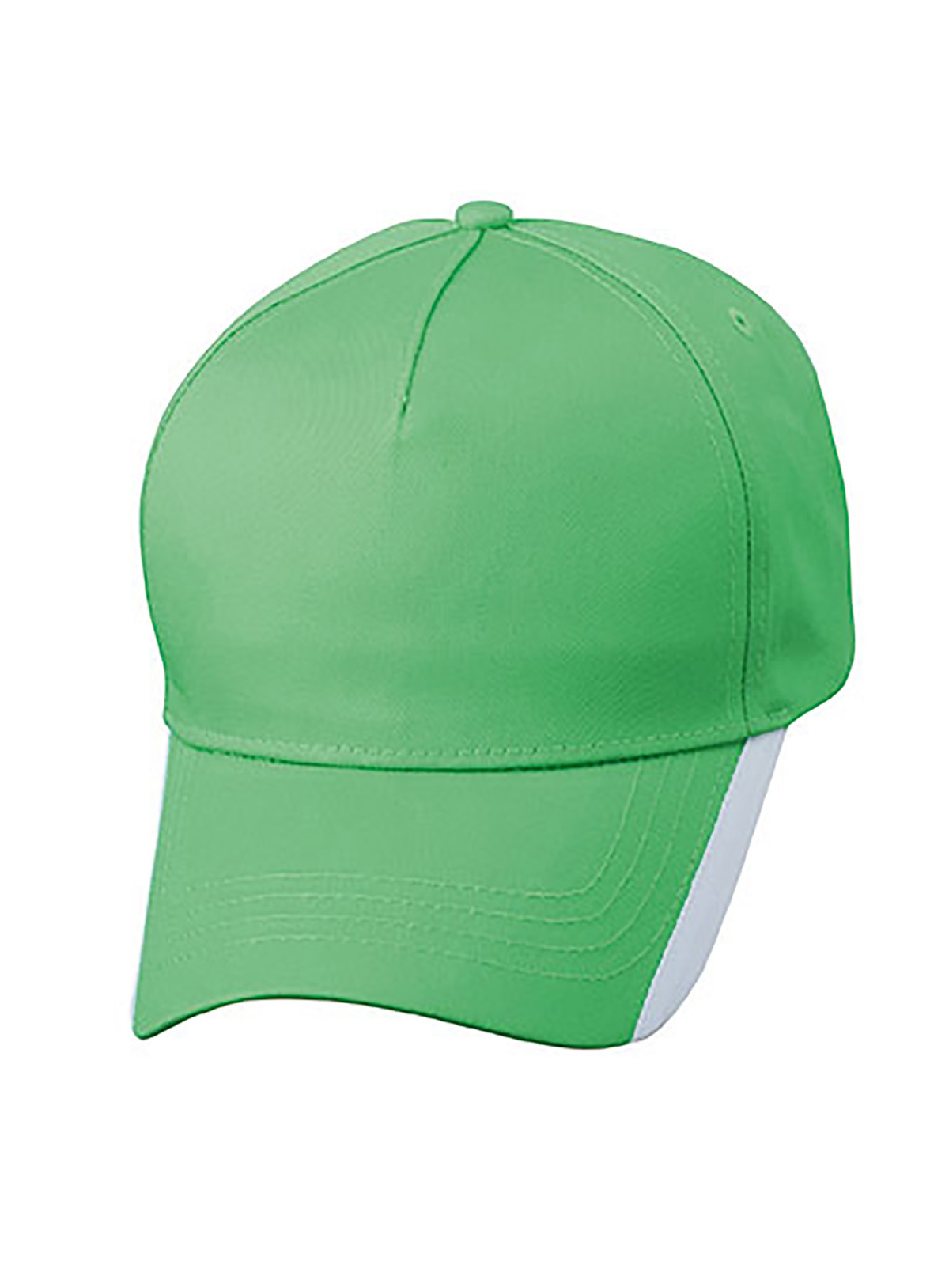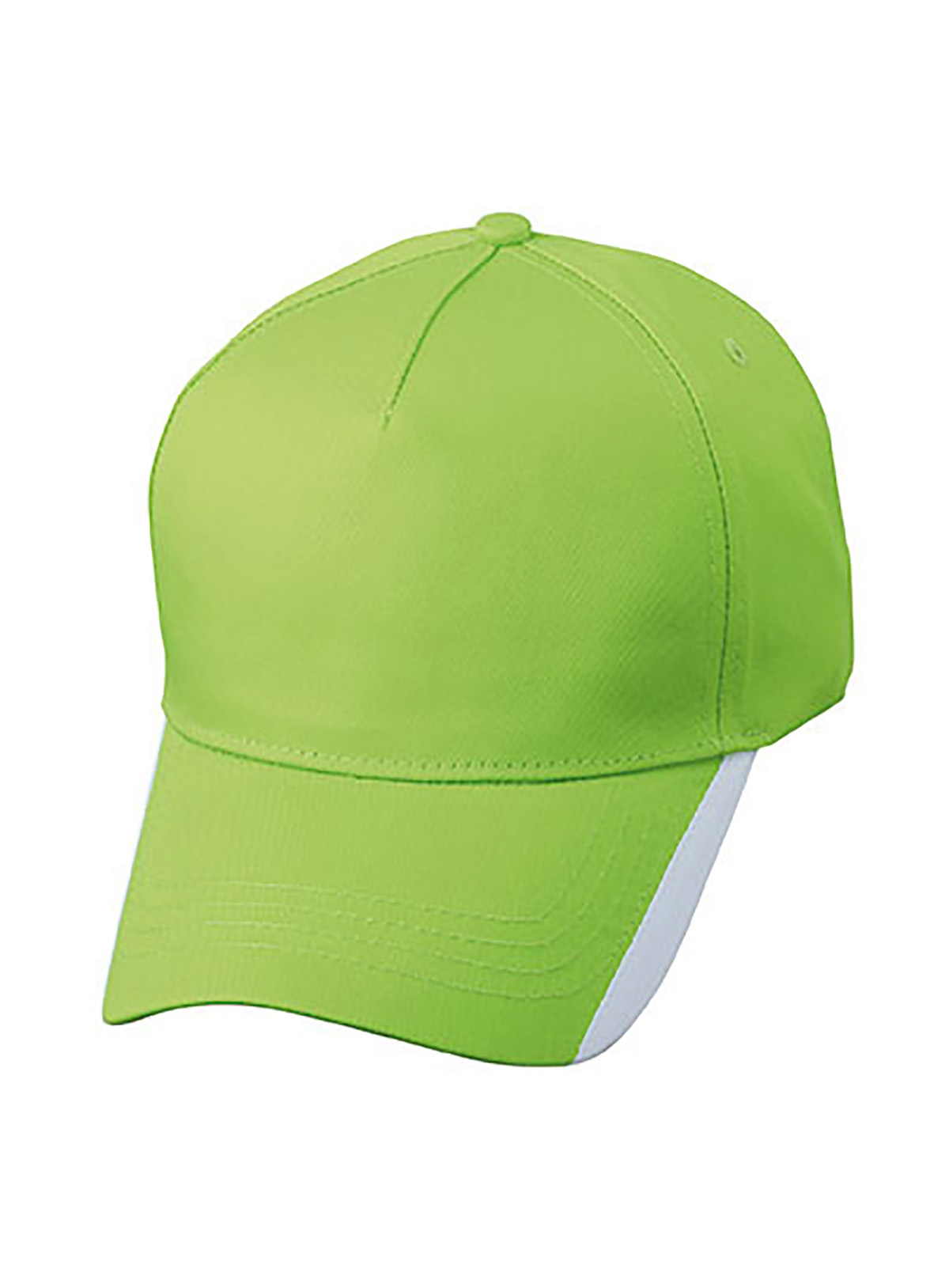 Cappello a 5 pannelli con strisce contrastanti 4 fori di aerazione ricamati, 4 cuciture decorative sulla visiera, Pannello frontale laminato, Fascetta tergisudore imbottita in satin, Chiusura a velcro, policromo, Sandwich