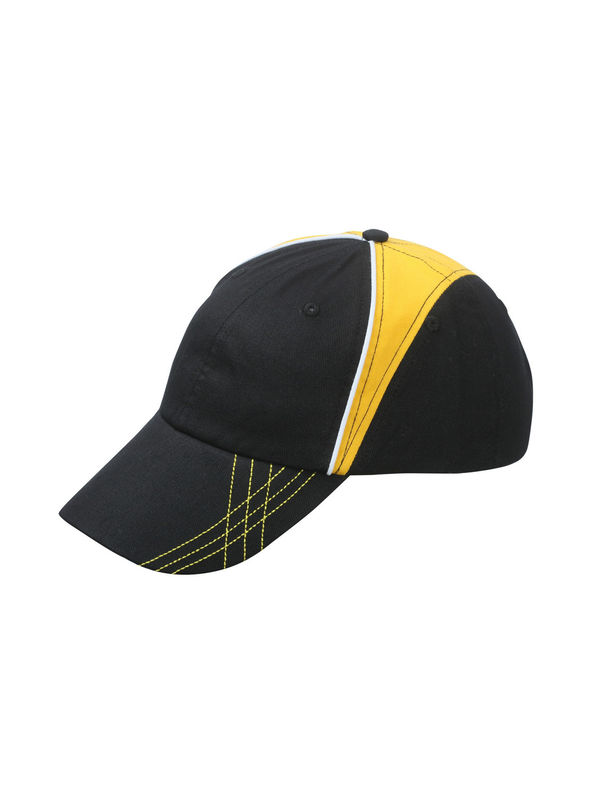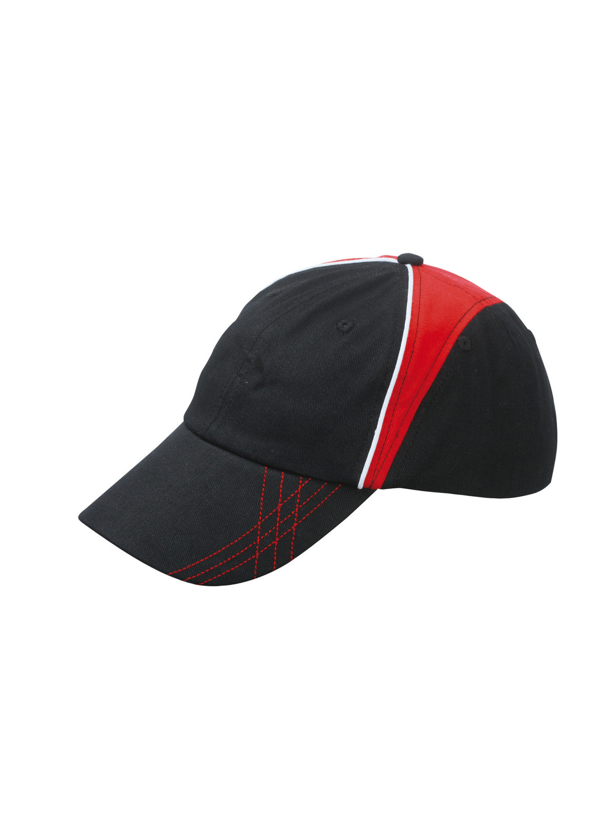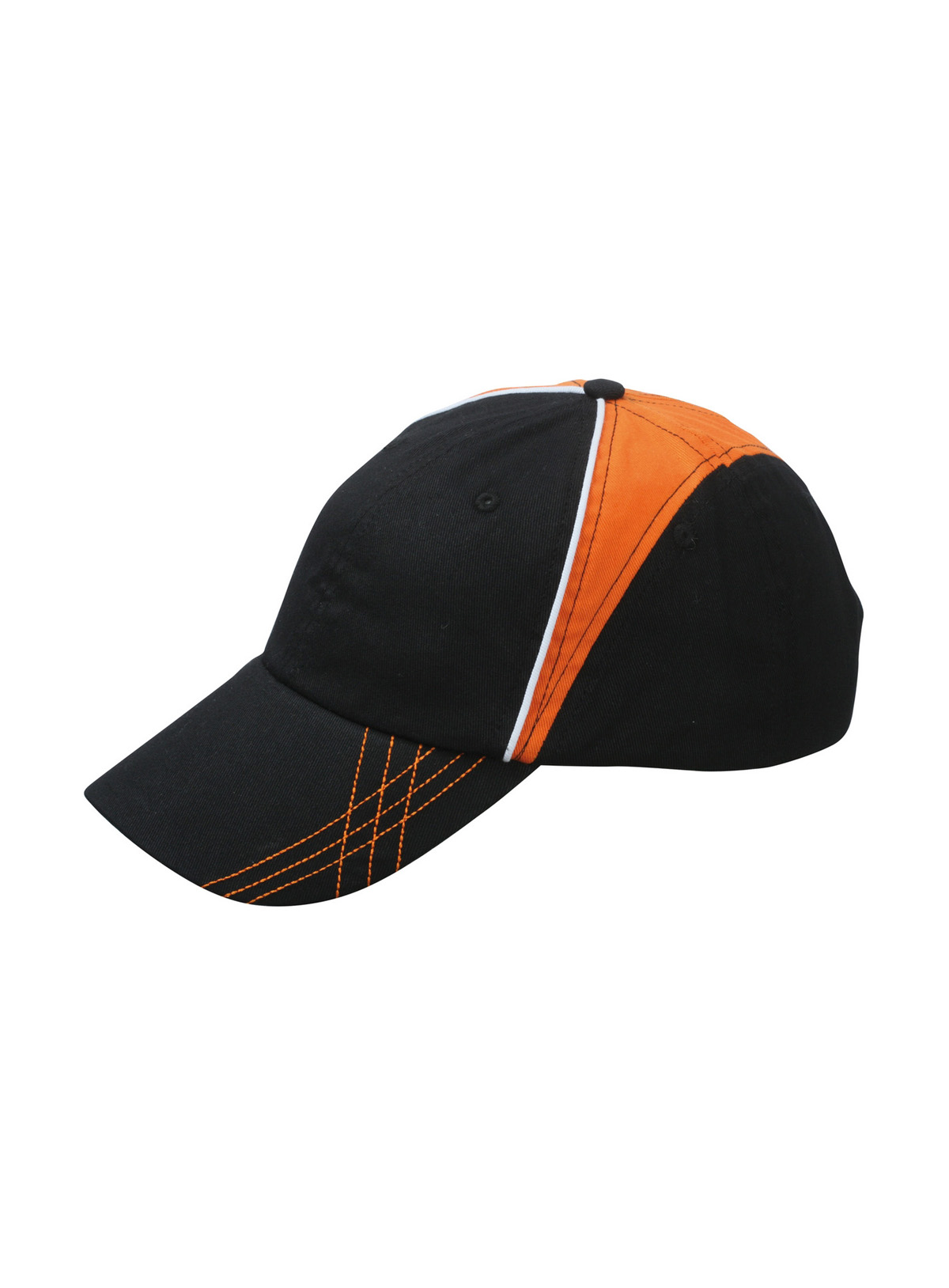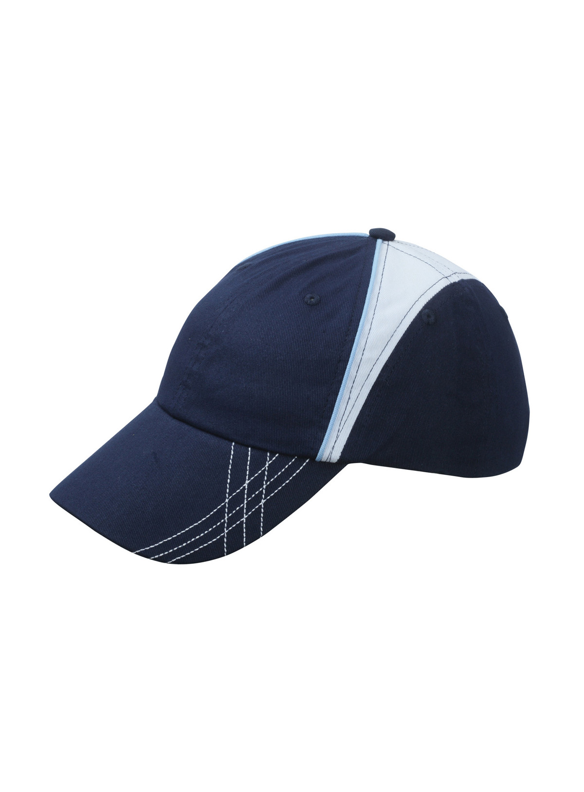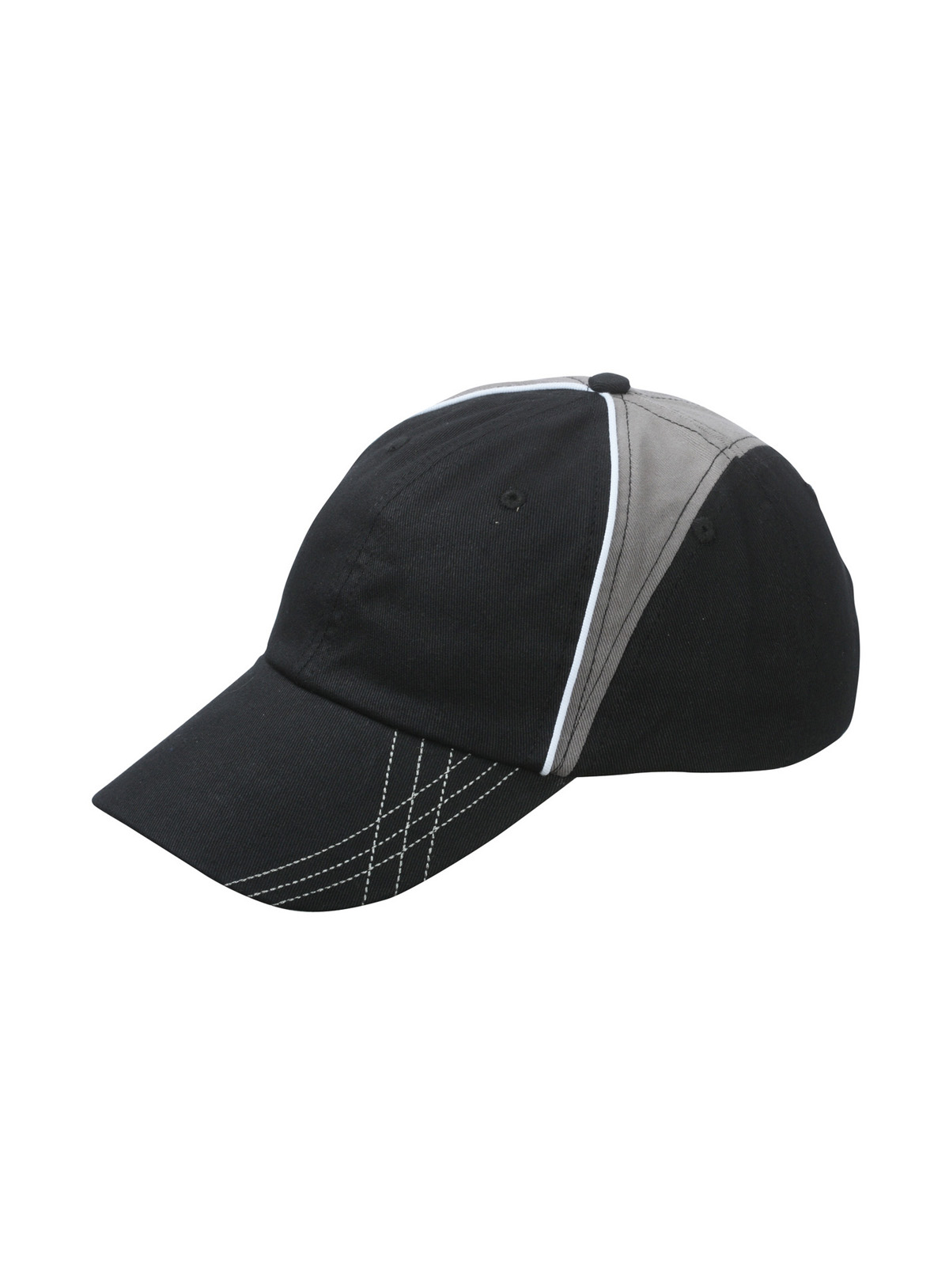 Cappello a 6 pannelli non spazzolato 6 fori di aerazione, 9 cuciture decorative in colori contrastanti sulla visiera, Ricchi inserti a contrasto e cordoncino, Fascetta tergisudore imbottita in satin, Chiusura a clip in argento opaco con occhielli metallici, Sandwich, Taglio aderente