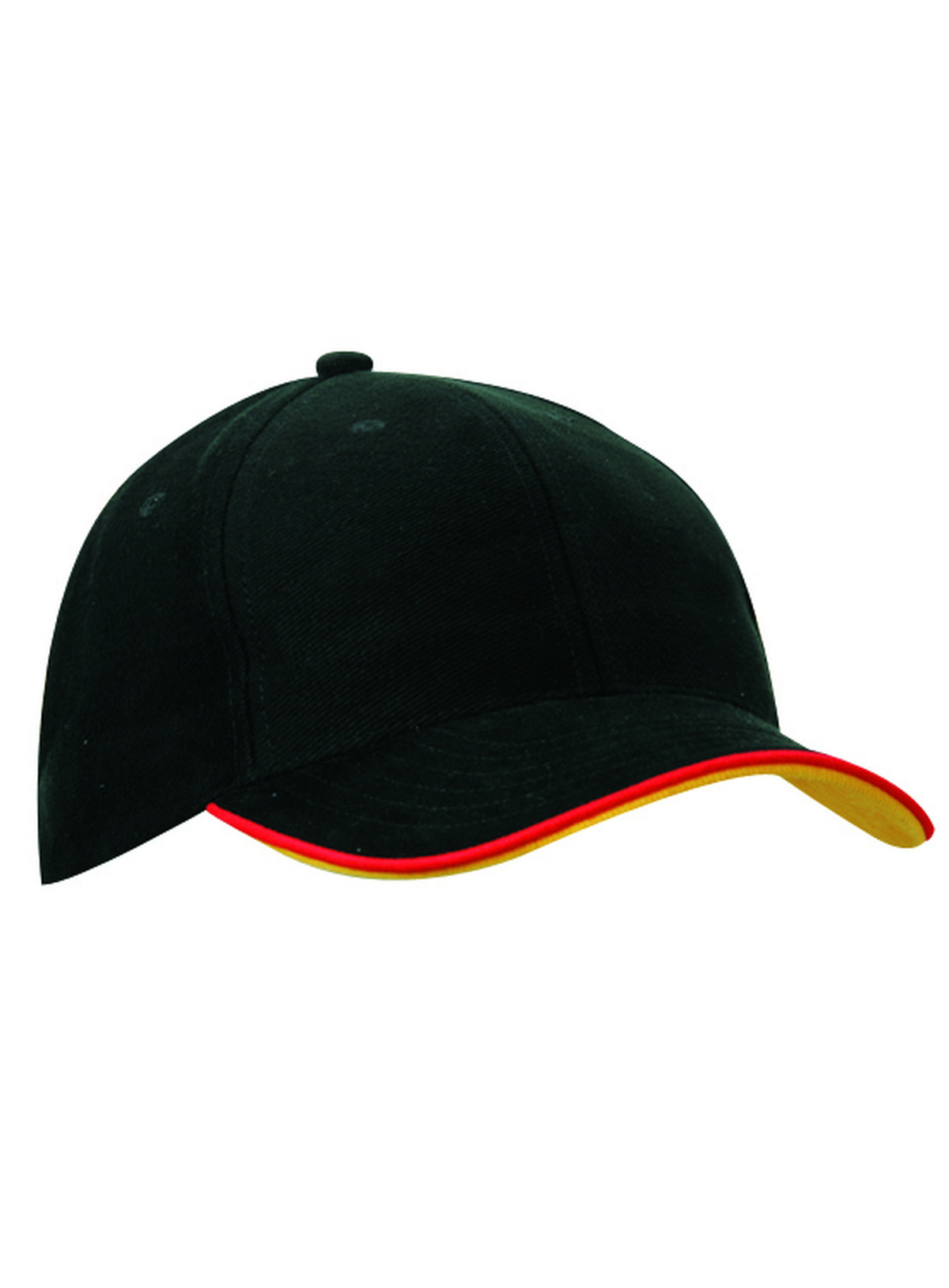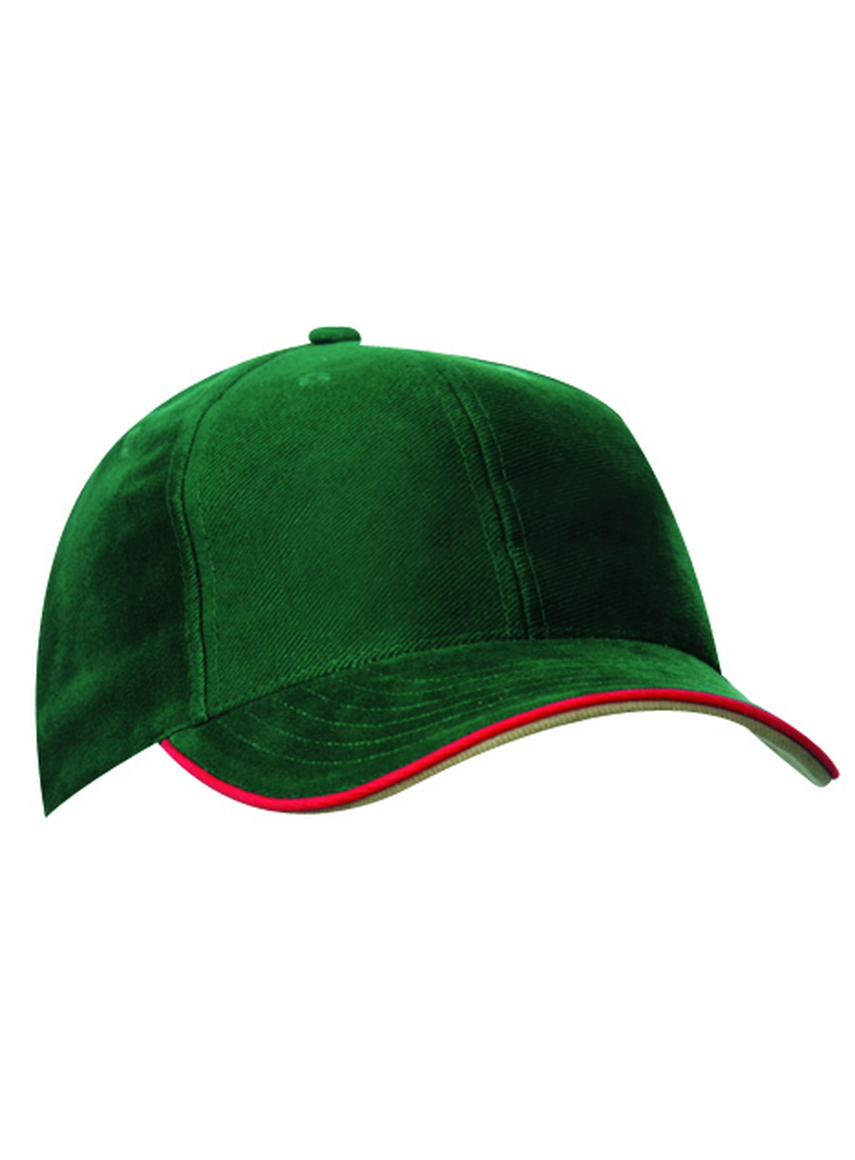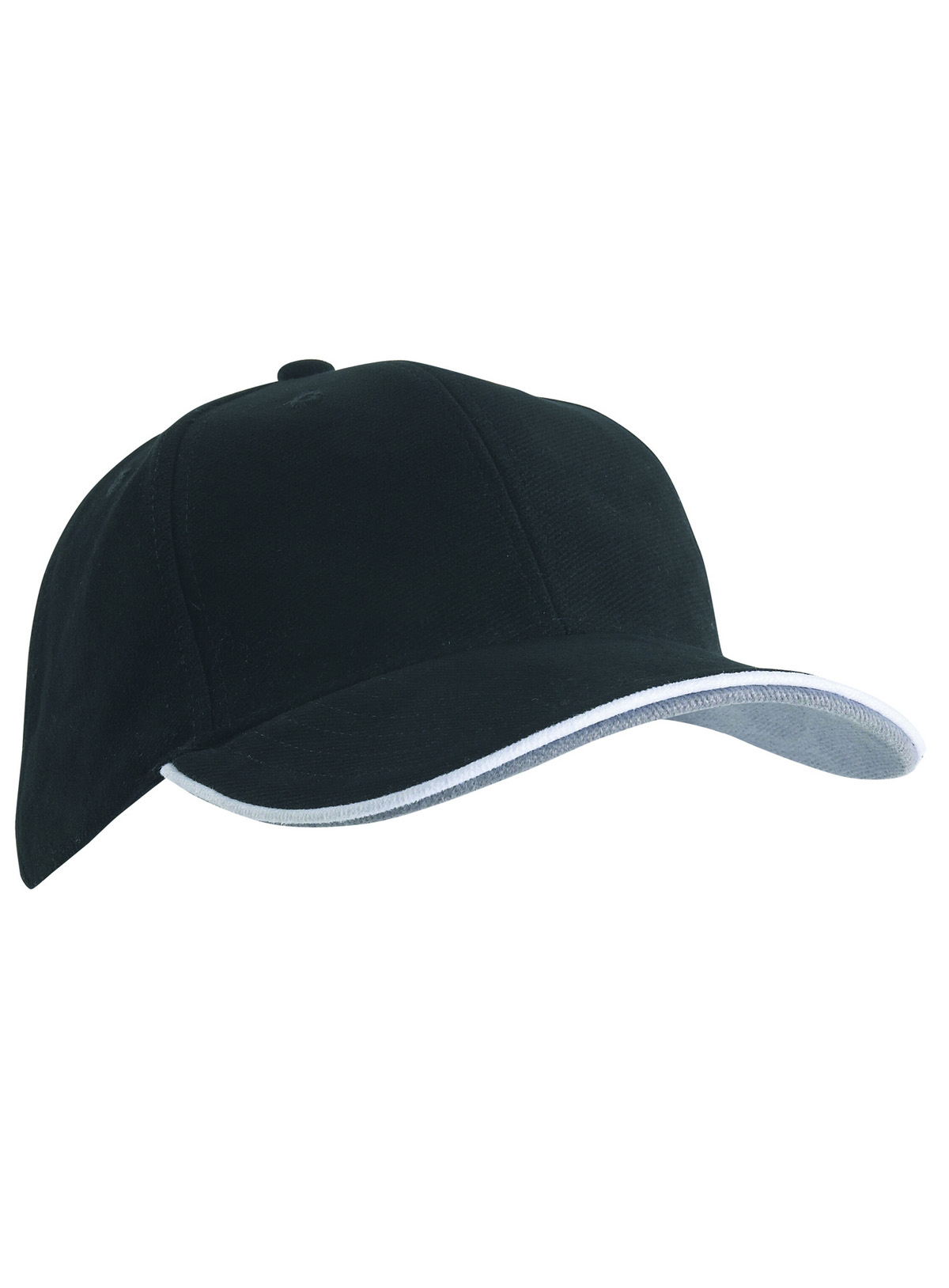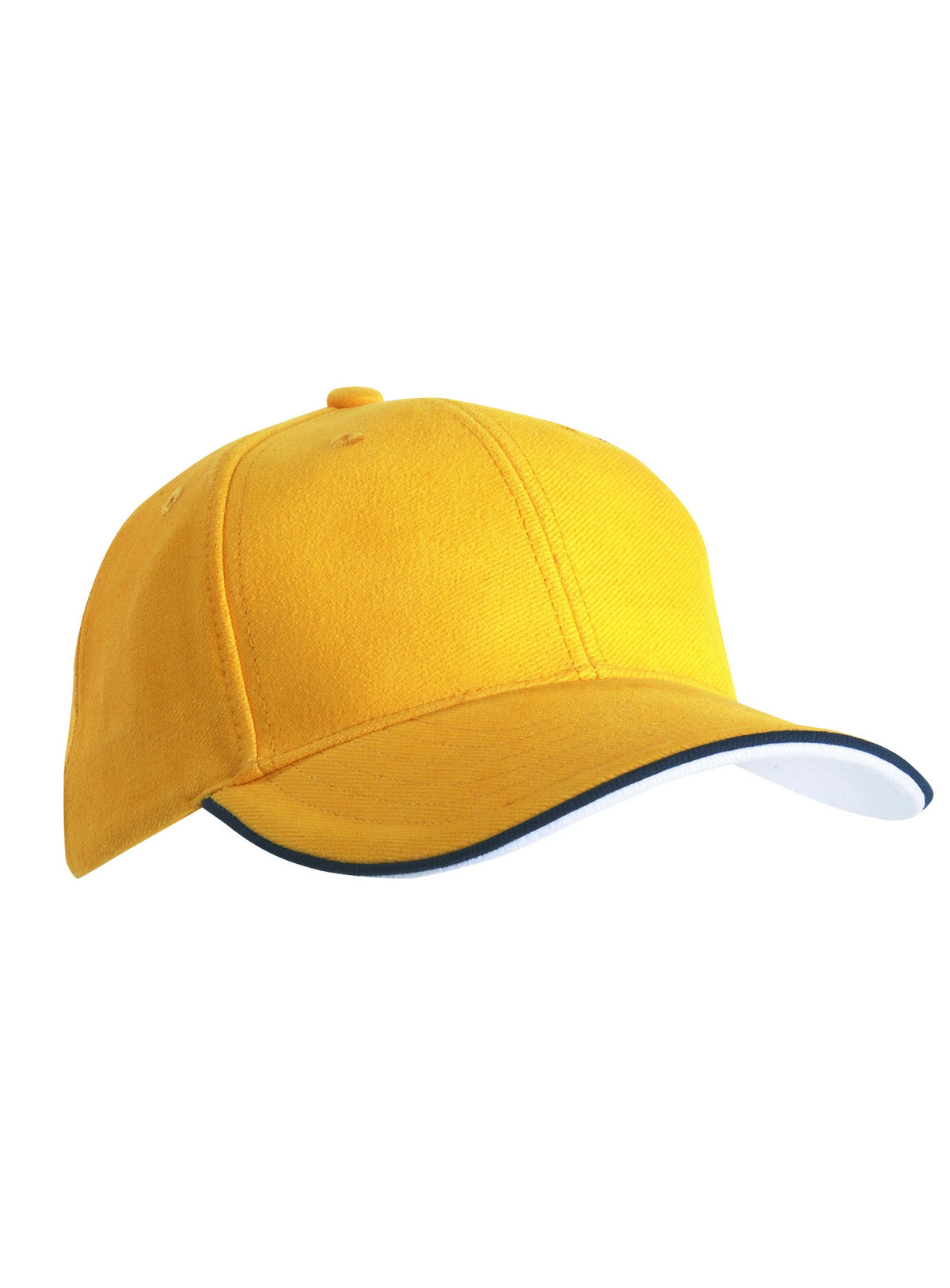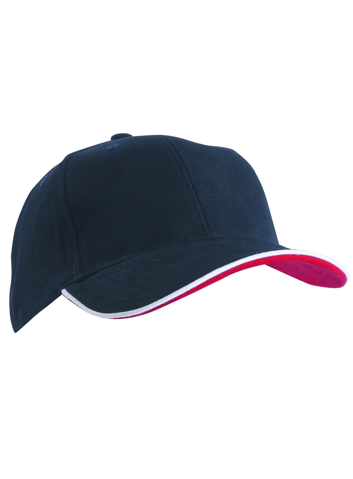 Cap a 6 pannelli con doppio sandwich 6 fori traspiranti imbastiti, 6 cuciture decorative sulla visiera, Parte inferiore della visiera a contrasto. Pannelli frontali laminati, Fascetta tergisudore imbottita in Satin, Chiusura a clip in argento opaco con filetto a costola a contrasto e asola in stoffa , Cap bimbo coordinato MB7005. Cotone spazzolato forte , policromo, Sandwich