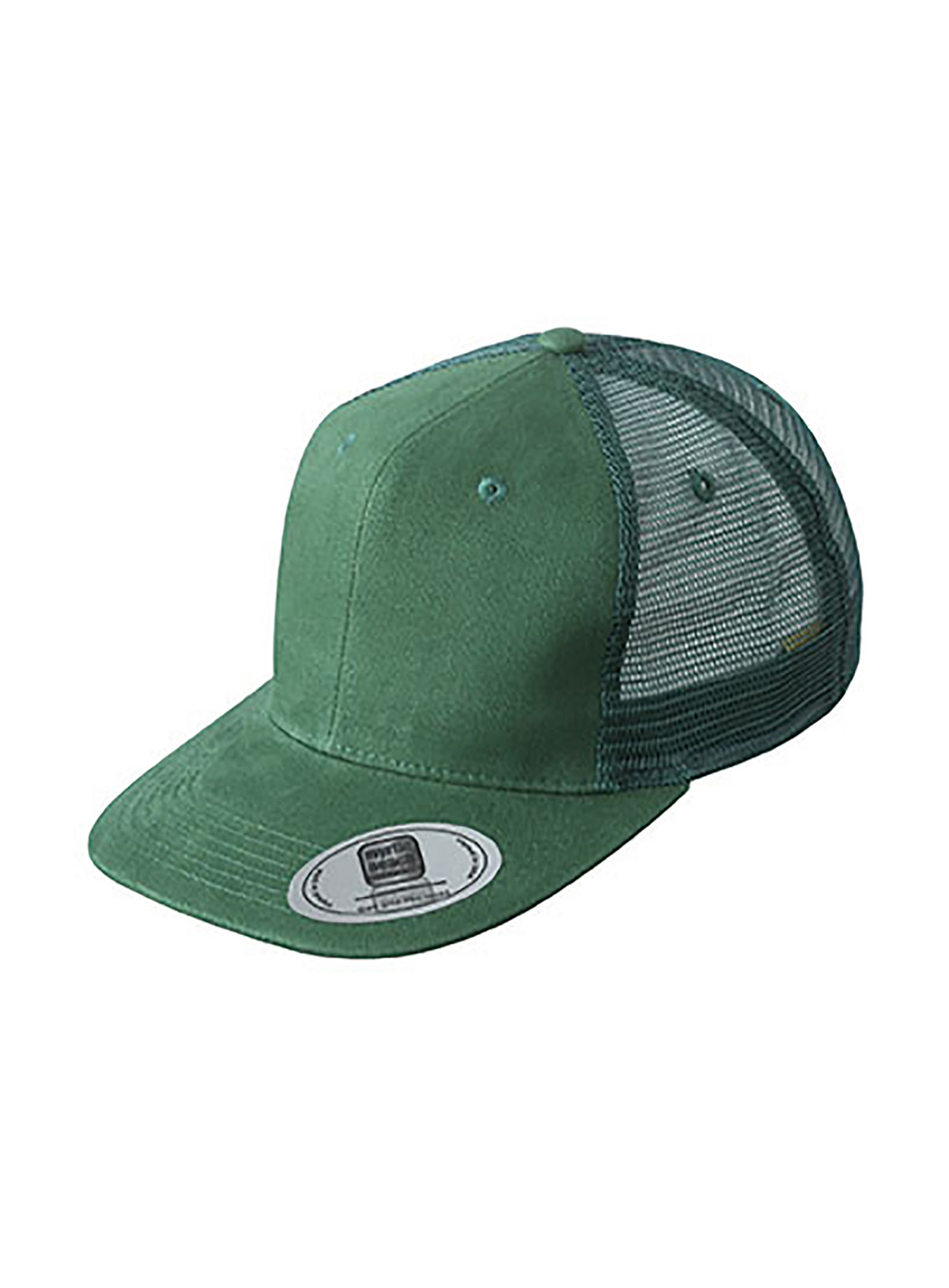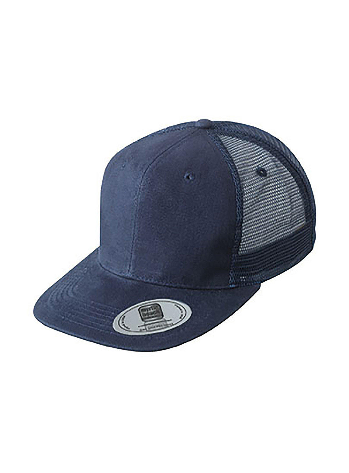 Cappello a rete a 6 pannelli con visiera piatta 6 cuciture decorative sulla visiera, 6 fori di aerazione ricamati, Fascetta tergisudore in cotone, Etichetta sulla visiera, Regolazione taglia