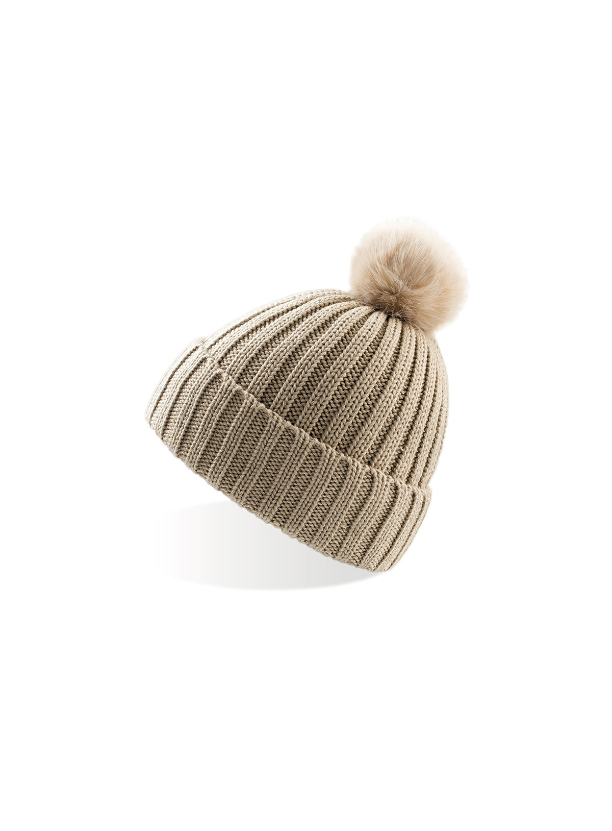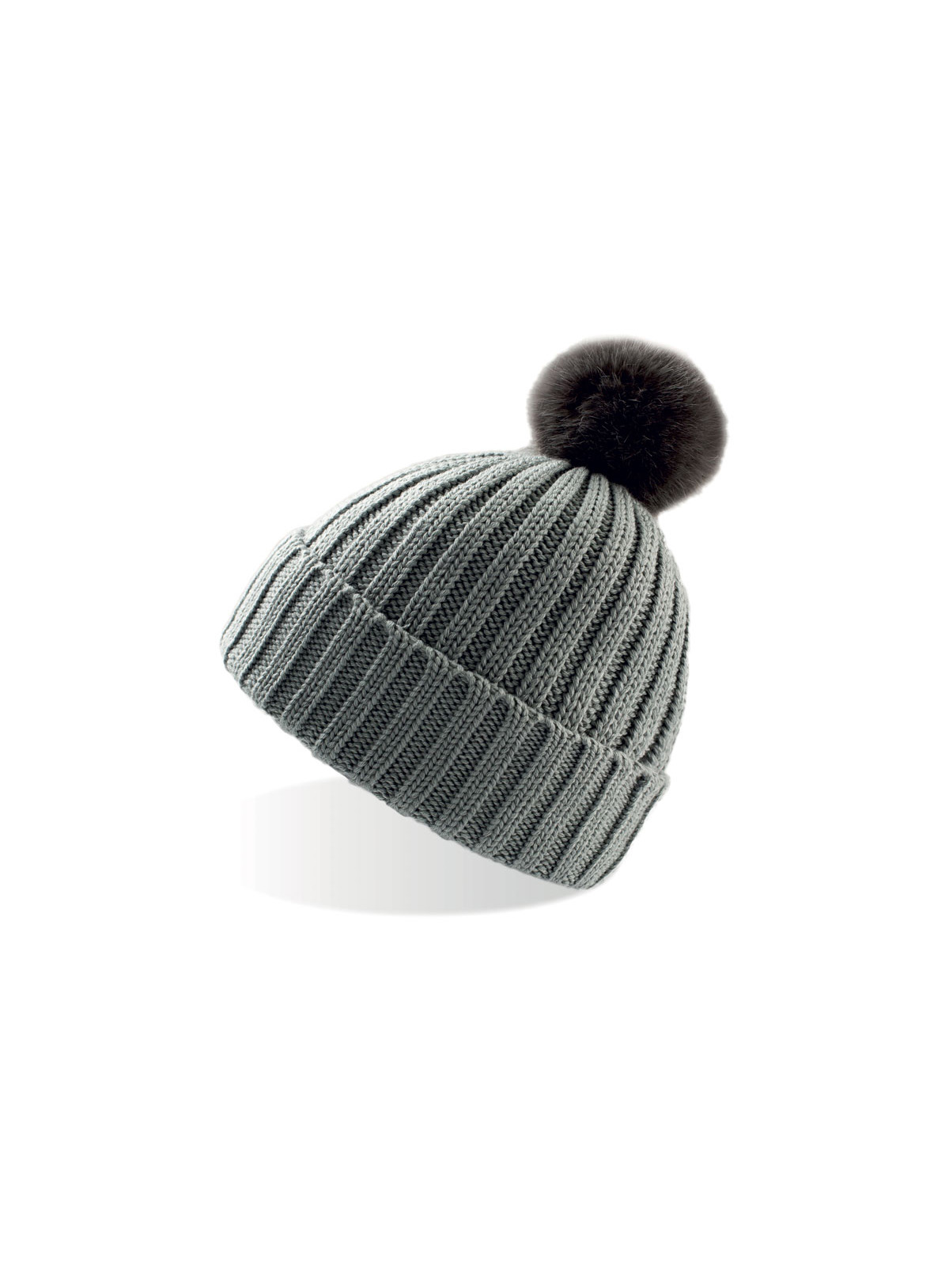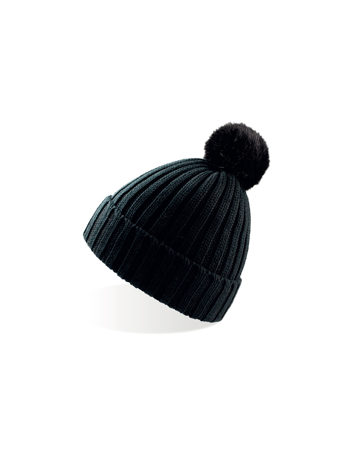 Cuffia con risvolto, pompon in pelliccia ecologica