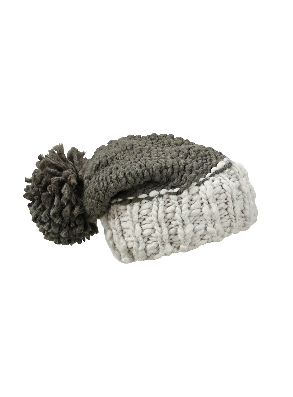 Berretto casual con pompon grande Maglia grossa in pregiati filati fiammati , Parte frontale a coste, Fascia interna in pile per maggiore comfort