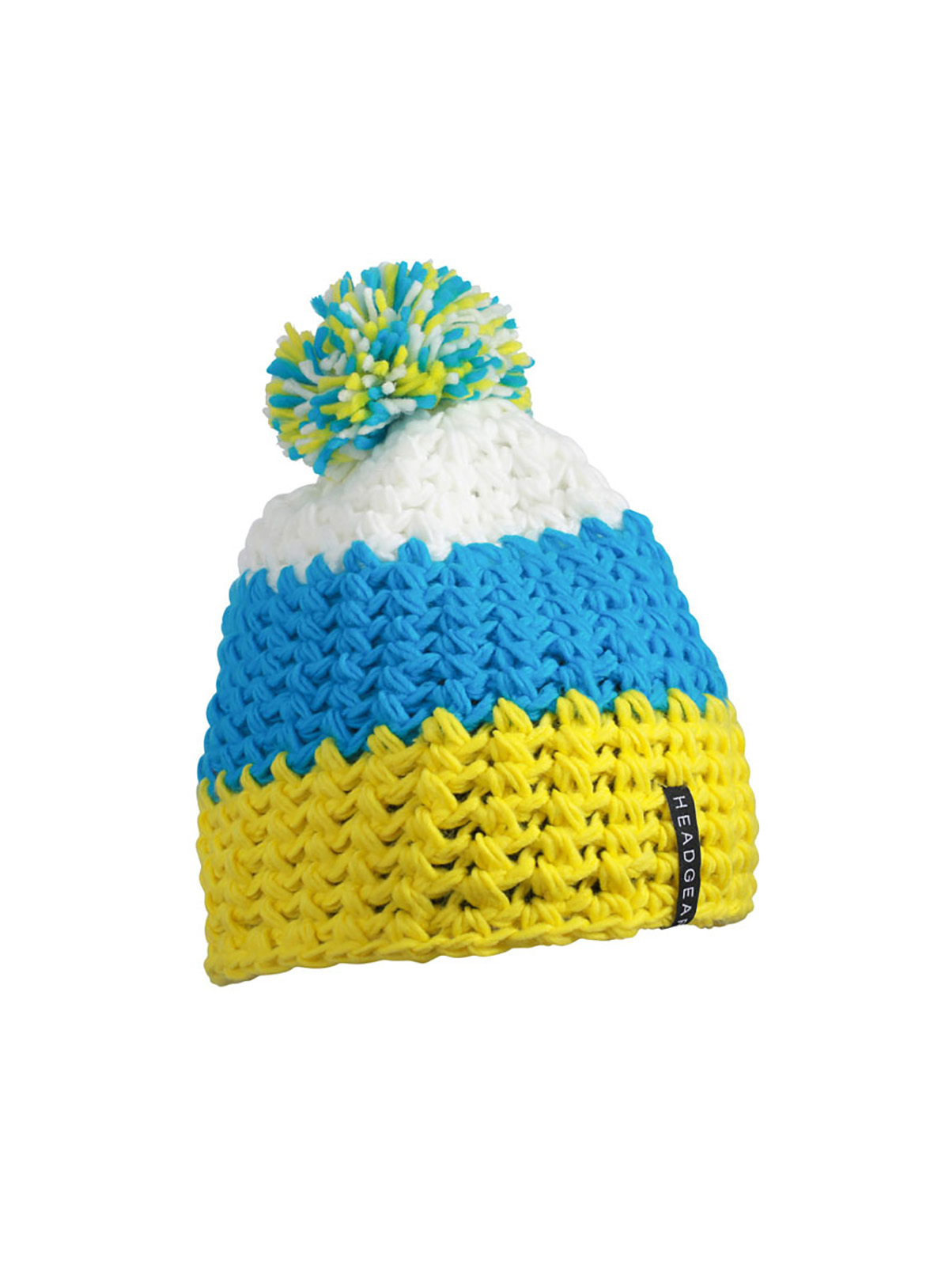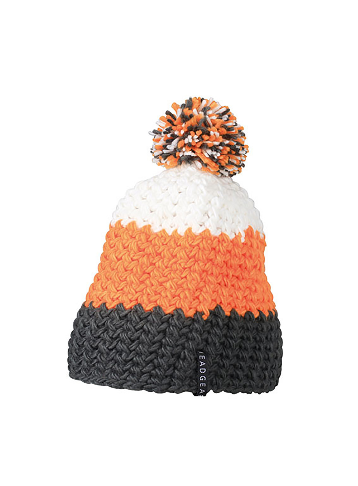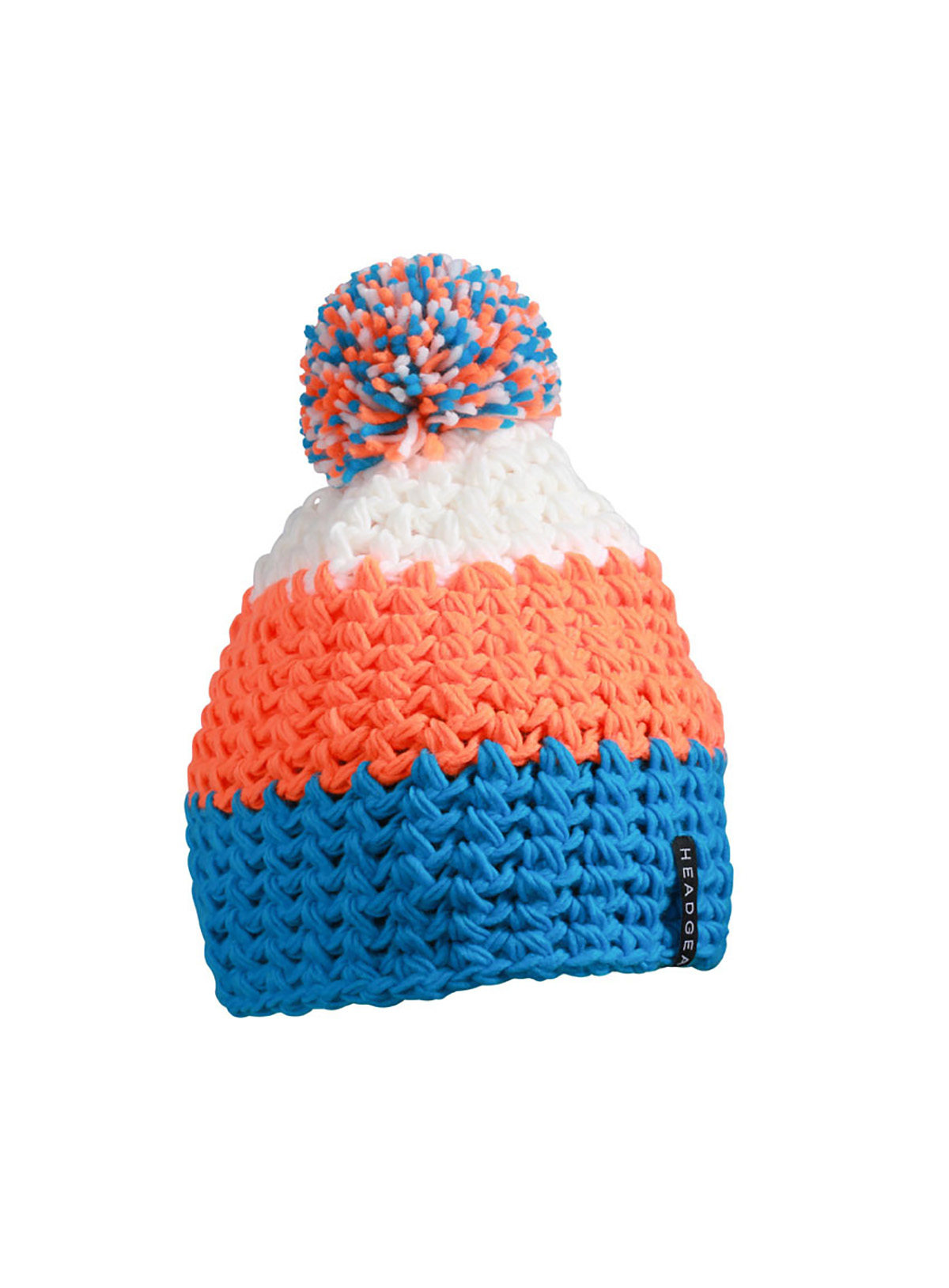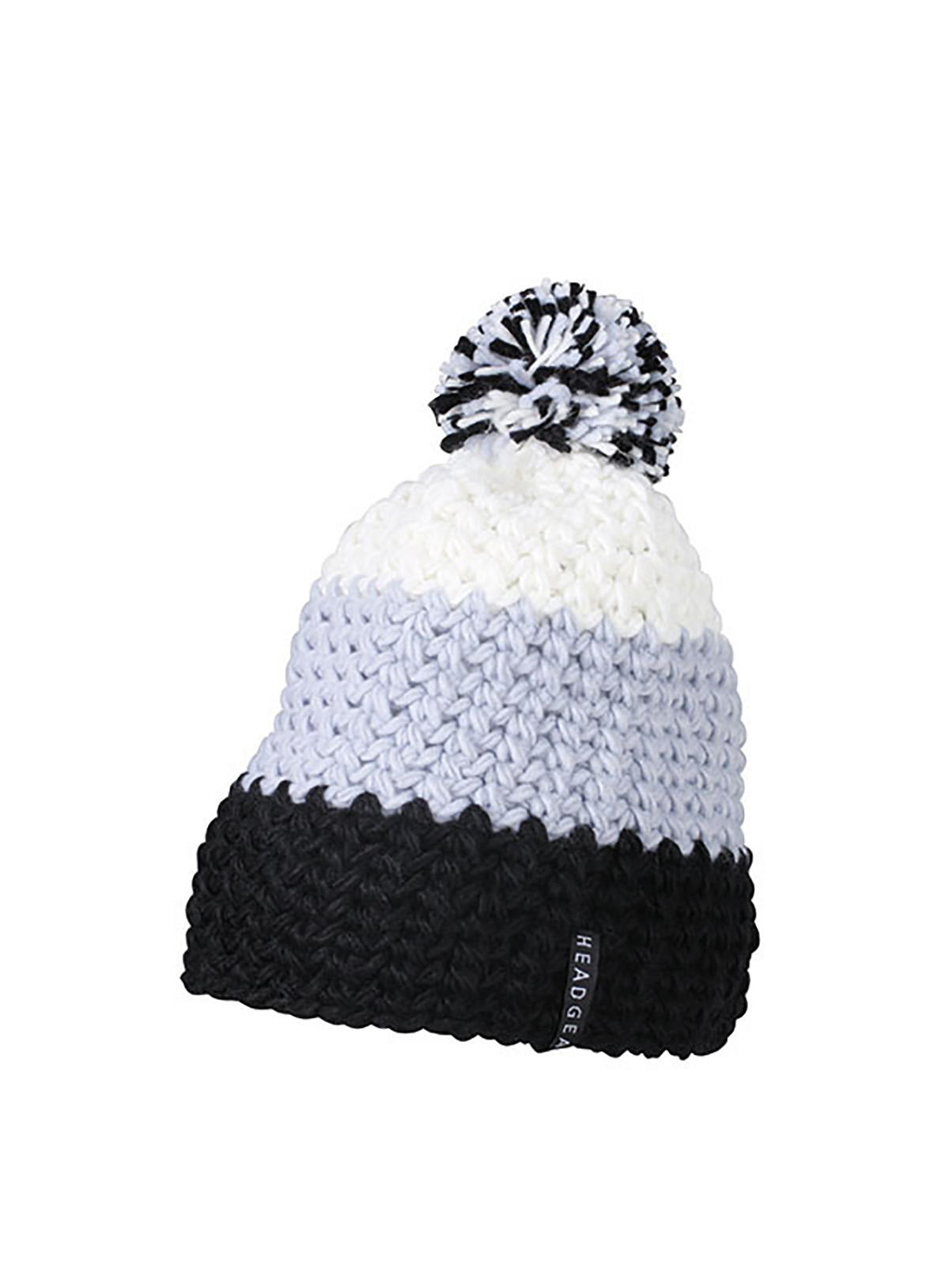 Berretto lavorato a maglia a 3 colori con pompon Struttura a rete grossa, Fatto a mano, Confortevole grazie ad una fascia in pile all’interno