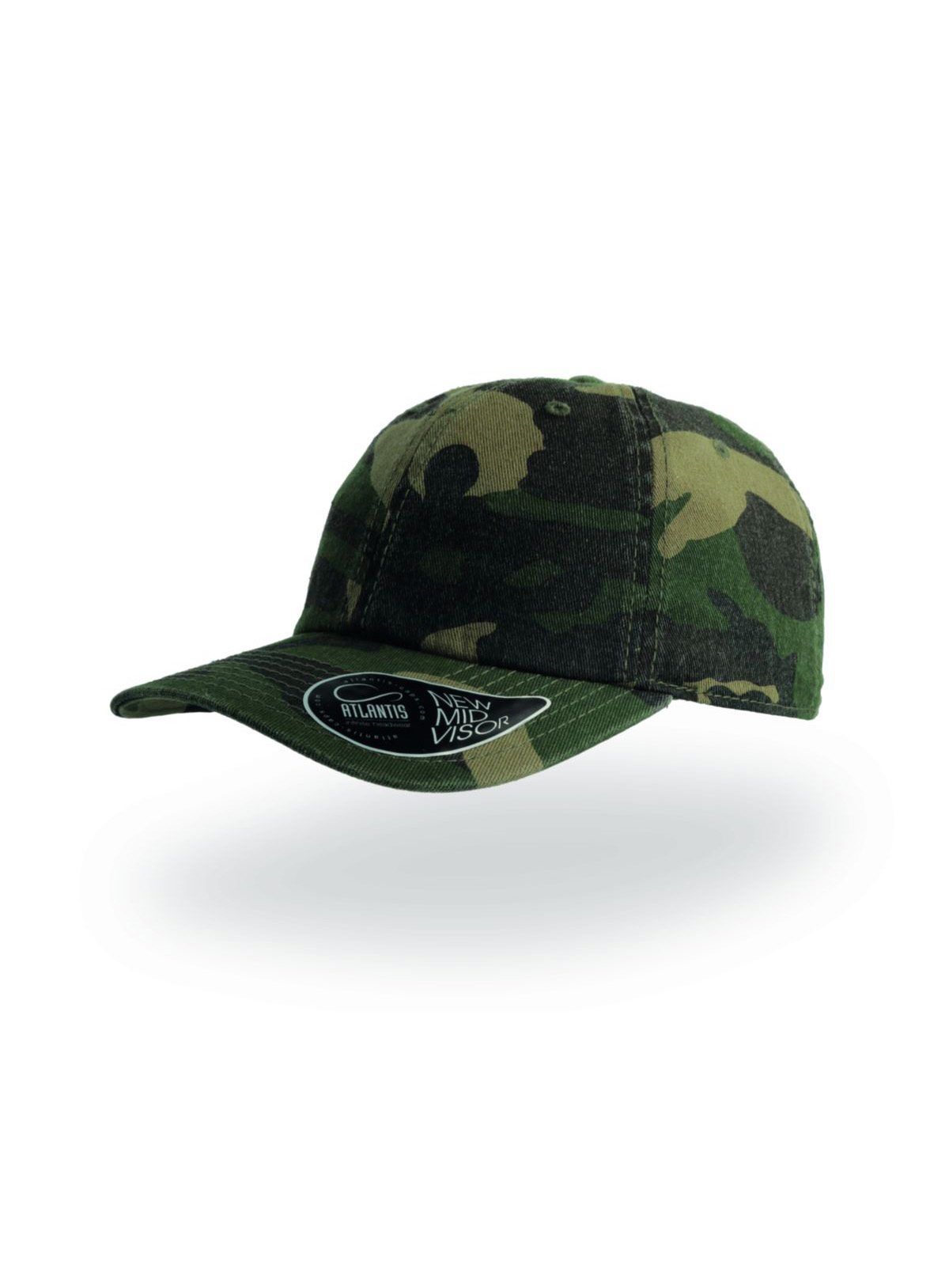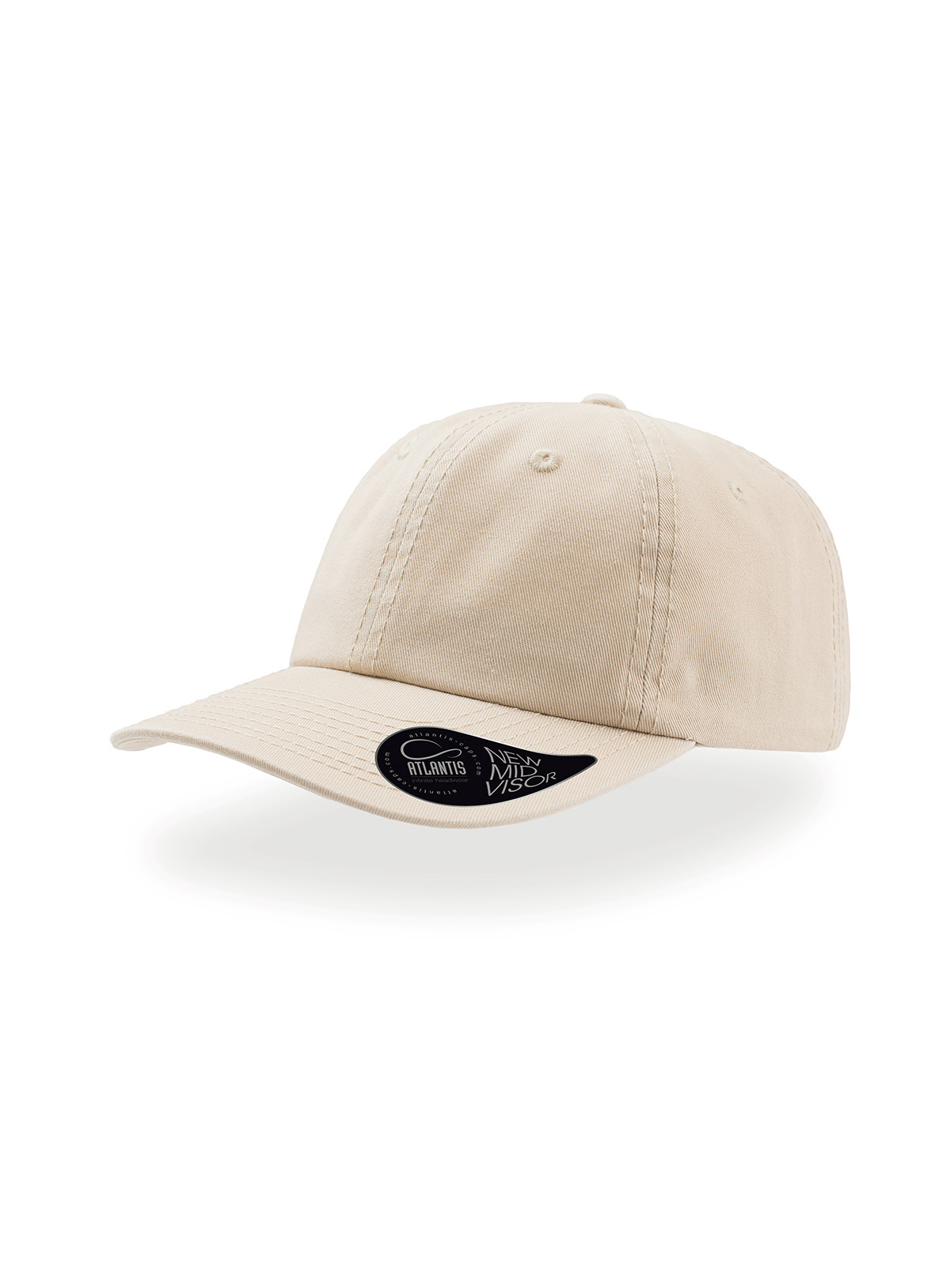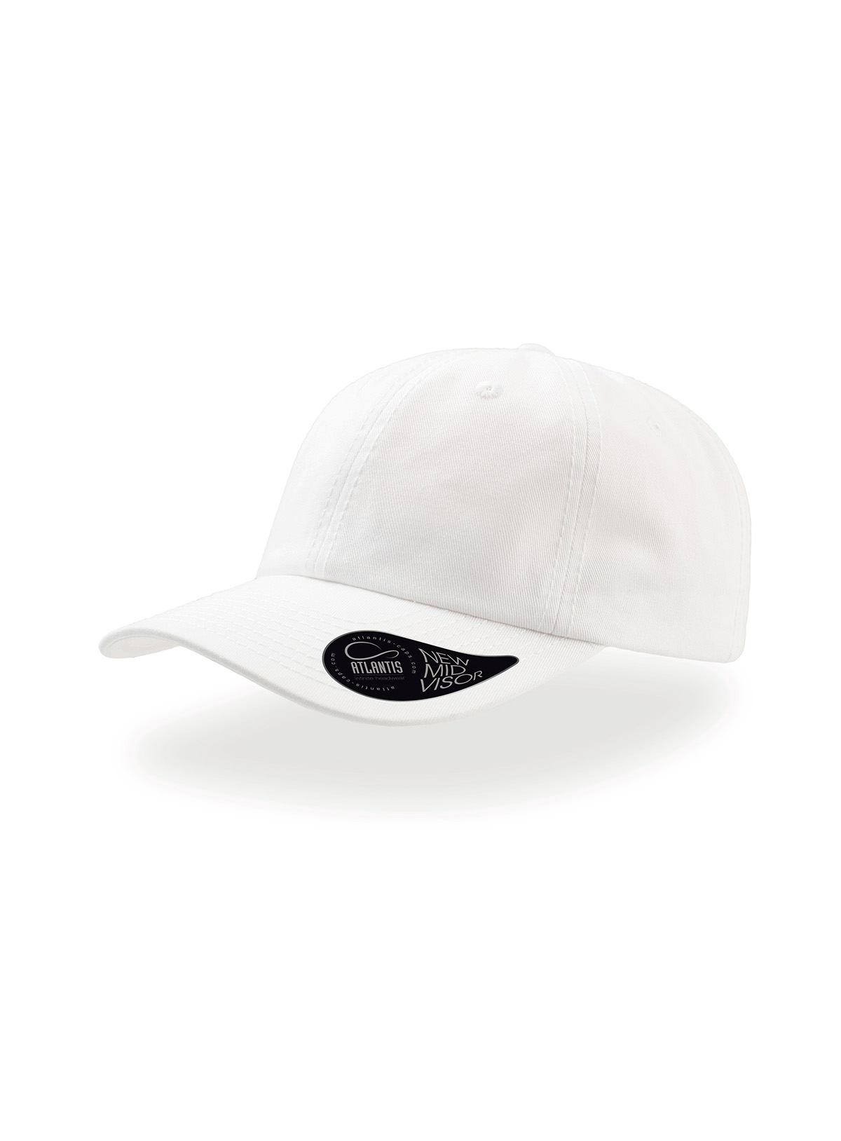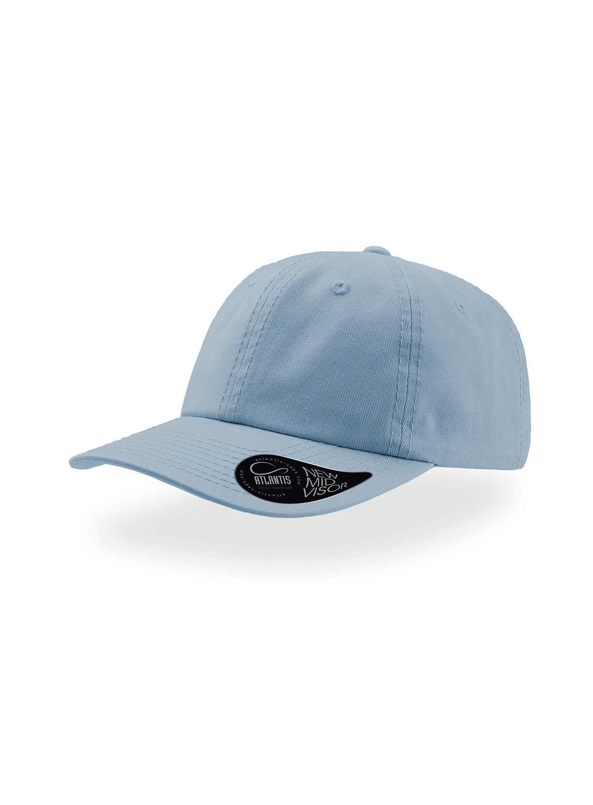 6 pannelli, occhielli ricamati, pannello frontale non stutturato, visiera pre-curvata, chiusura con fibbia e foro in metallo, 8 cuciture su visiera, parasudore in cotone