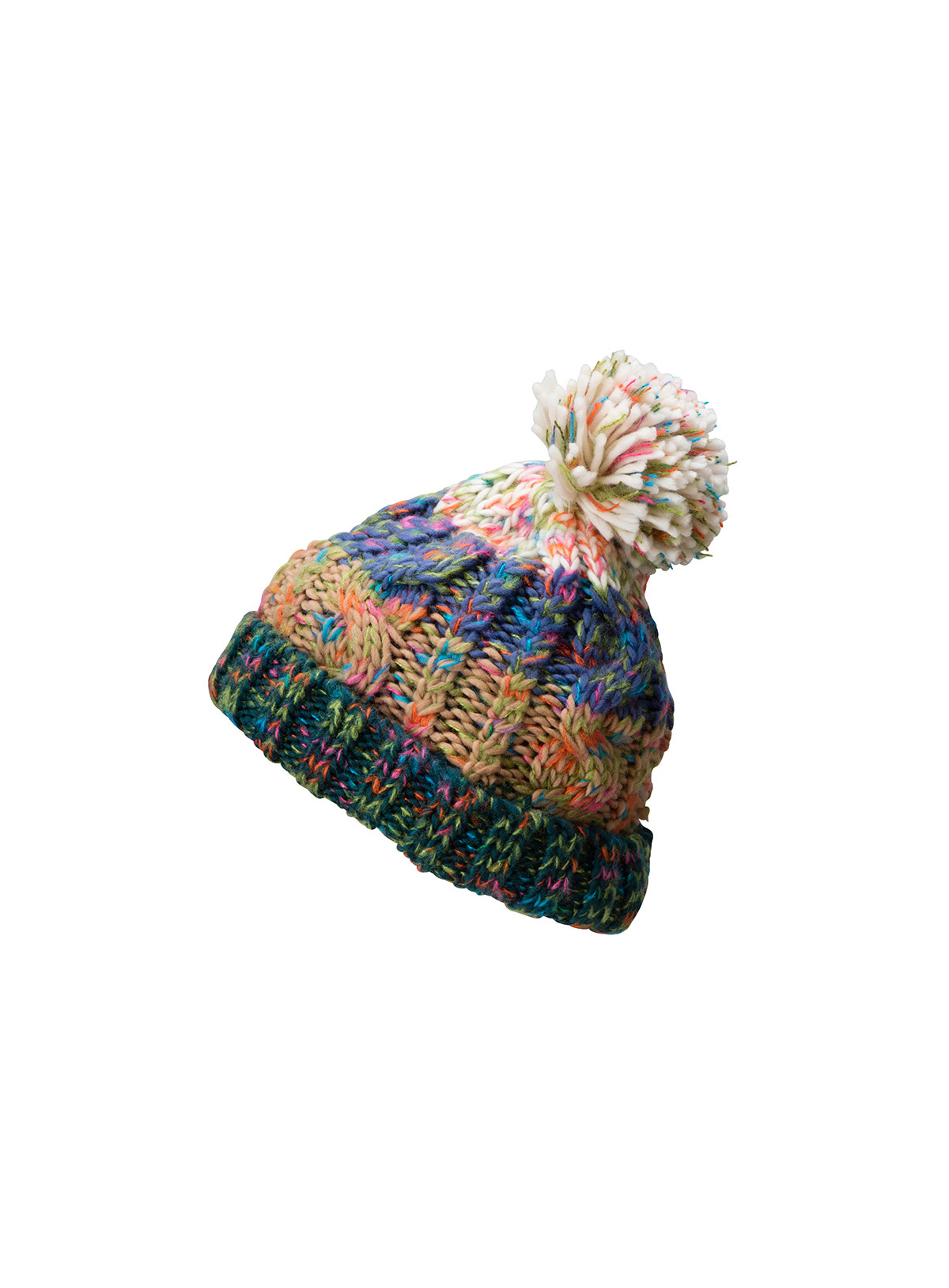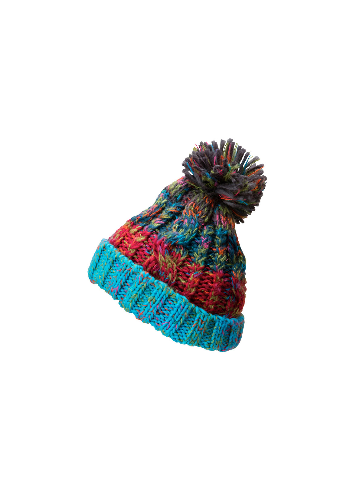 Cappello multicolor con visiera e pompon Soffice, con un effetto filato coloratoVista a 3D con la banda integrata ondulata, Piacevle da indossare grazie alla banda in pile all’esterno,