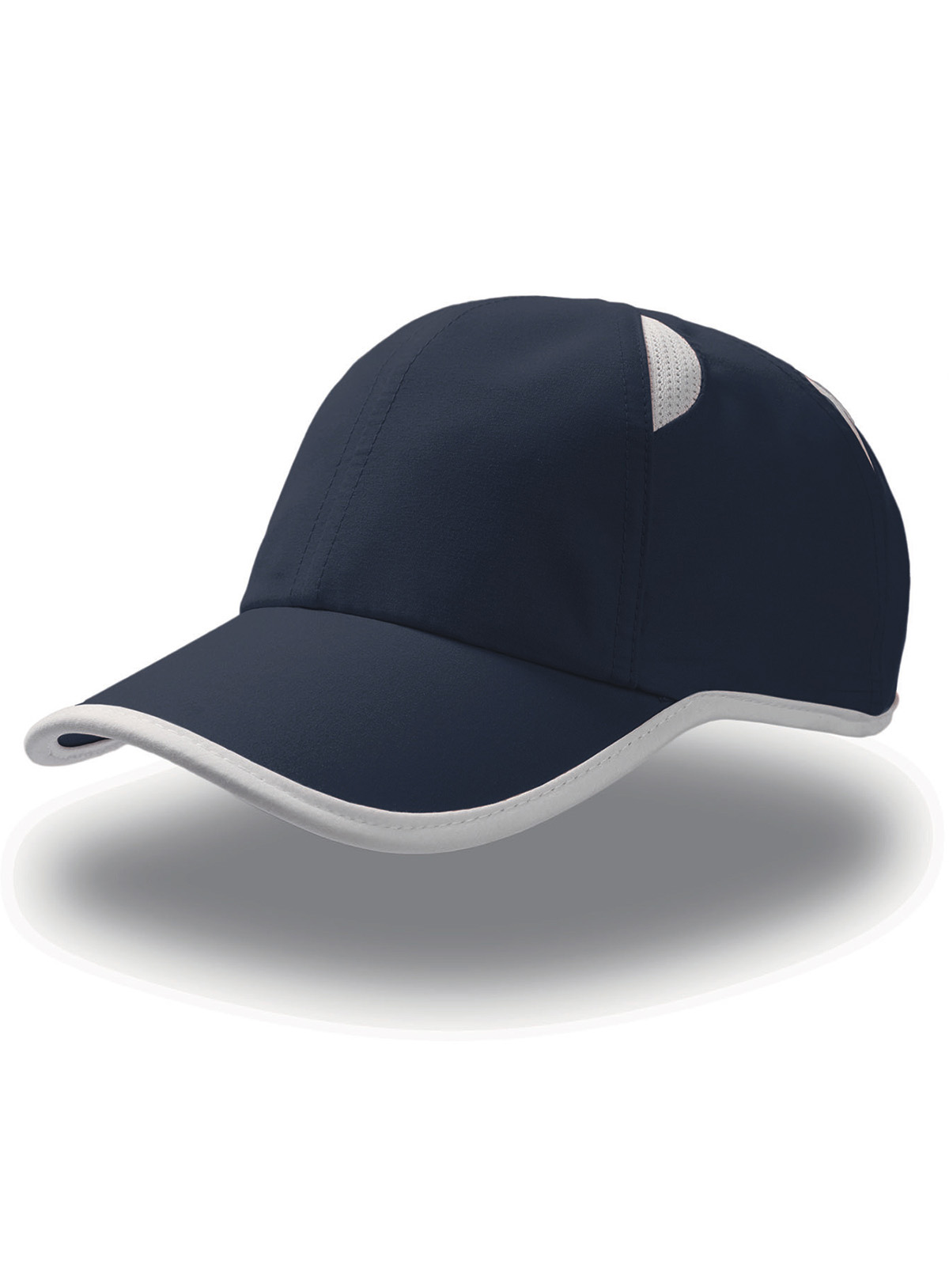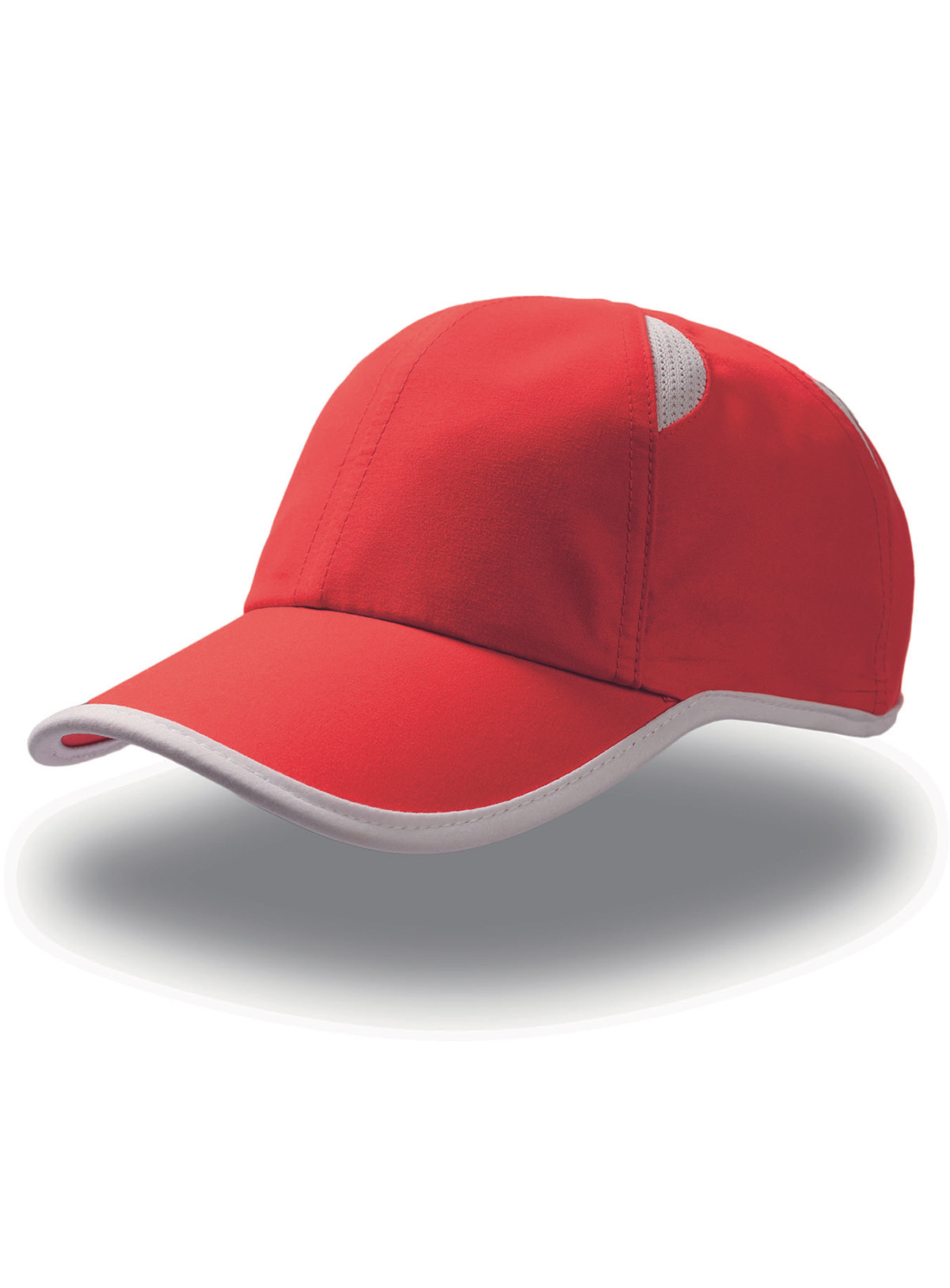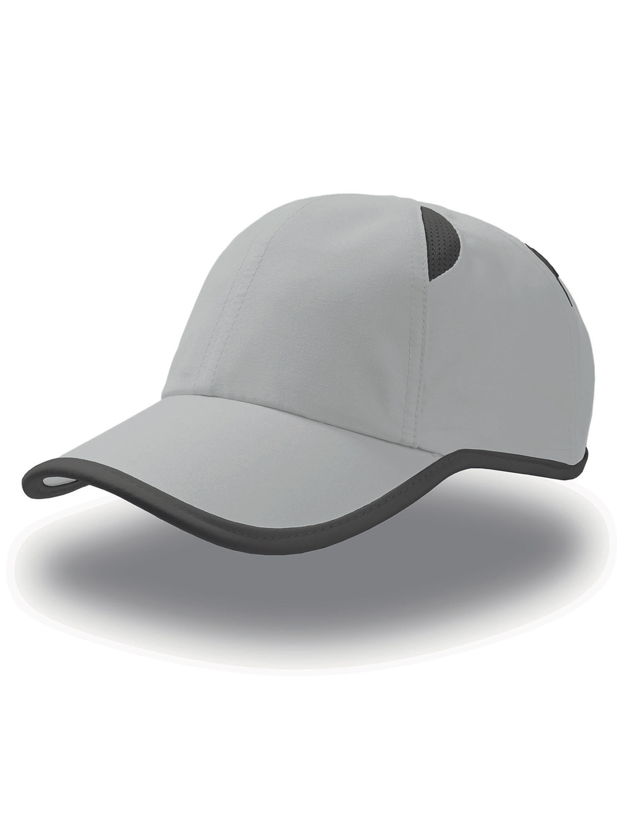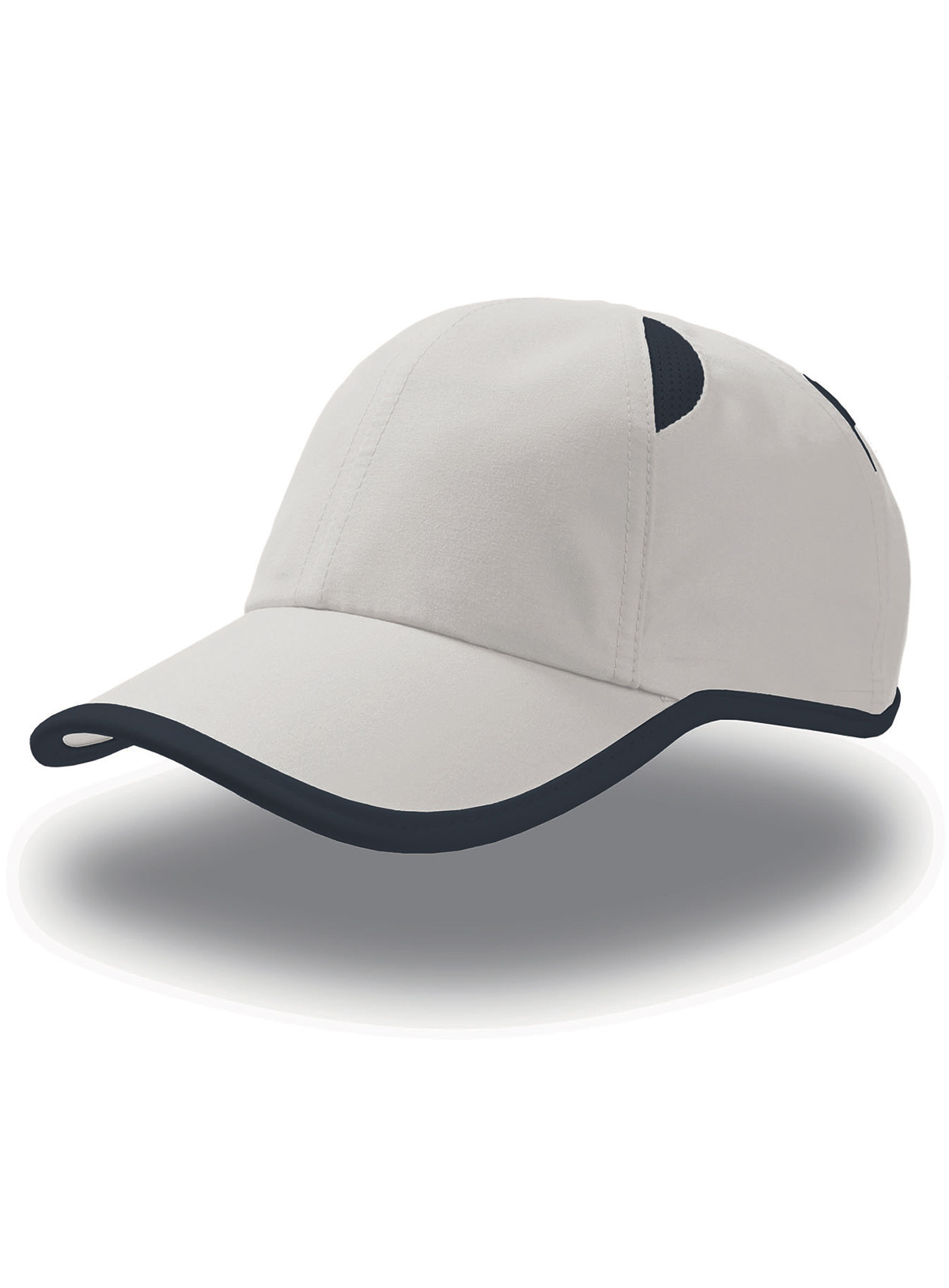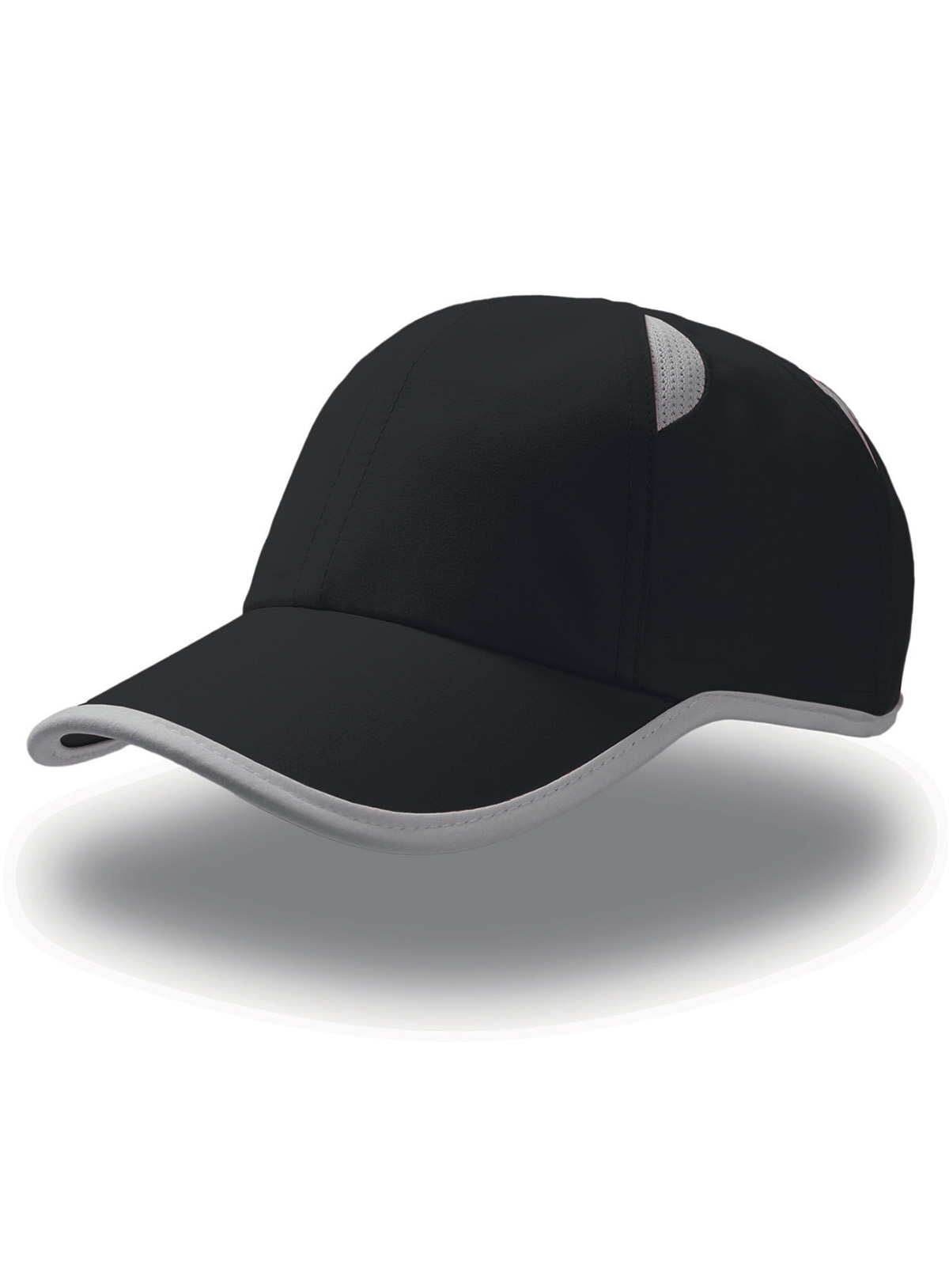 6 pannelli, pannello frontale non strutturato, visiera pre-curvata, chiusura in velcro, bordato con fettuccia, 4 inserti mesh per aerazione, parasudore:
