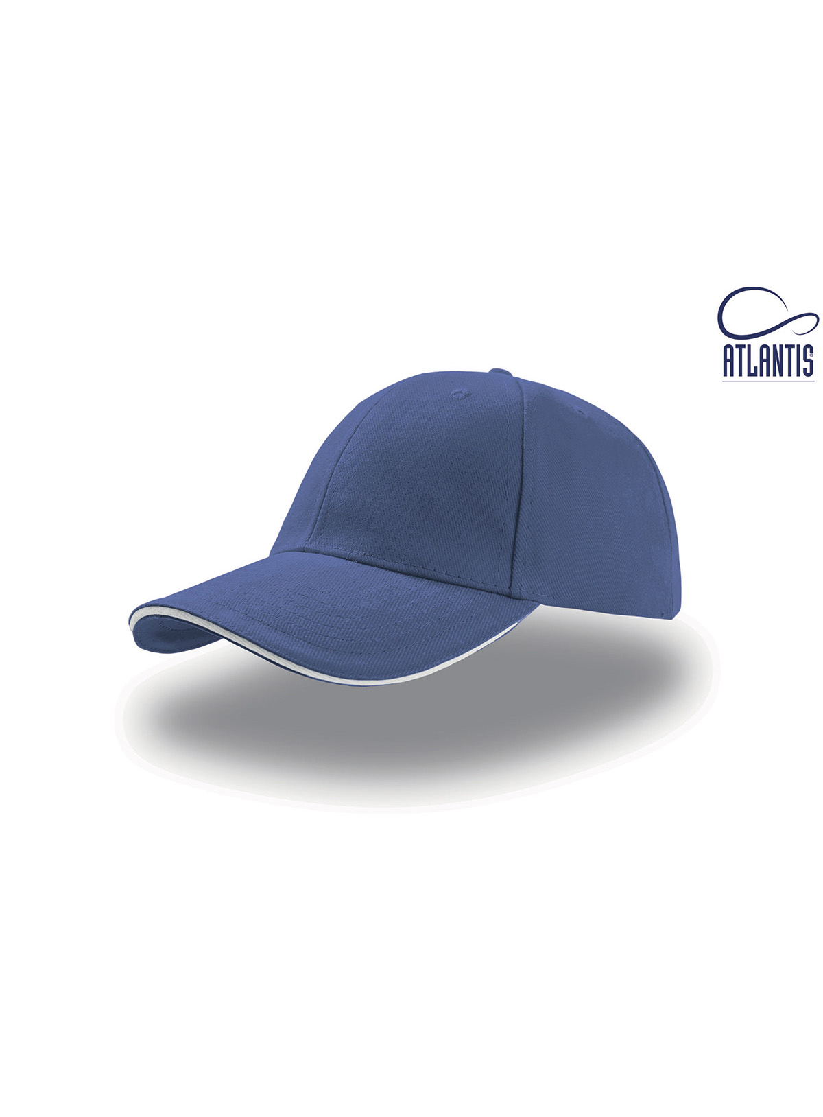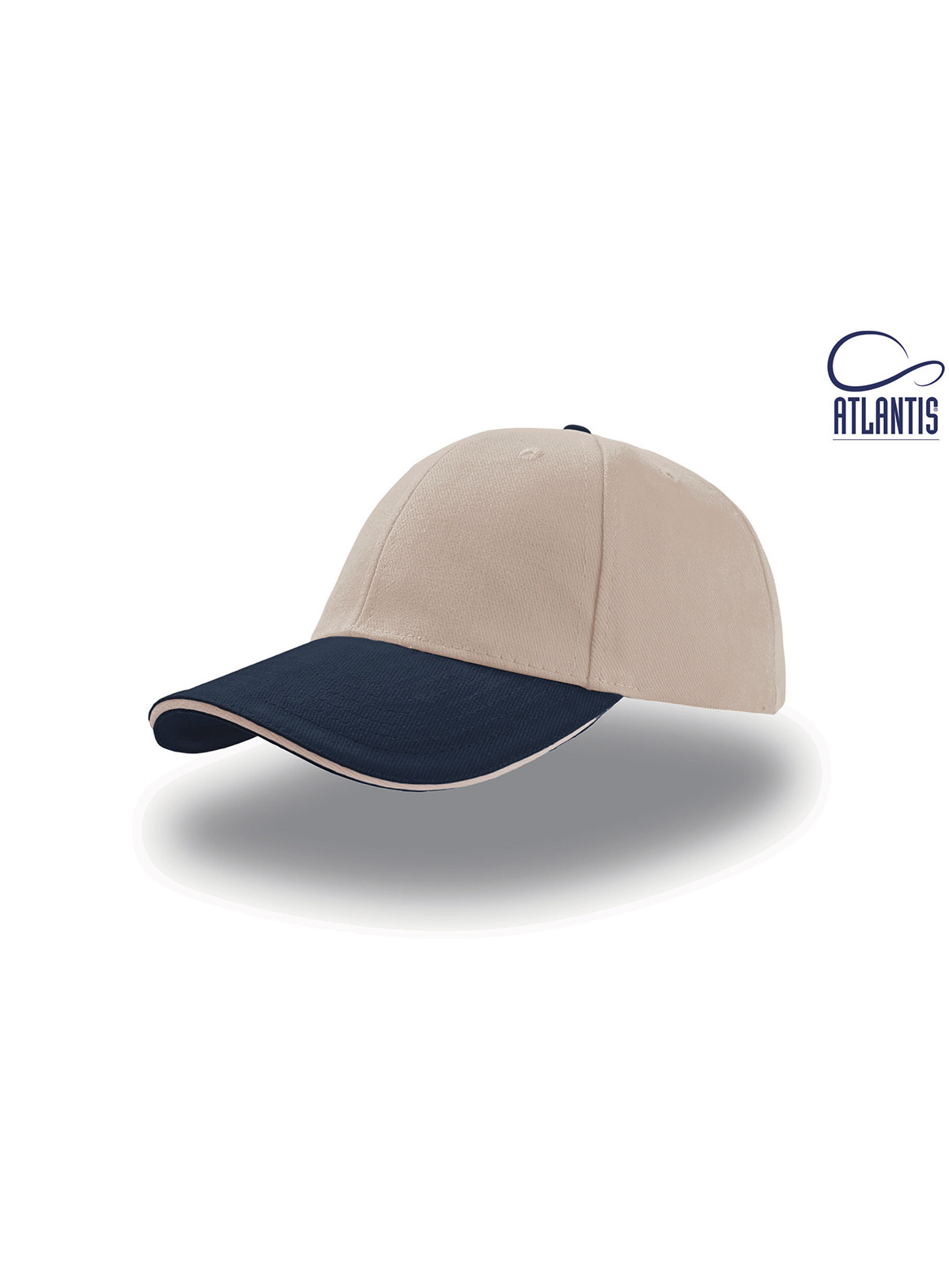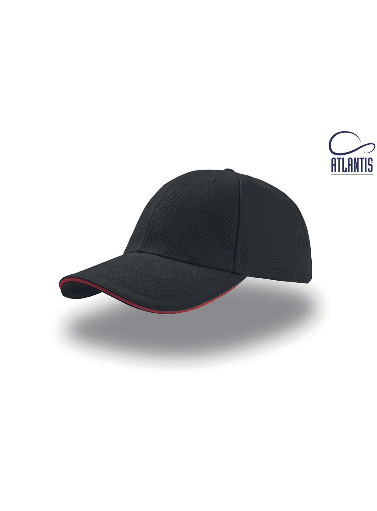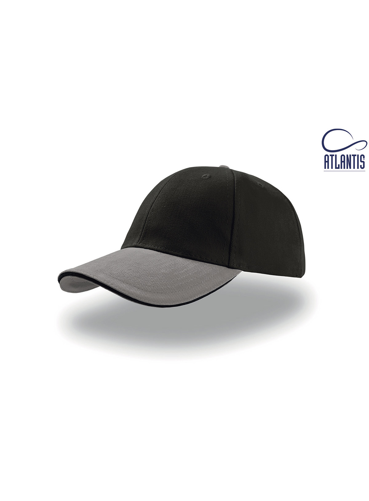 Baseball, Visiera tipo sandwich con inserto a contrasto. Chiusura con cinturino passante su fibbia in metallo, occhiello ricamato