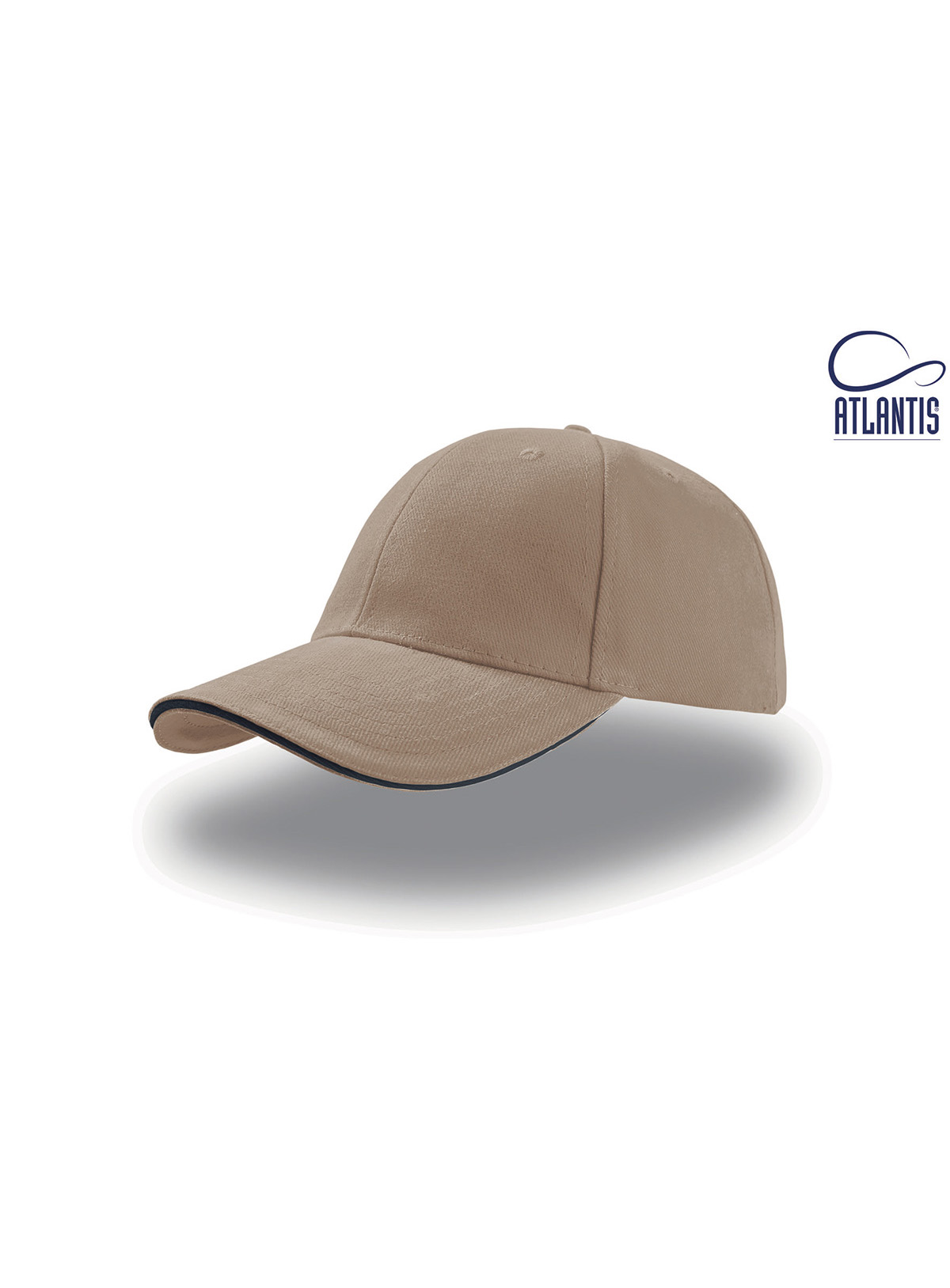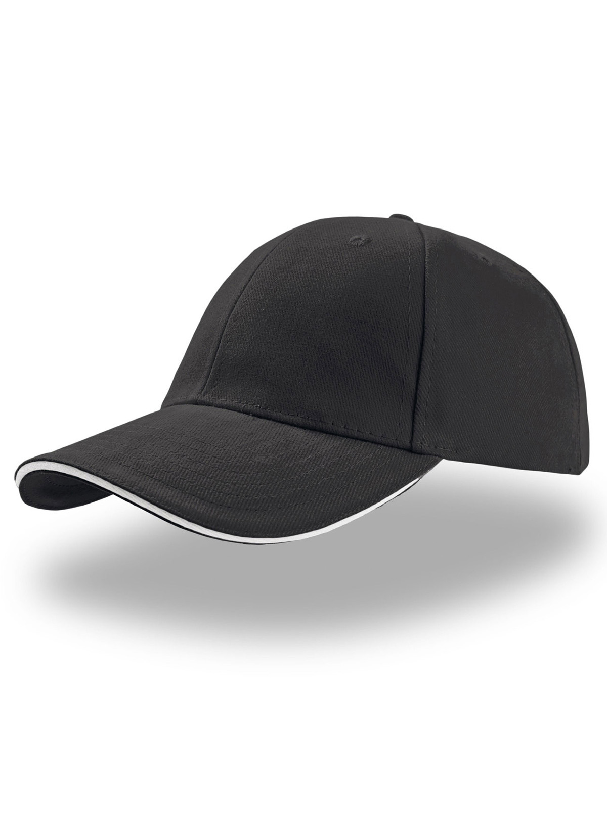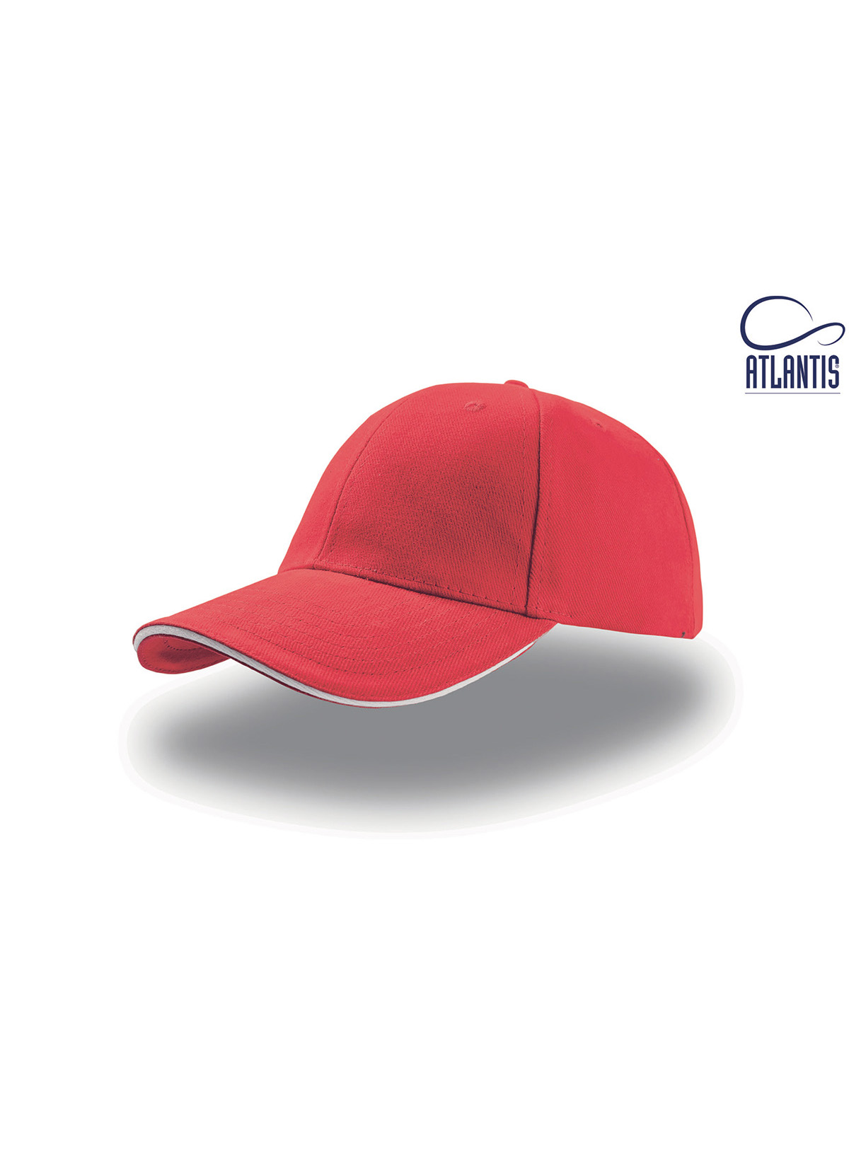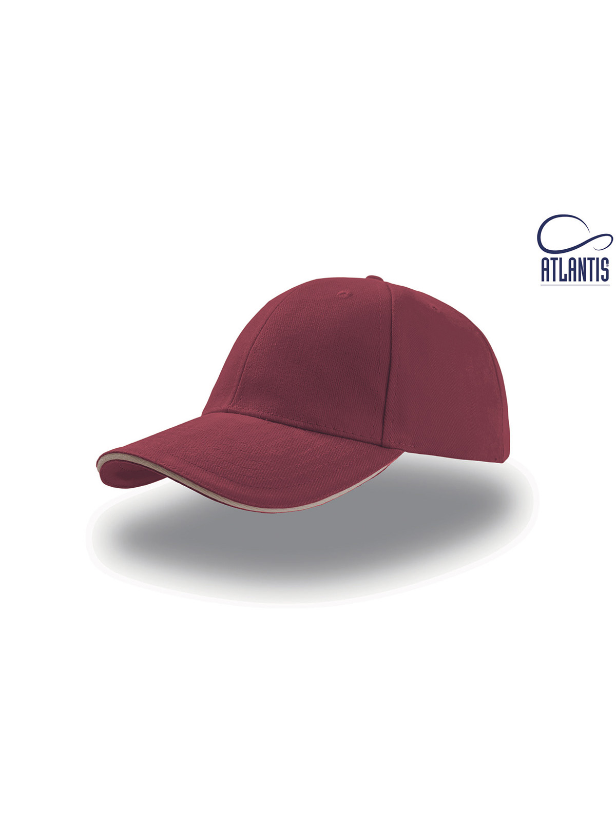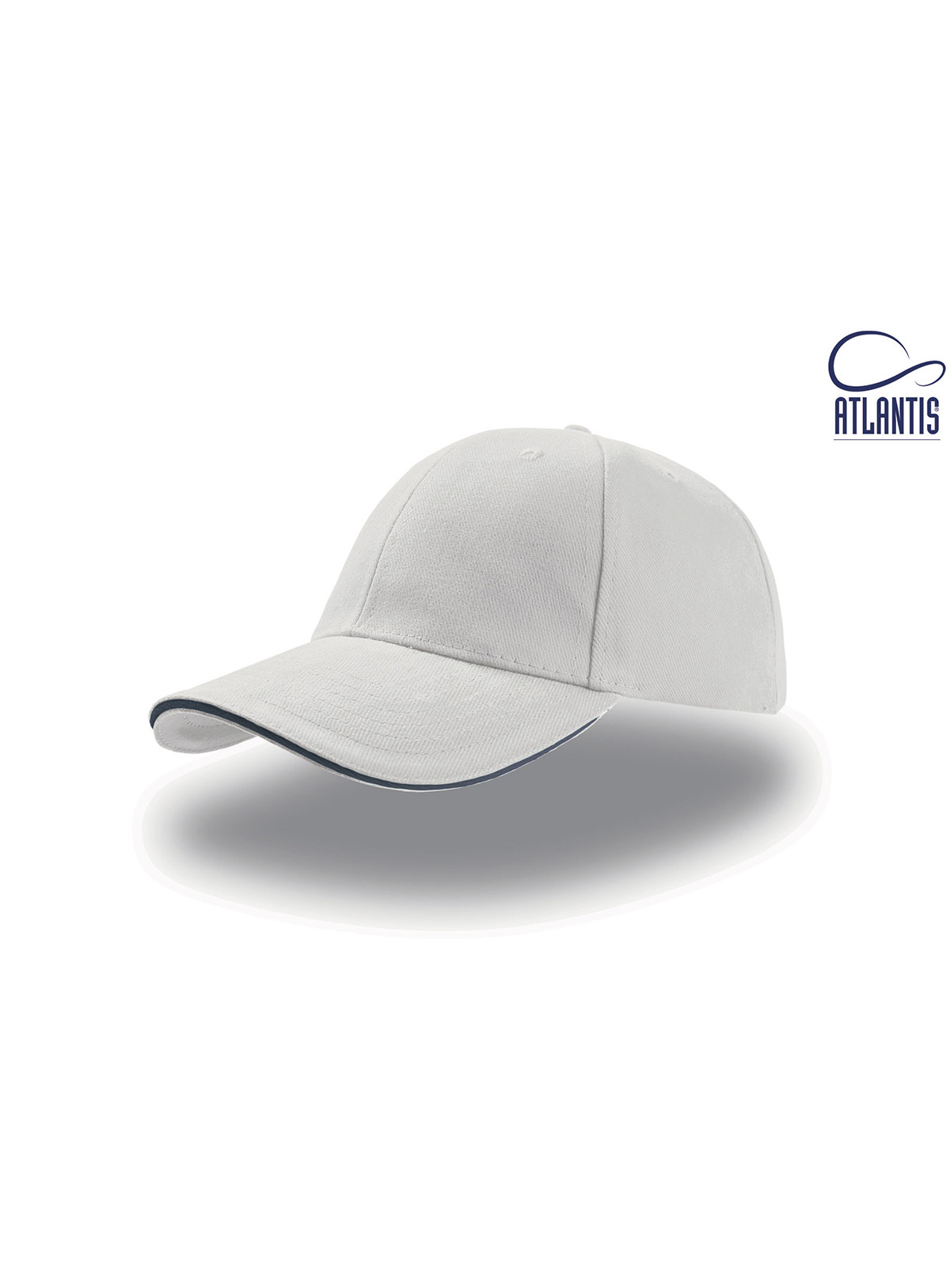 Baseball, Visiera tipo sandwich con inserto a contrasto. Chiusura con cinturino passante su fibbia in metallo, occhiello ricamato