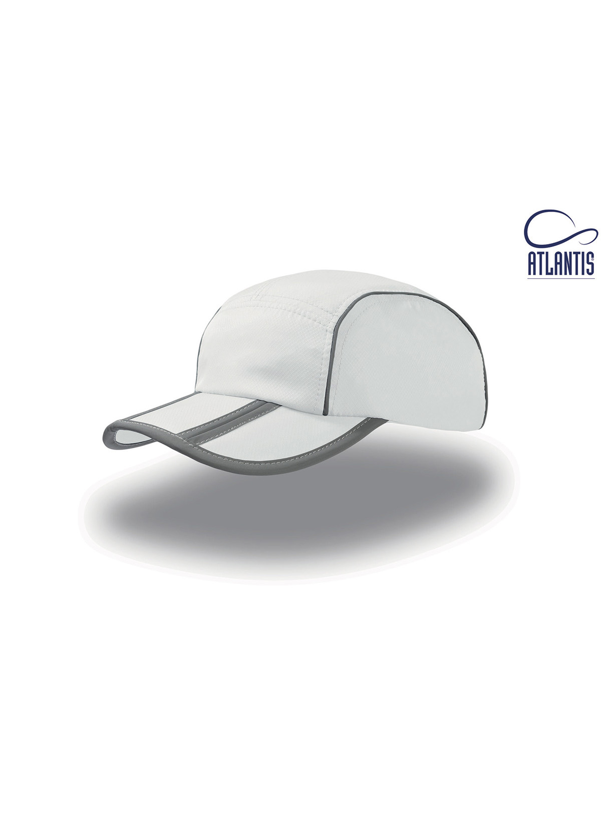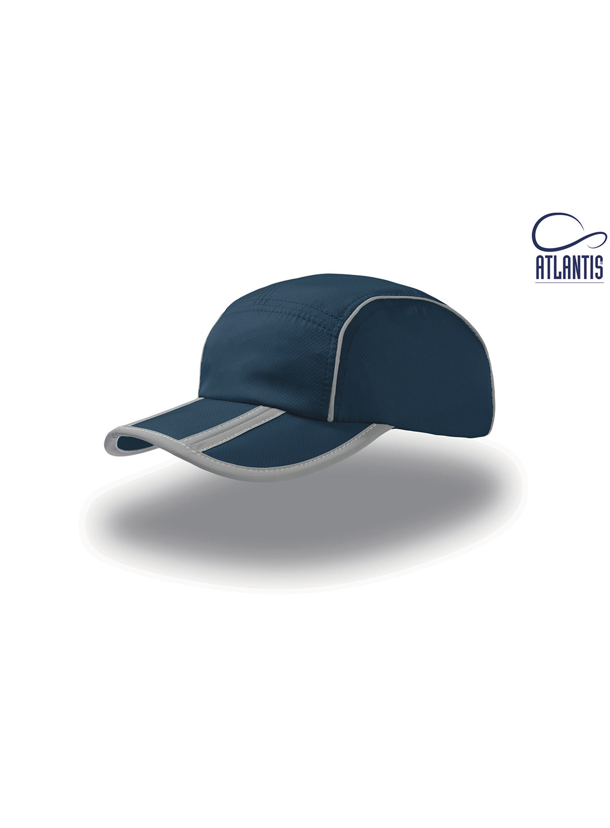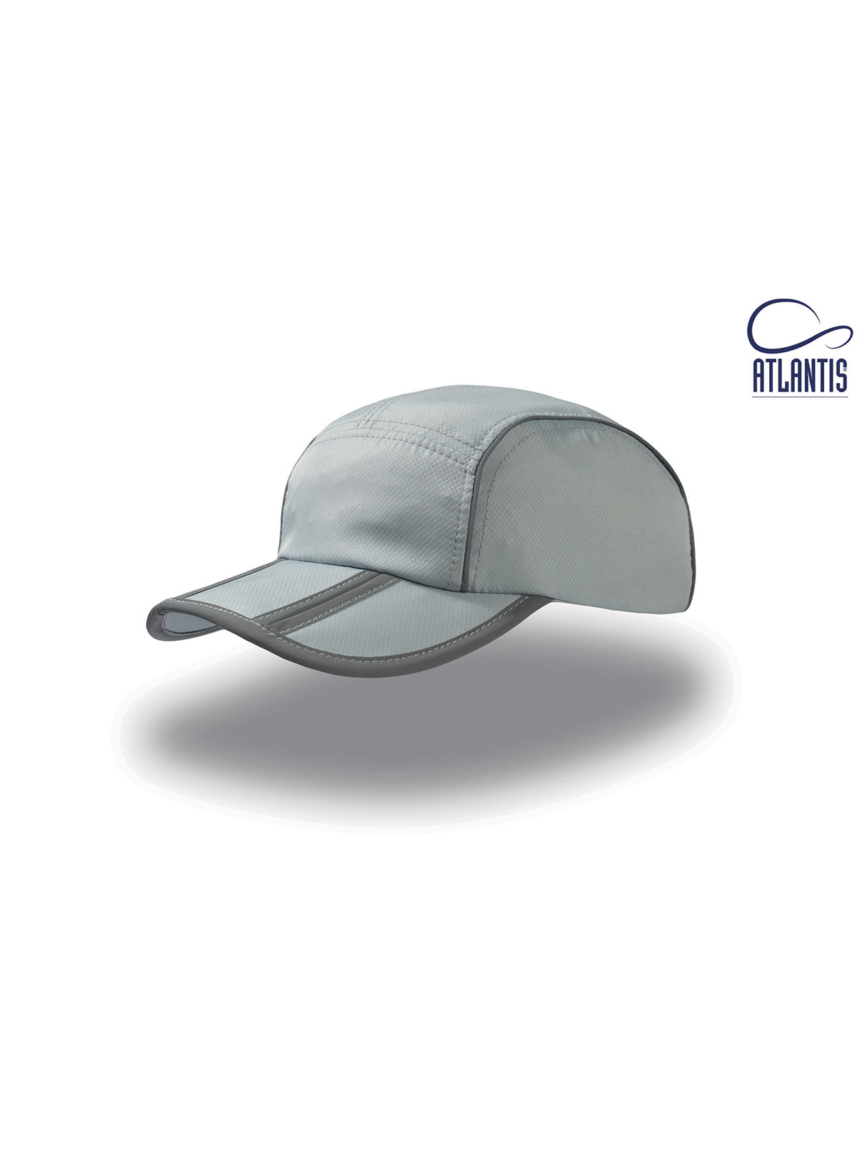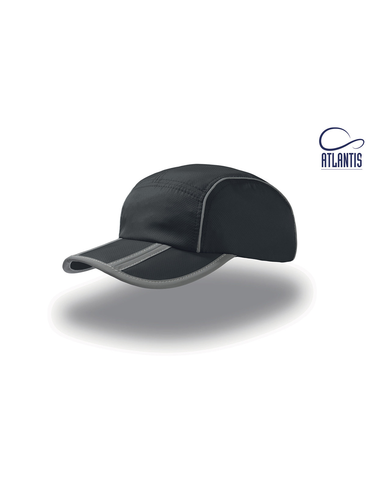 Pannello frontale non strutturato e visiera pieghevole, piping e banda riflettente, chiusura con fibbia in PVC e parasudore in poliestere. Materiale traspirante adatto allo sport