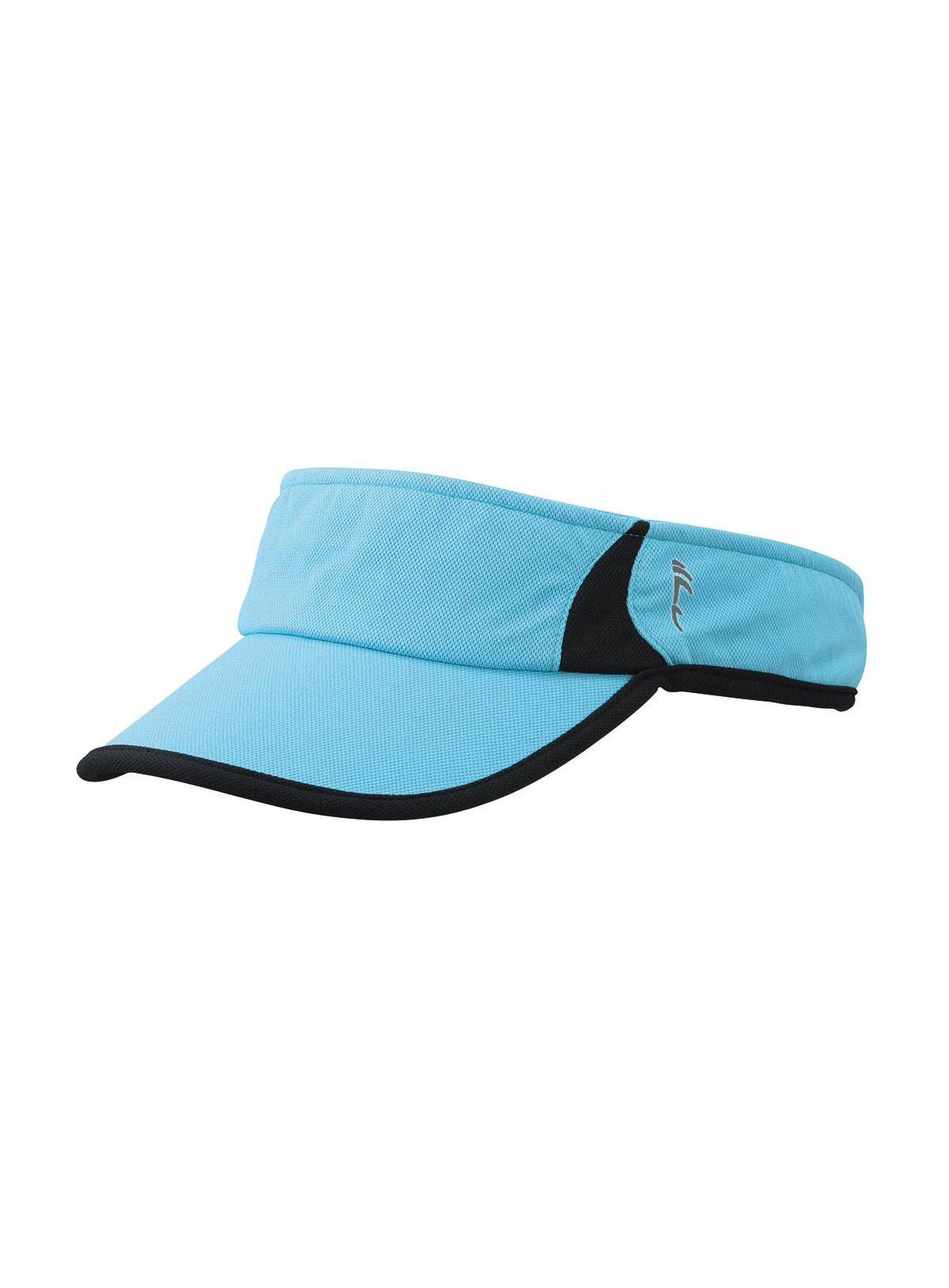 Sunvisor in design sportivo ?Inserti in colori a contrasto, Inserti sulla visiera e cappa in colori a contrasto, IQseen™ prints riflettenti secondo la norma EN ISO 20471:2013 , Fascetta