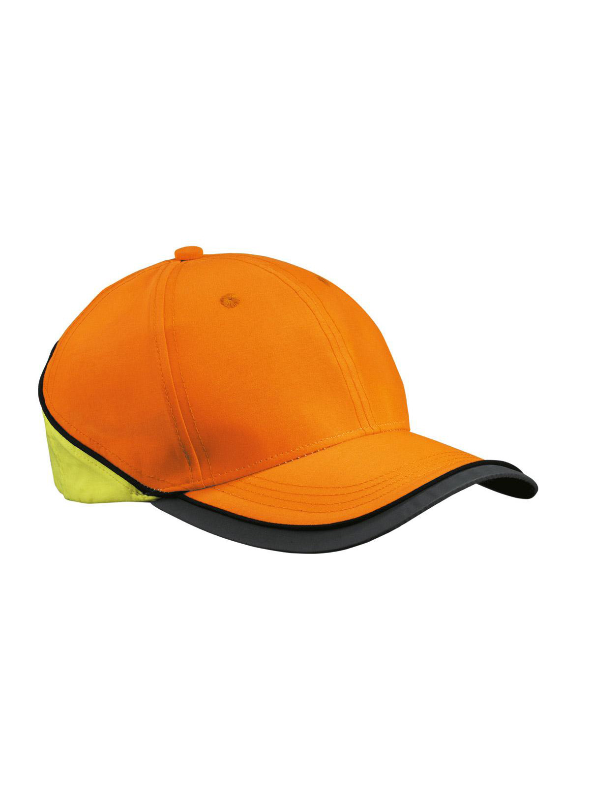Cap funzionale a 6 pannelli in colori accesi catarifrangente 2 fori traspiranti imbastiti , 4 cuciture sulla visiera, Cucitura decorativa intorno al cap, Pannelli frontali laminati, Fascetta tergisudore imbottita in satin, Chiusura in velcro e bordino intorno alla visiera catarifrangente conforme, velcro, policromo, Safety