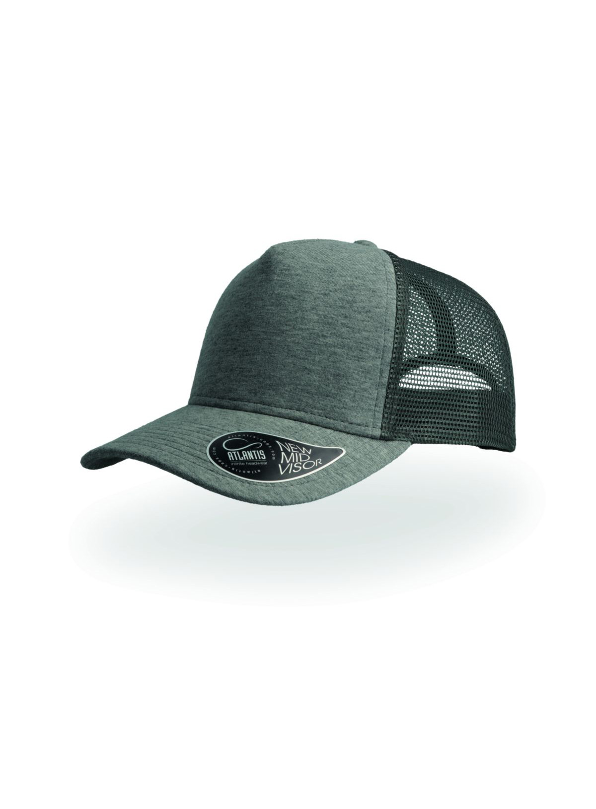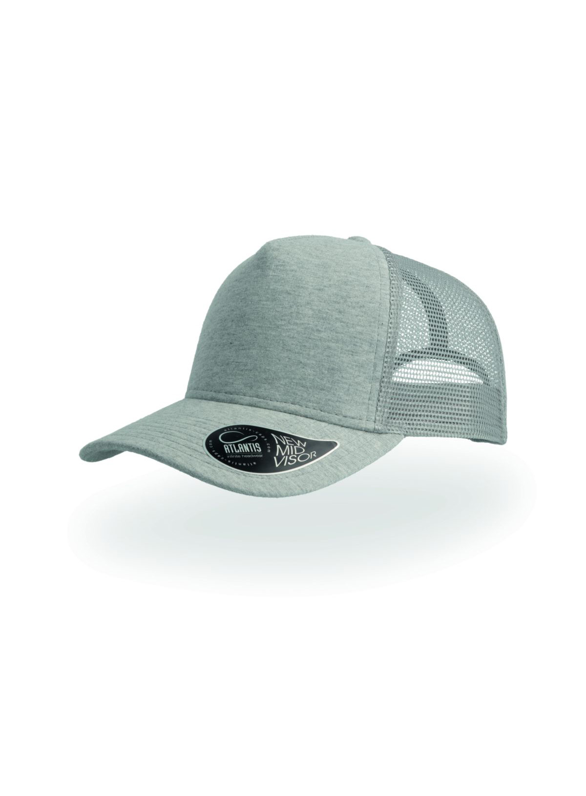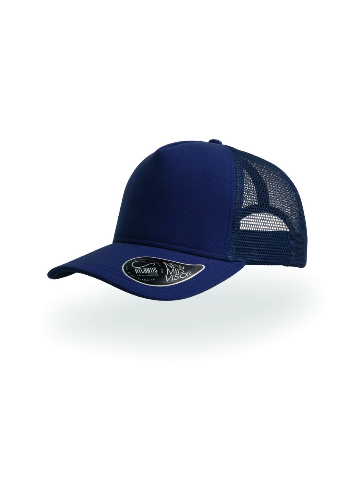 5 pannelli, trucker cap, pannello frontale rinforzato, visiera pre-curvata, adesivo sulla visiera, chiusura in pvc, 8 cuciture su visiera, parasudore in cotone