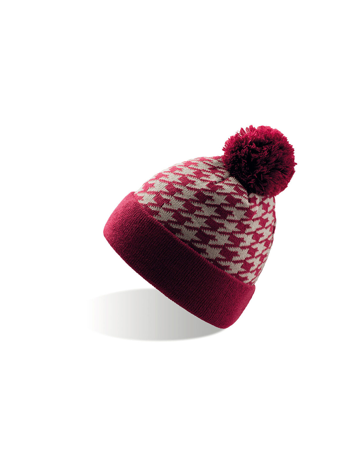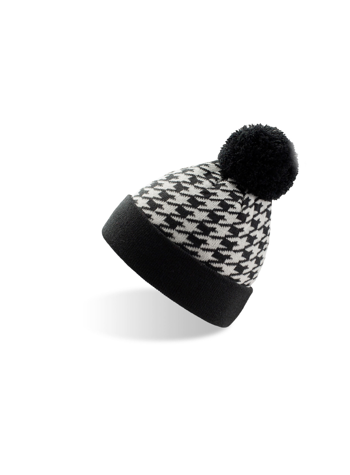 Cuffia con risvolto, pompon, doppio strato, 6 cuciture di chiusura.
