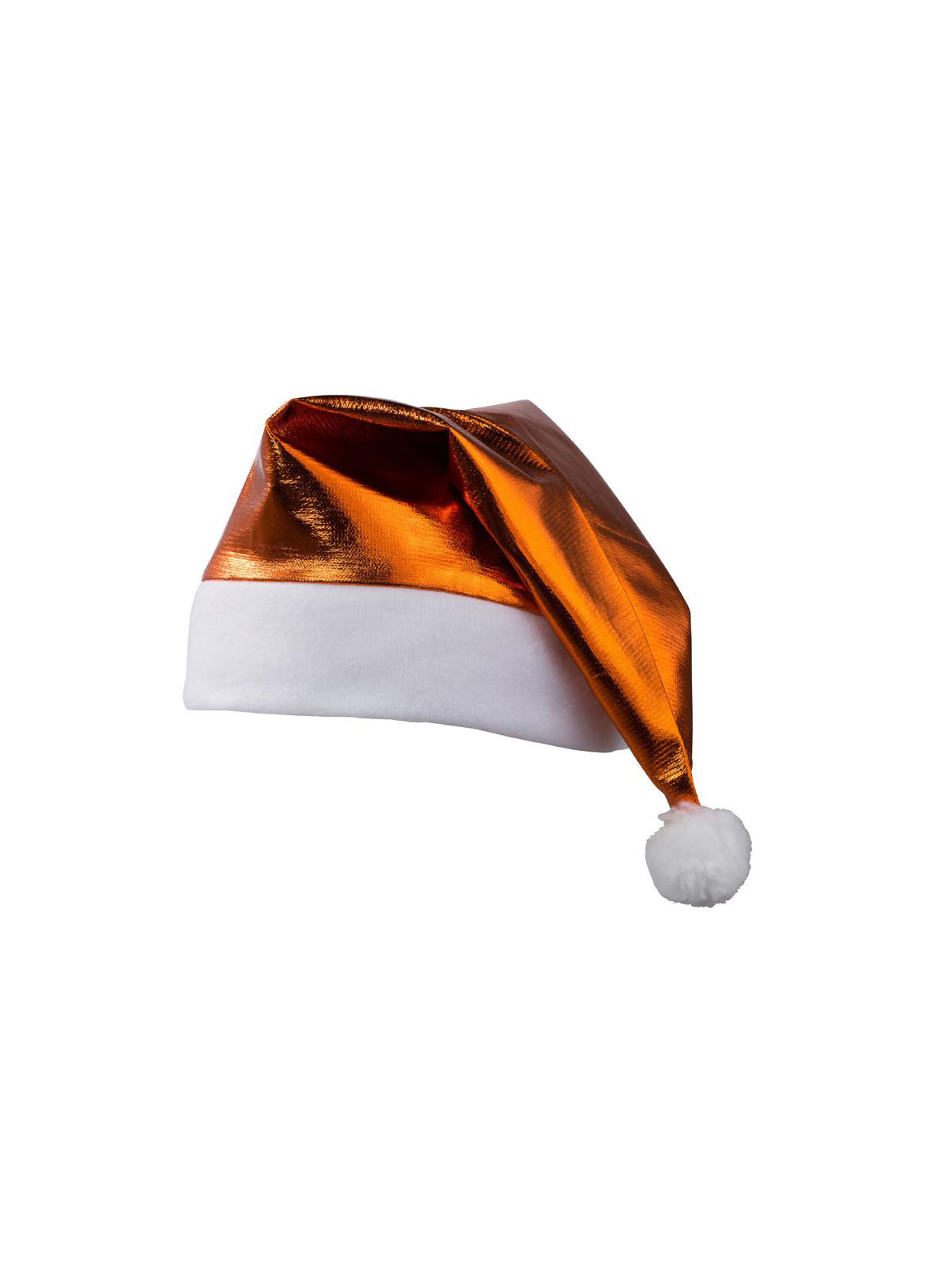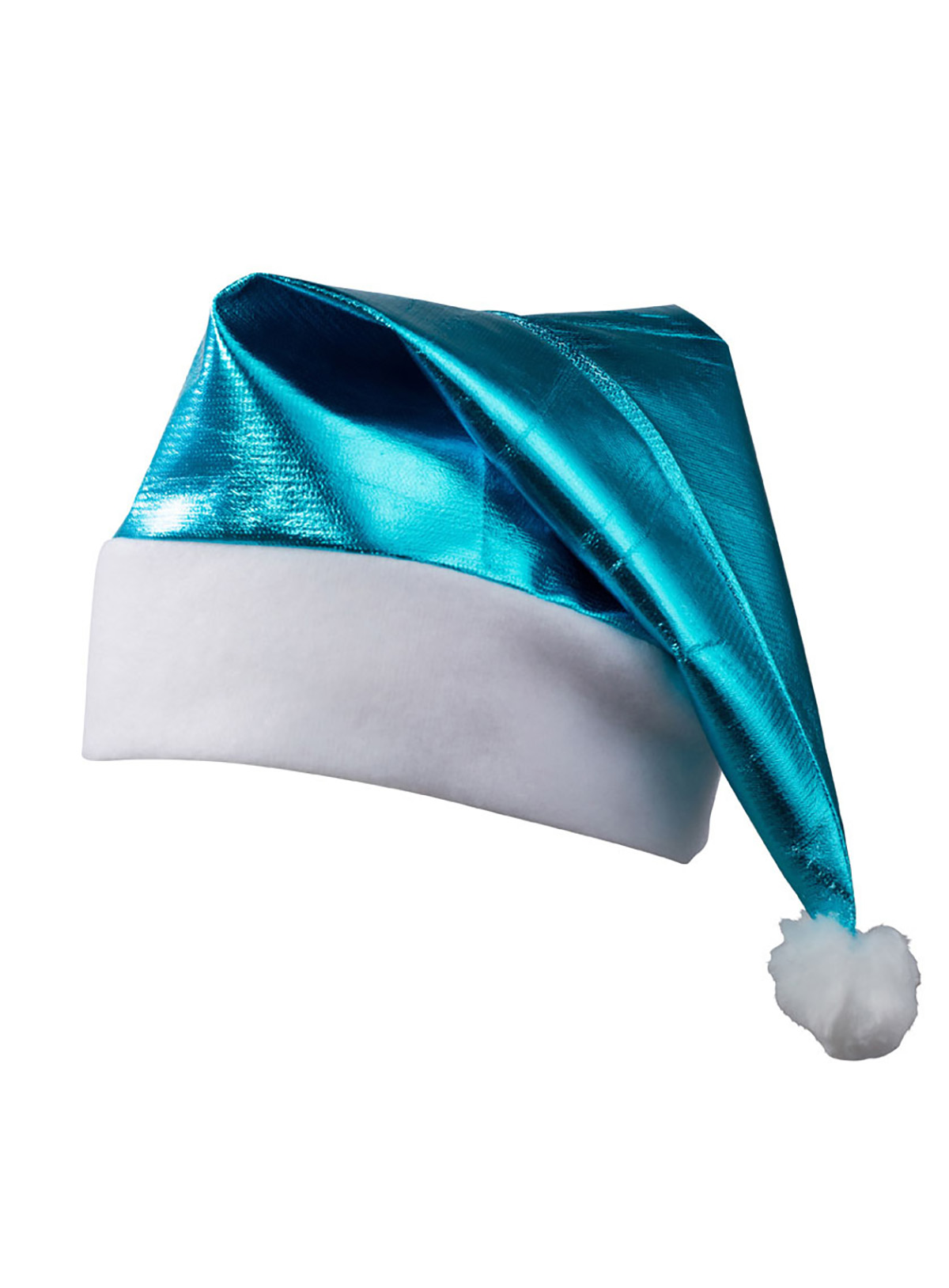 Berretto lucido da Babbo Natale con risvolto bianco e pompon