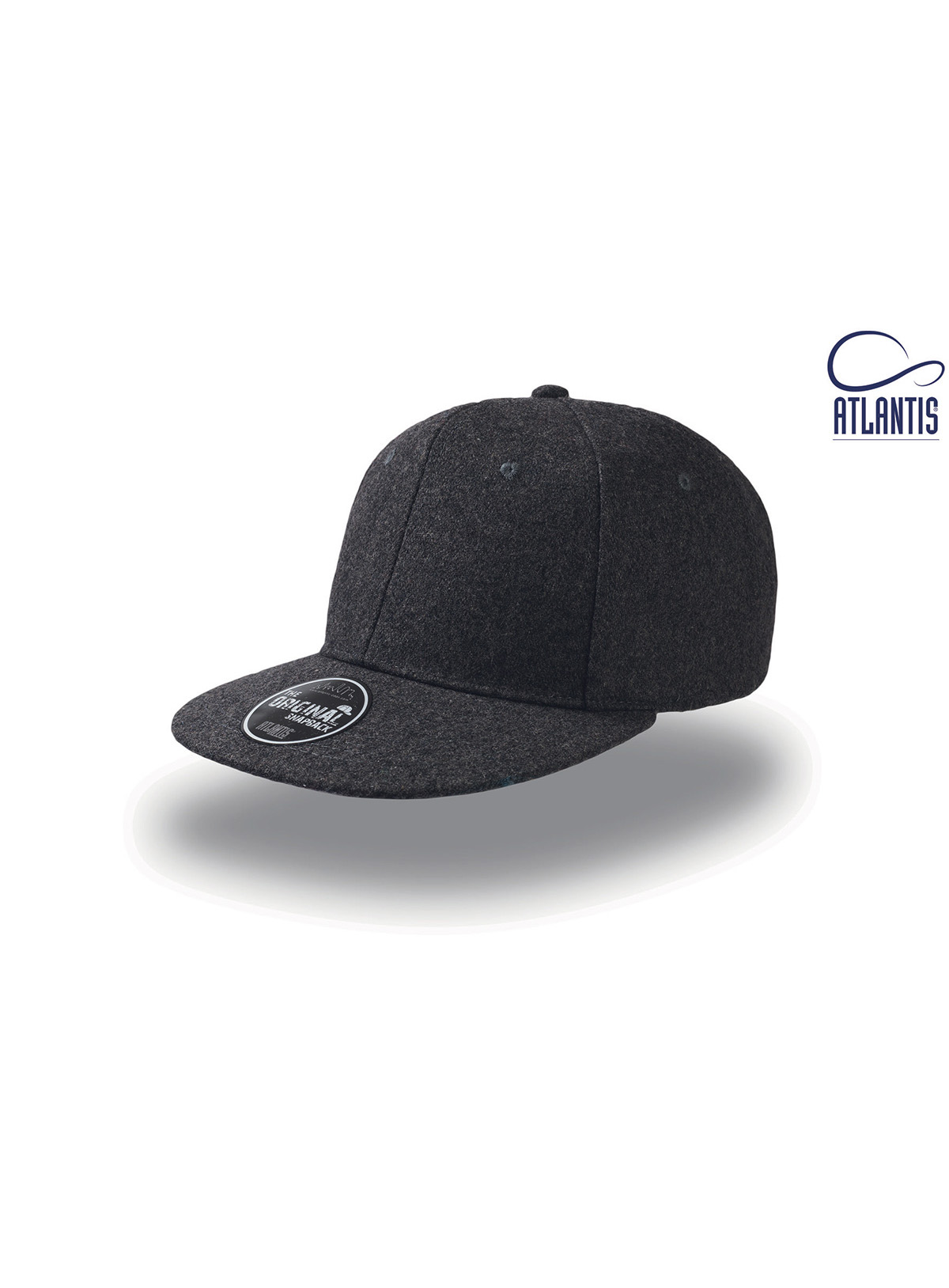 Cappellino 6 pannelli in stile rap con visiera piatta. Pannello frontale rinforzato, chiusura con fibbia in PVC e parasudore in cotone