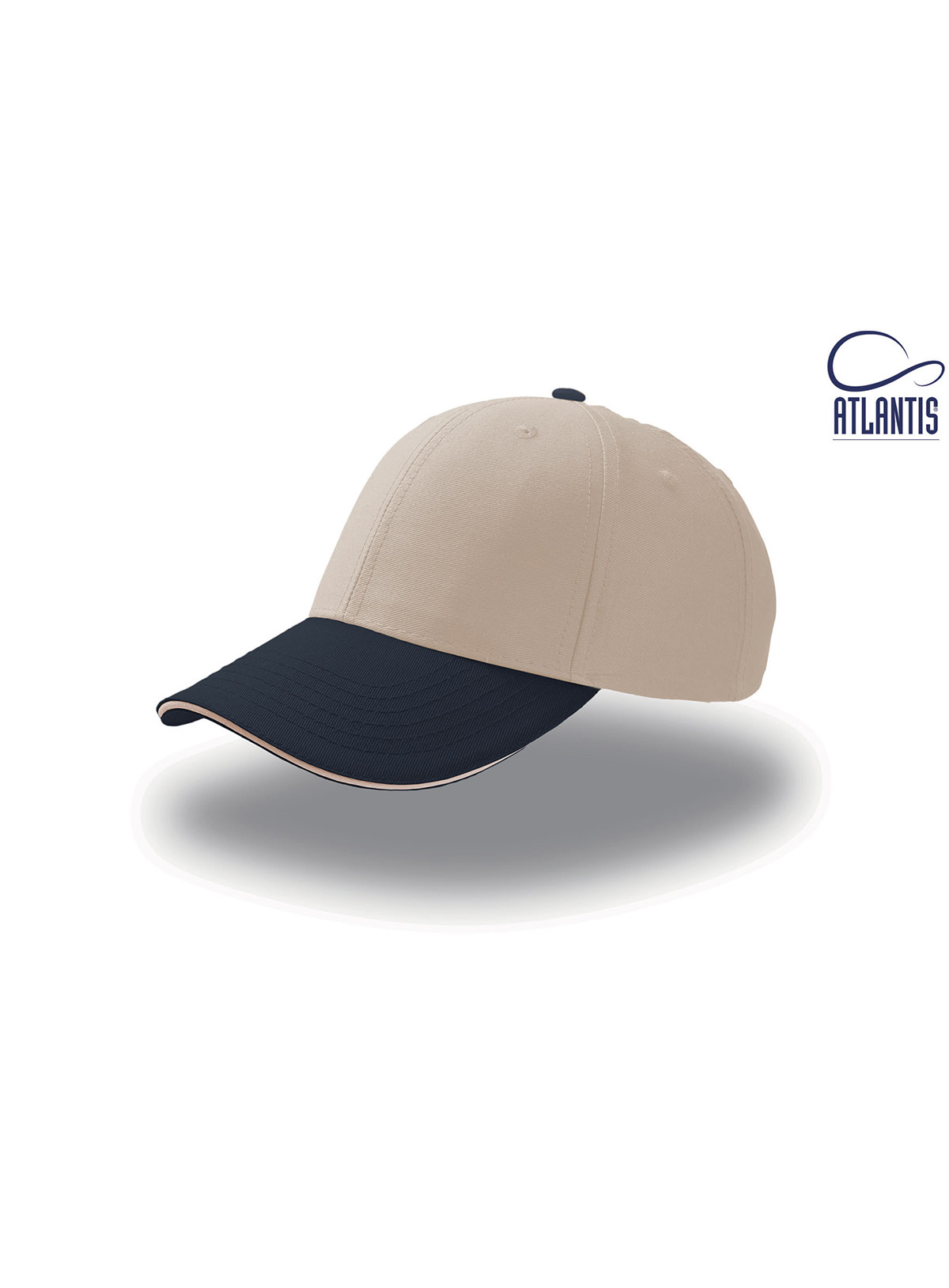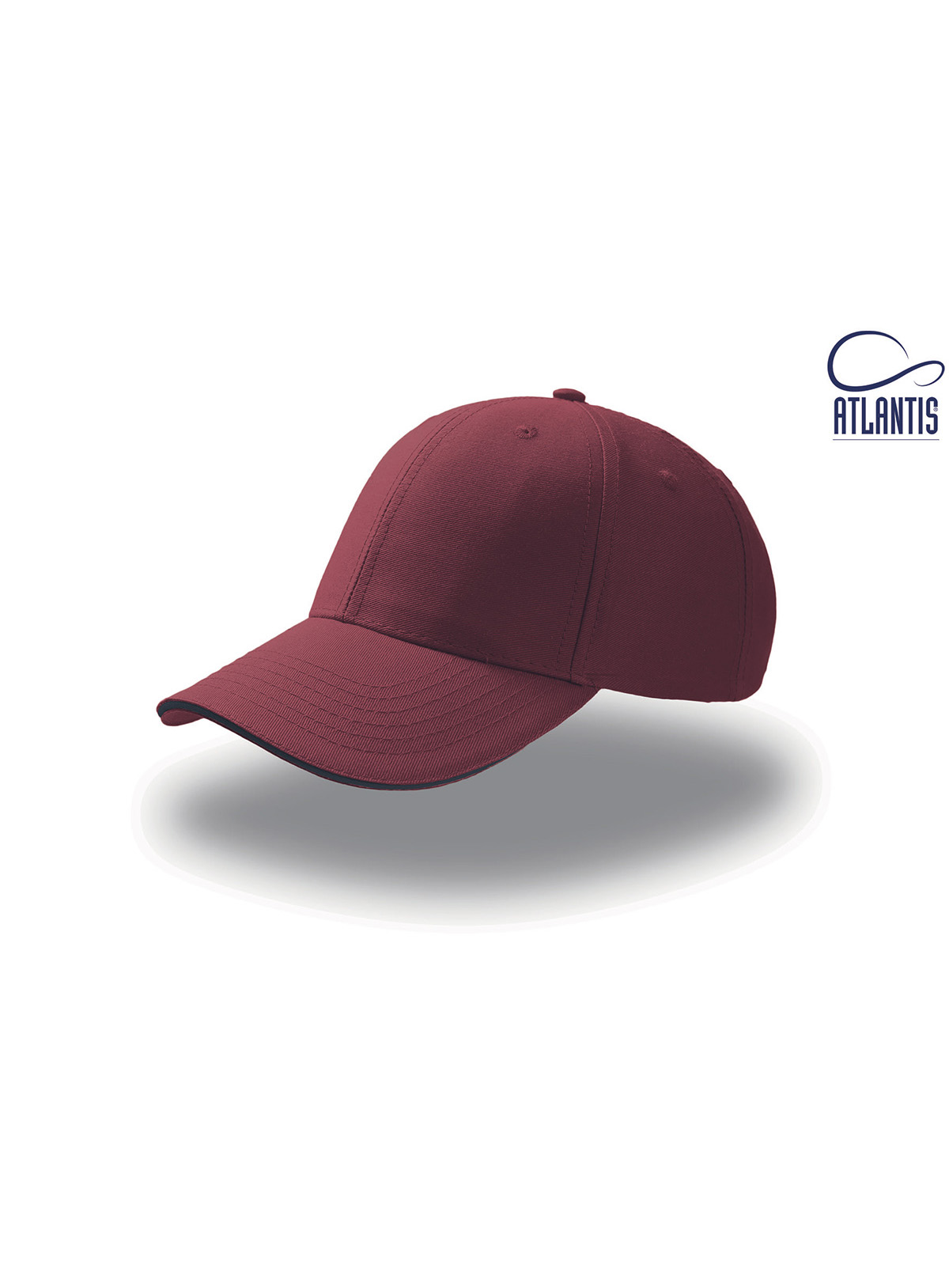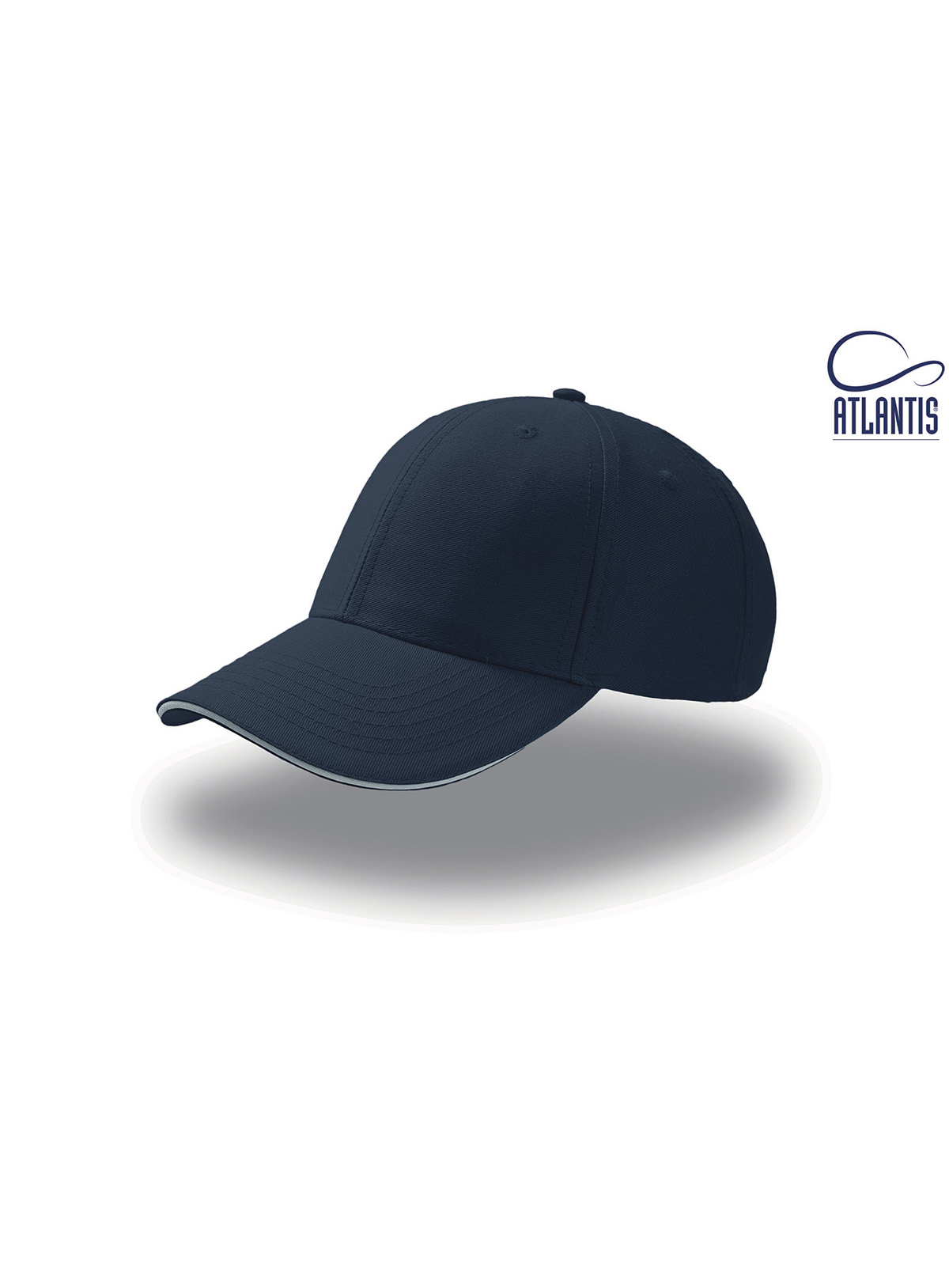 Baseball. Visiera precurvata, tipo sandwich, con inserto a contrasto. Pannello frontale rinforzato. Chiusura con cinturino in tessuto passante su fibbia in metallo.