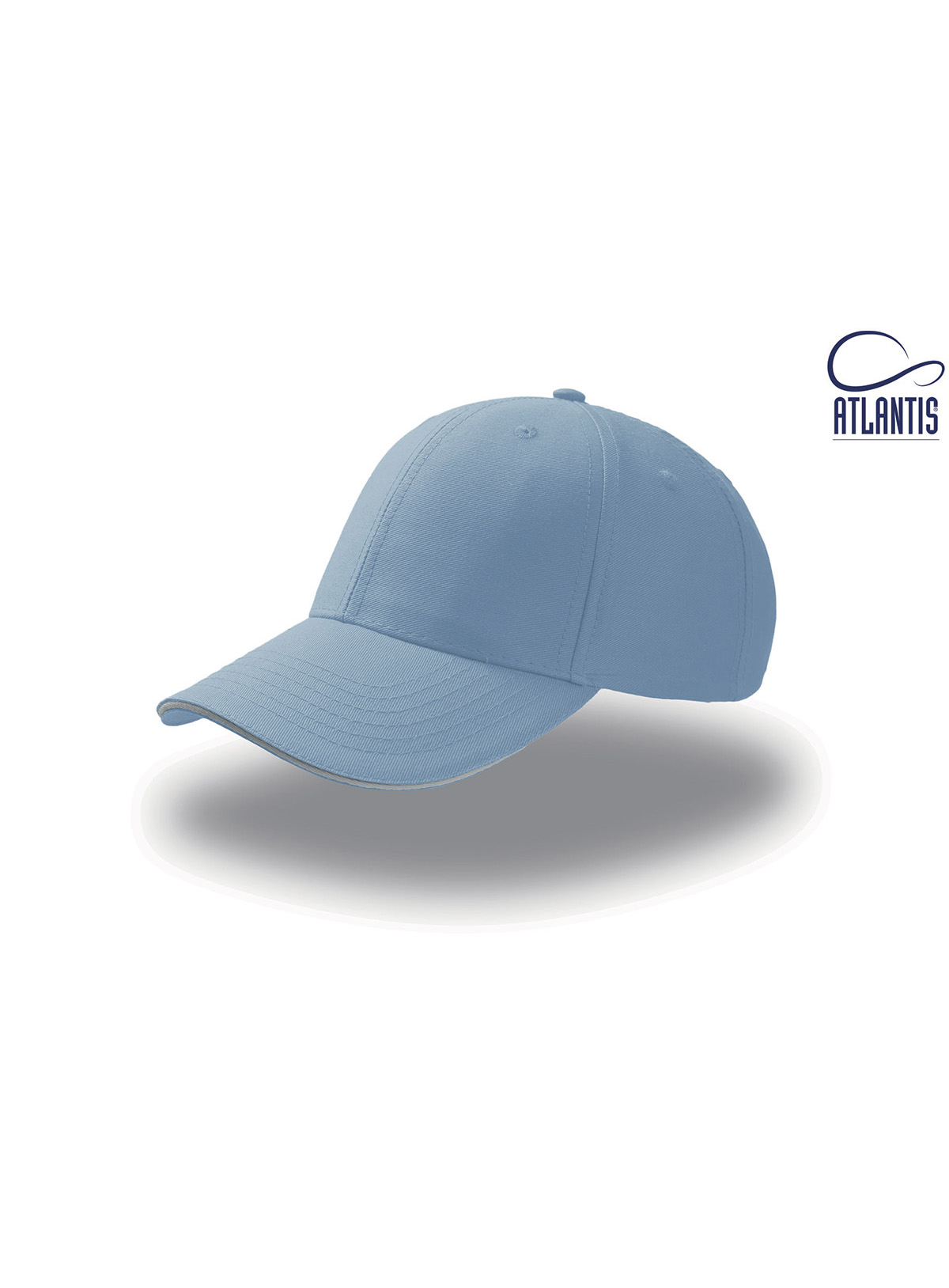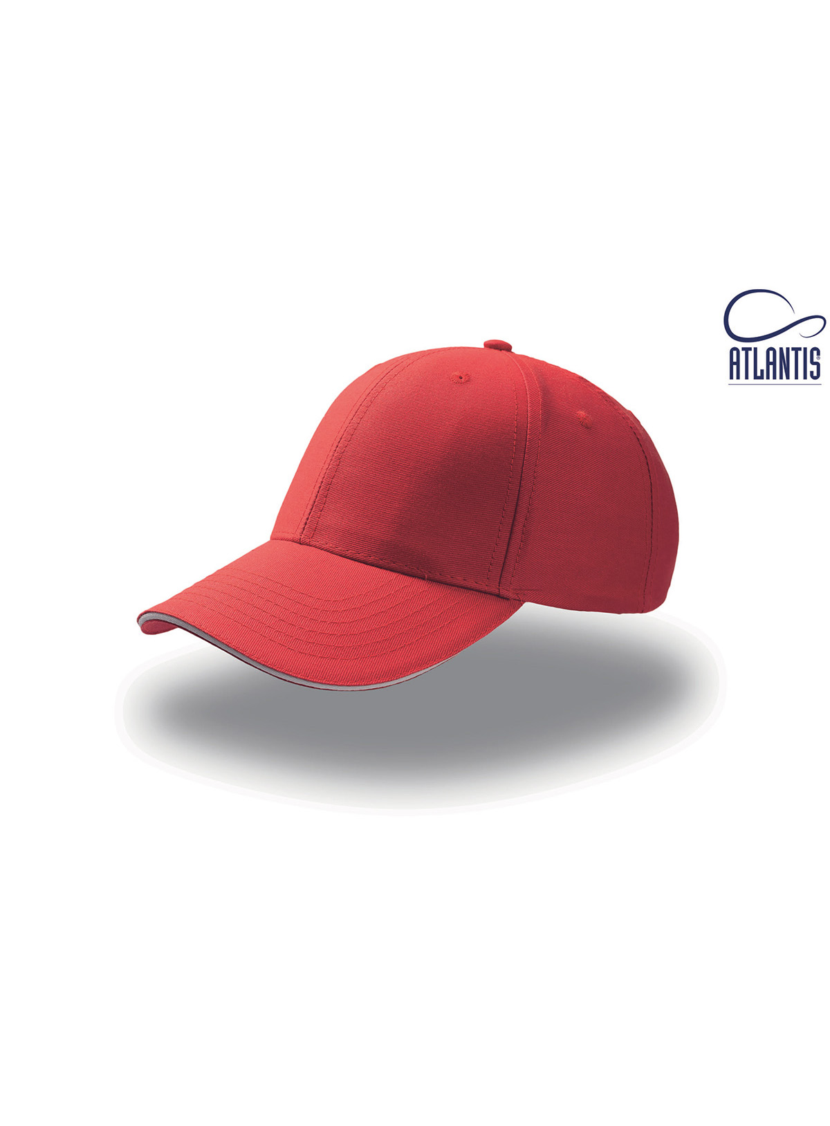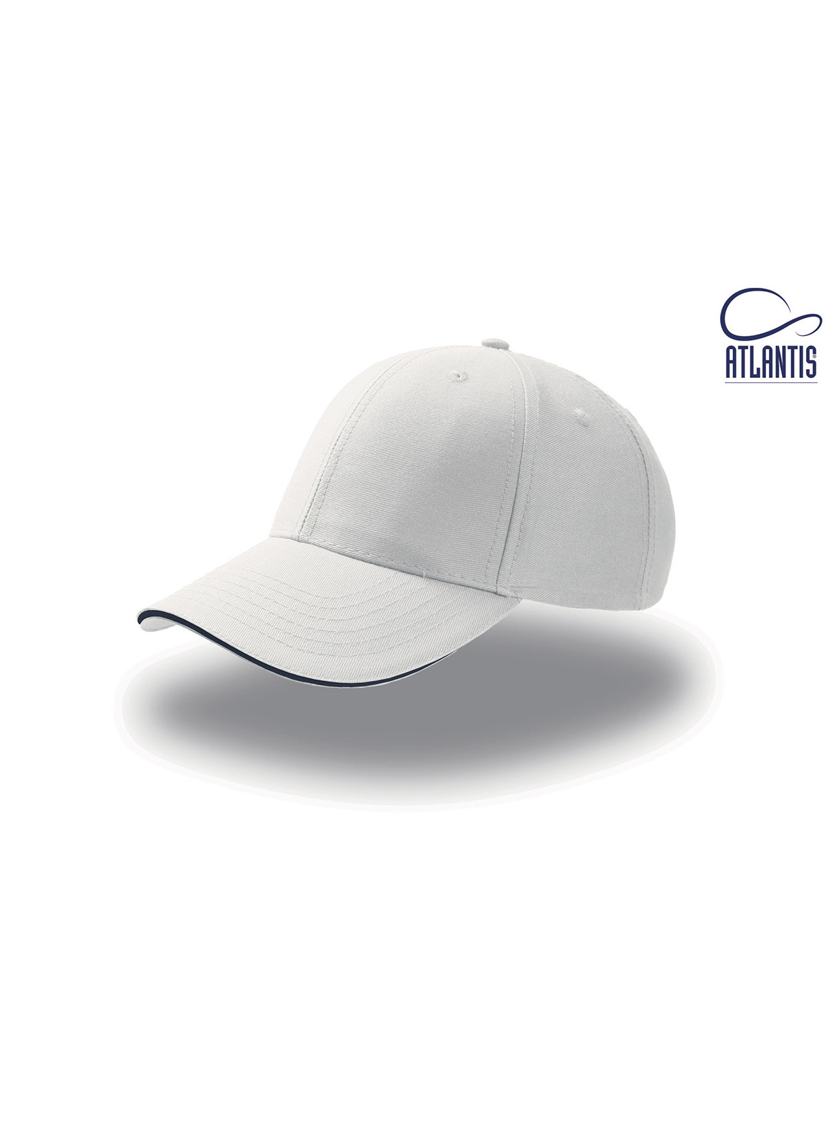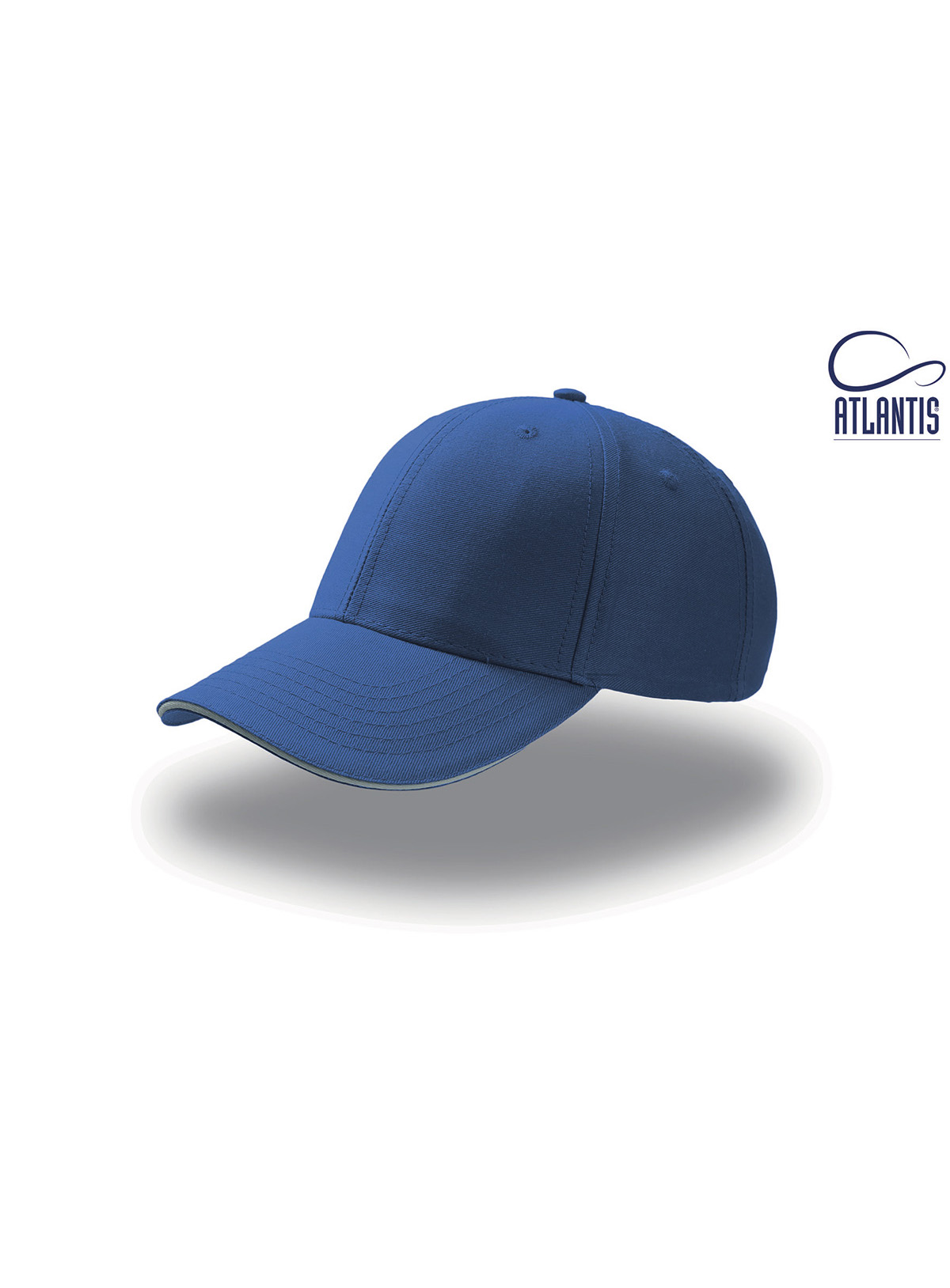 Baseball. Visiera precurvata, tipo sandwich, con inserto a contrasto. Pannello frontale rinforzato. Chiusura con cinturino in tessuto passante su fibbia in metallo.