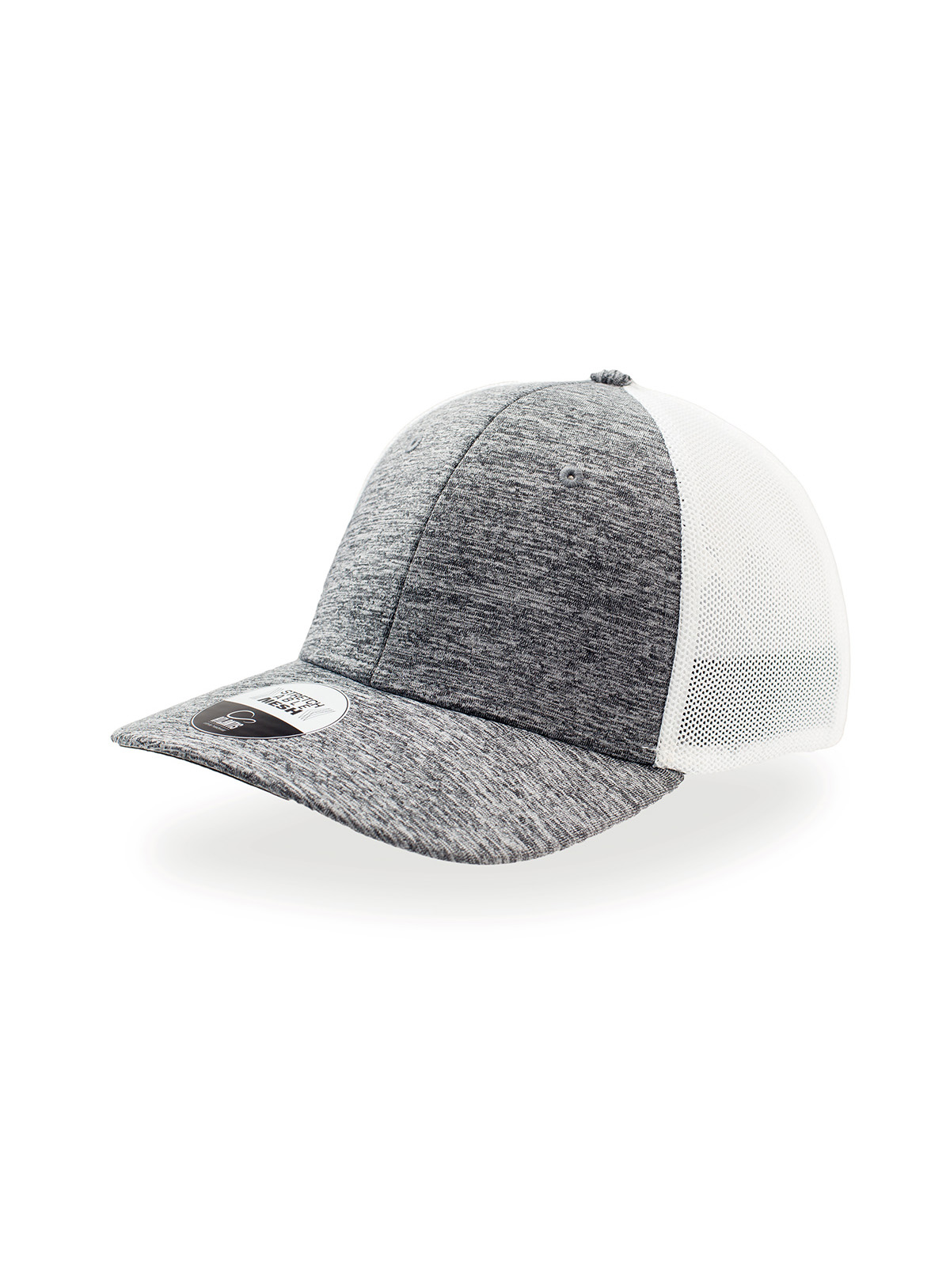 6 pannelli, occhielli ricamati, pannello frontale rinforzato, visiera precurvata, parasudore elasticizzato completamente chiuso, 6 cuciture su visiera.