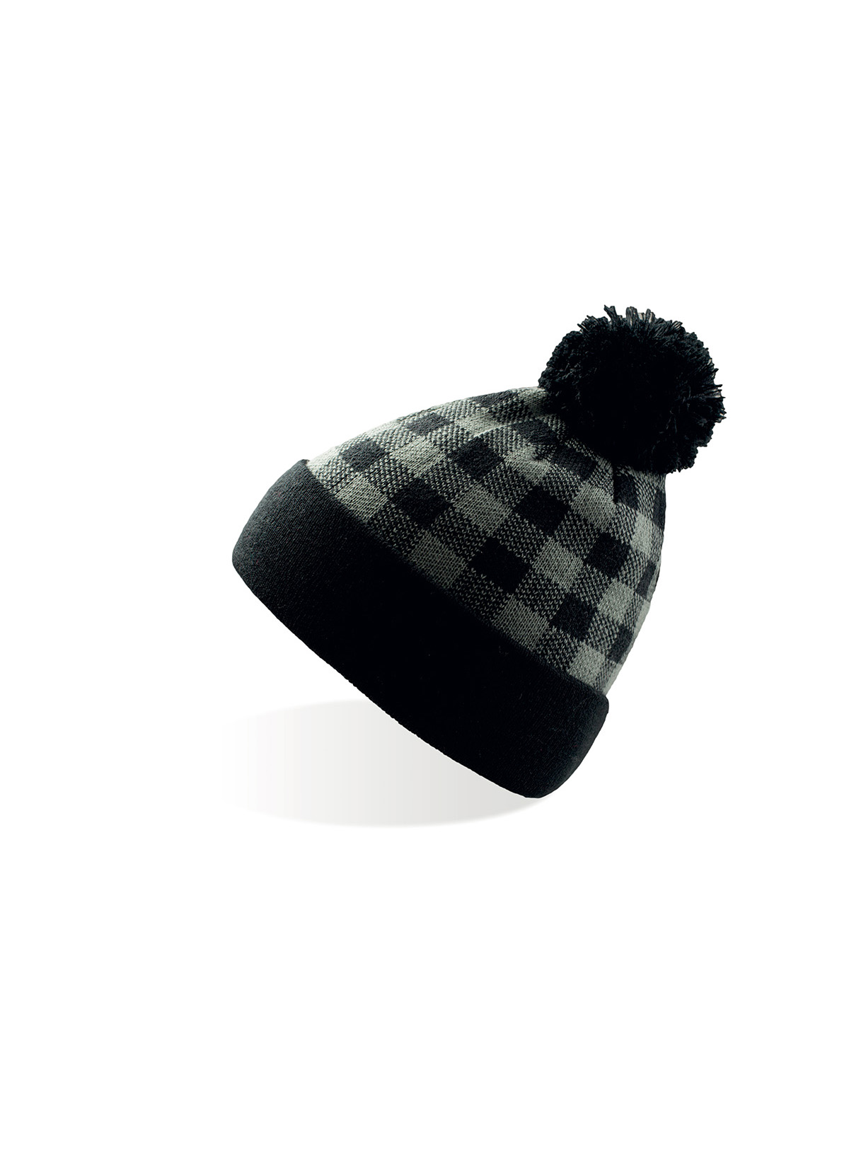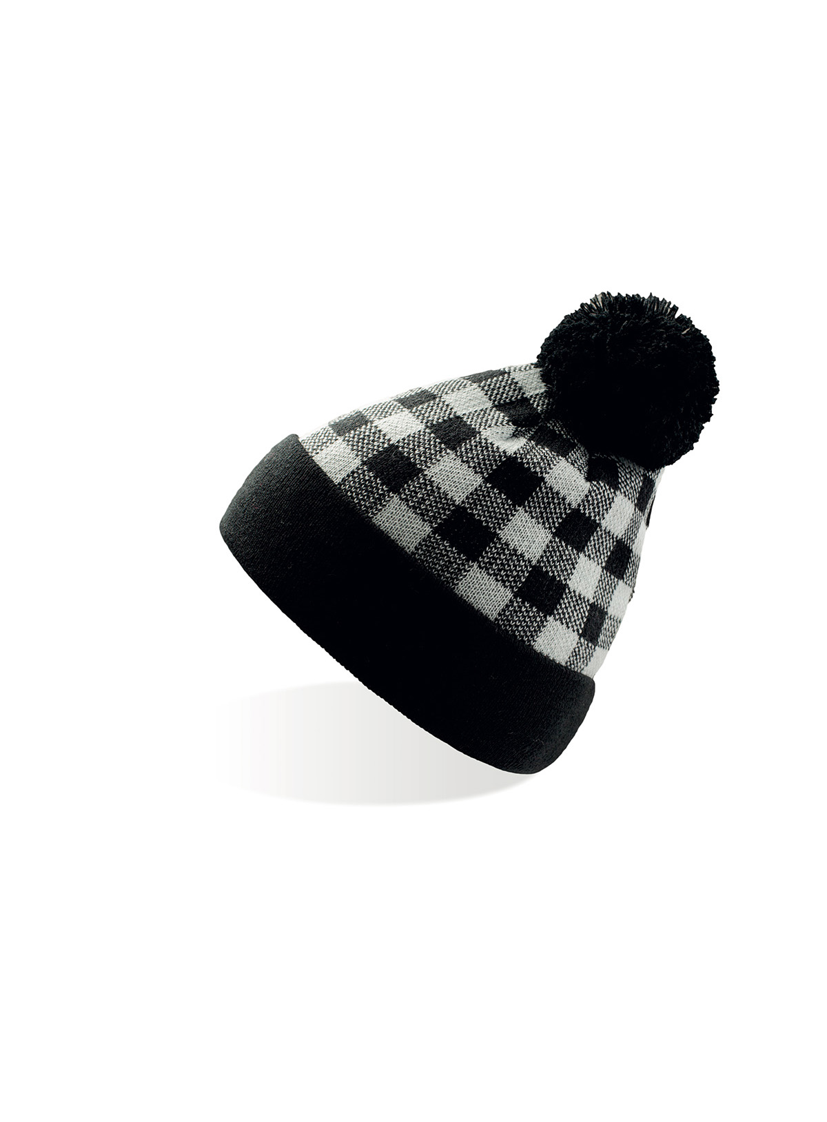 Cuffia con risvolto, pompon, doppio strato, 6 cuciture di chiusura