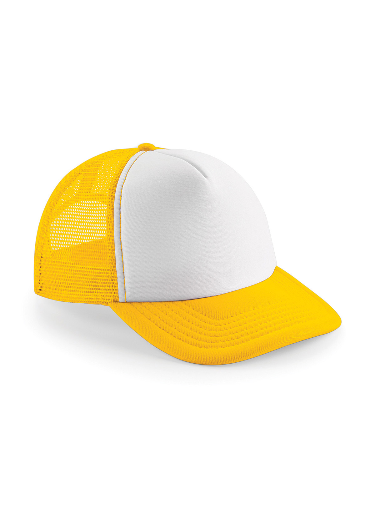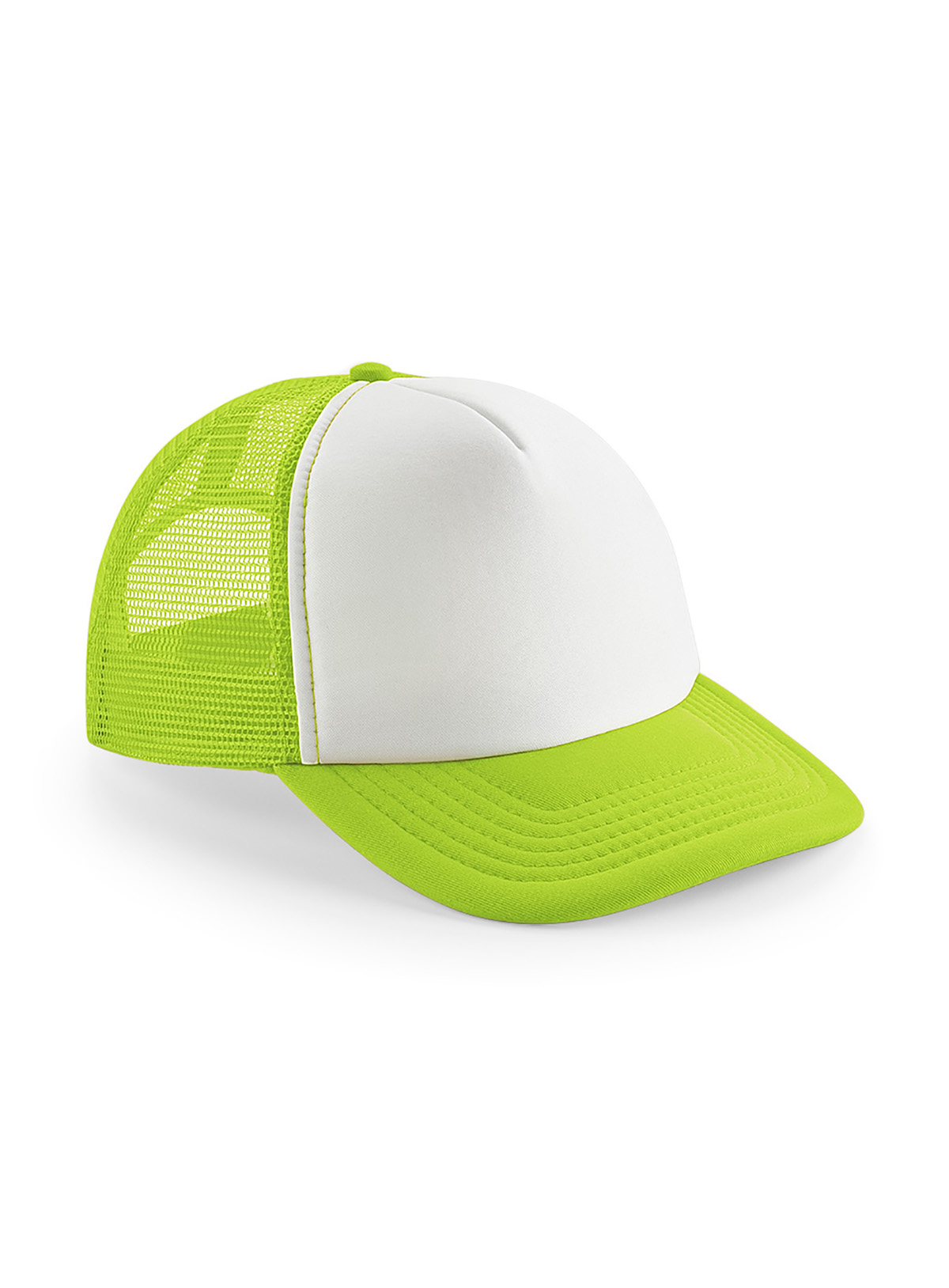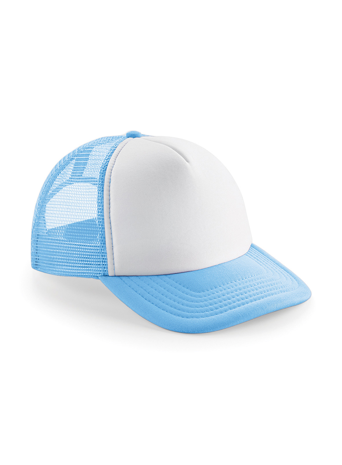 Composizione: Pannello frontale bianco 100% poliestere, pannello posteriore in tinta con visiera 100% nylon.