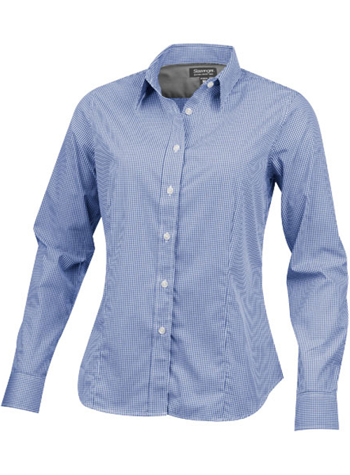 Camicia da donna manica lunga Net. Global Fit.Versione uomo con taschino.Polsino regolabile con un bottone, unica piega.Versione uomo con bottone sul colletto.Nastro interno e interno polsini a contrasto.Cucitura superiore a contrasto.Bottoni in madreperla. Tessuto poplin di filato tinto, 55% cotone e 45% poliestere con finiture anti grinza.