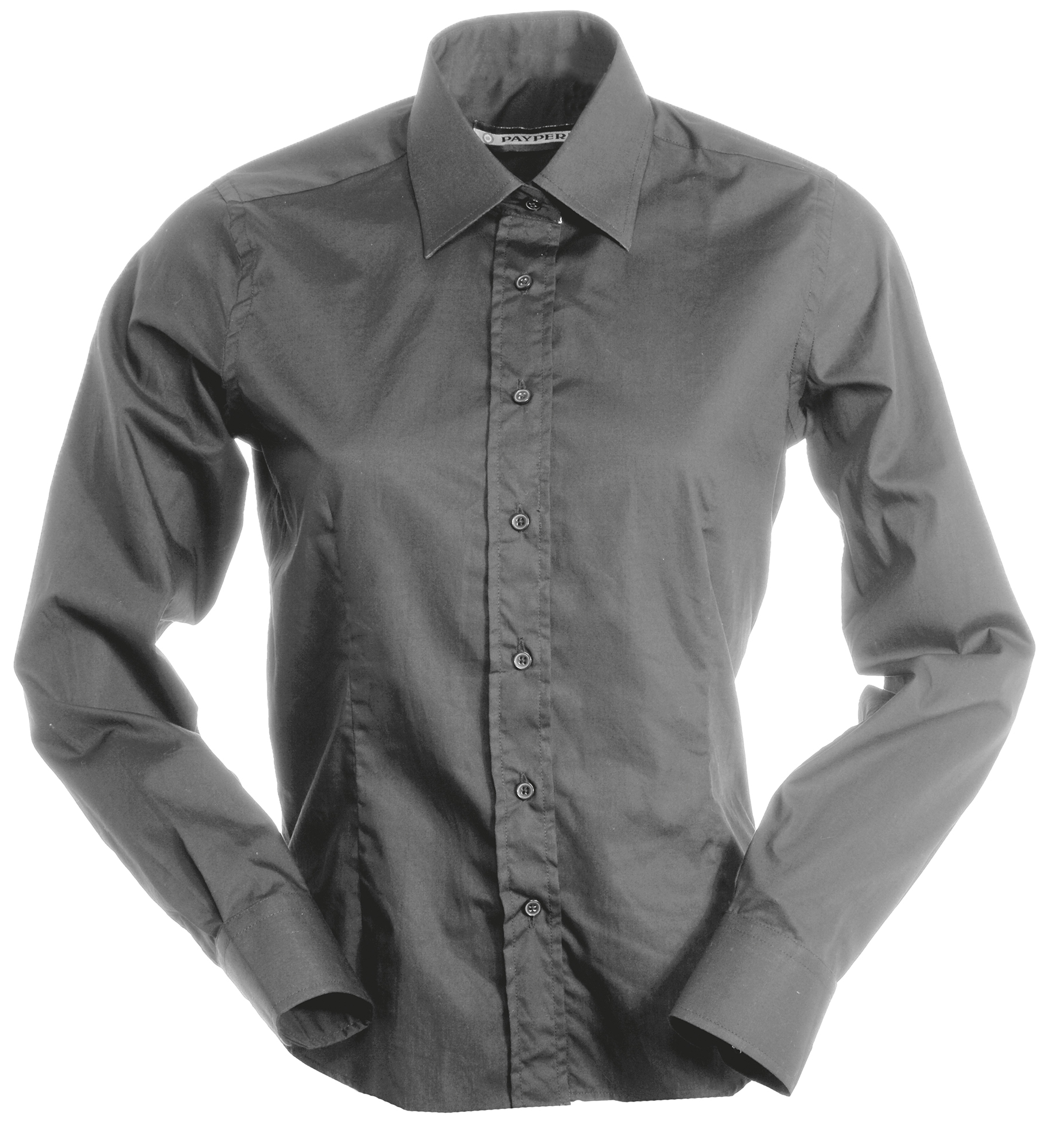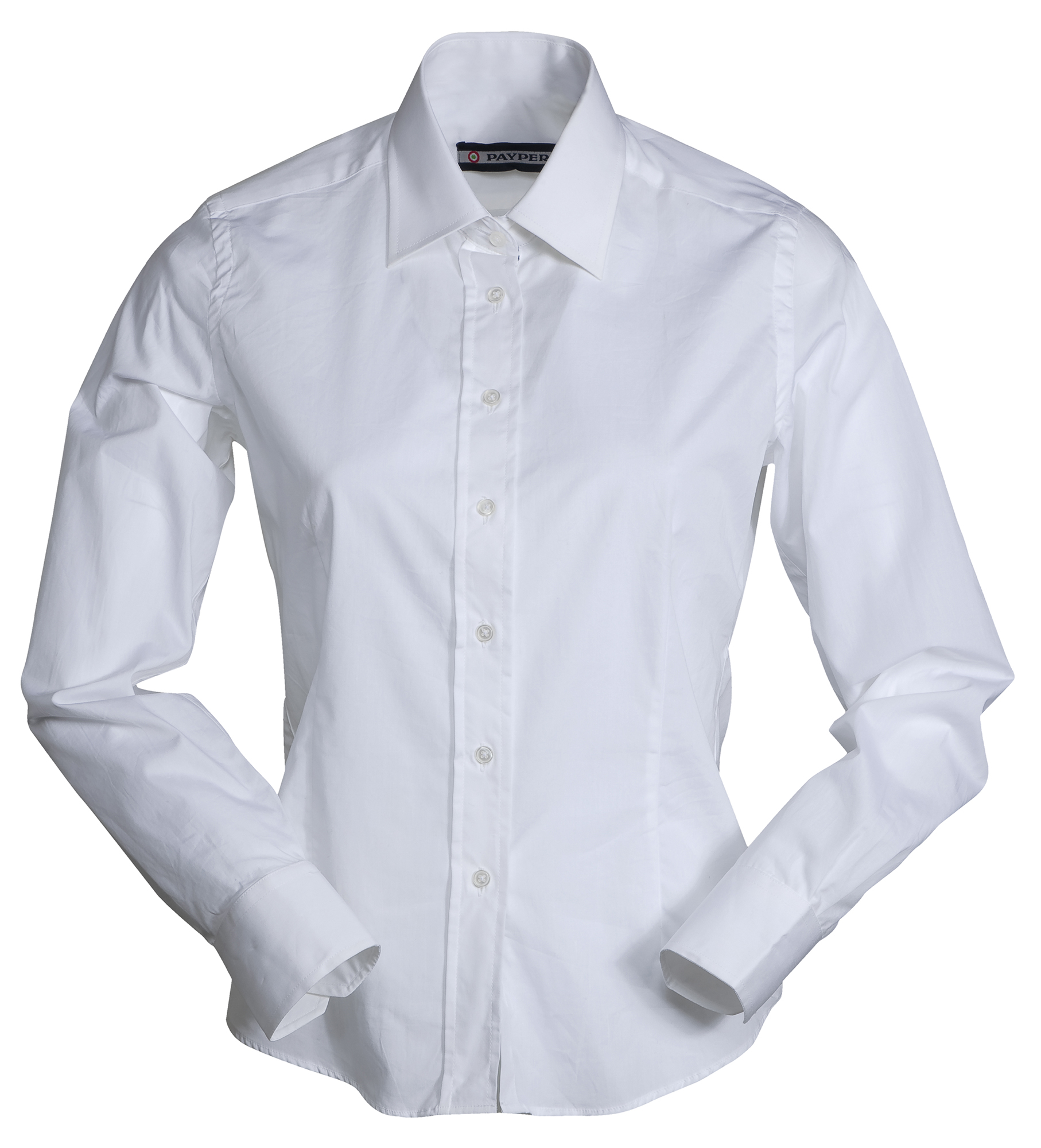 Camicia donna elasticizzata dal titolo finissimo pettinato, vestibilità sfiancata, pinces di ripresa davanti e dietro, colletto modello italiano, polso sagomato a due bottoni e un asola, davanti con cannoncino cucito a vista e bottone in tinta; dietro liscio con carrè. Trattamento easy care del tessuto.