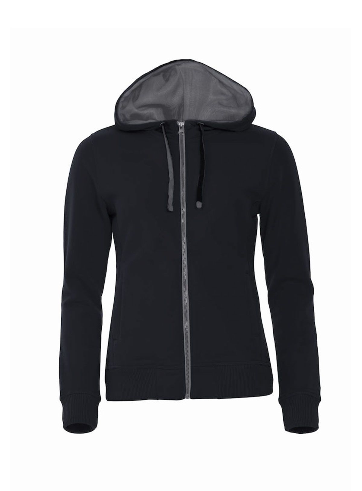 Felpa donna full-zip con cappuccio foderato in mesh. Due tasche esterne con zip e due interne con soluzione per auricolari.