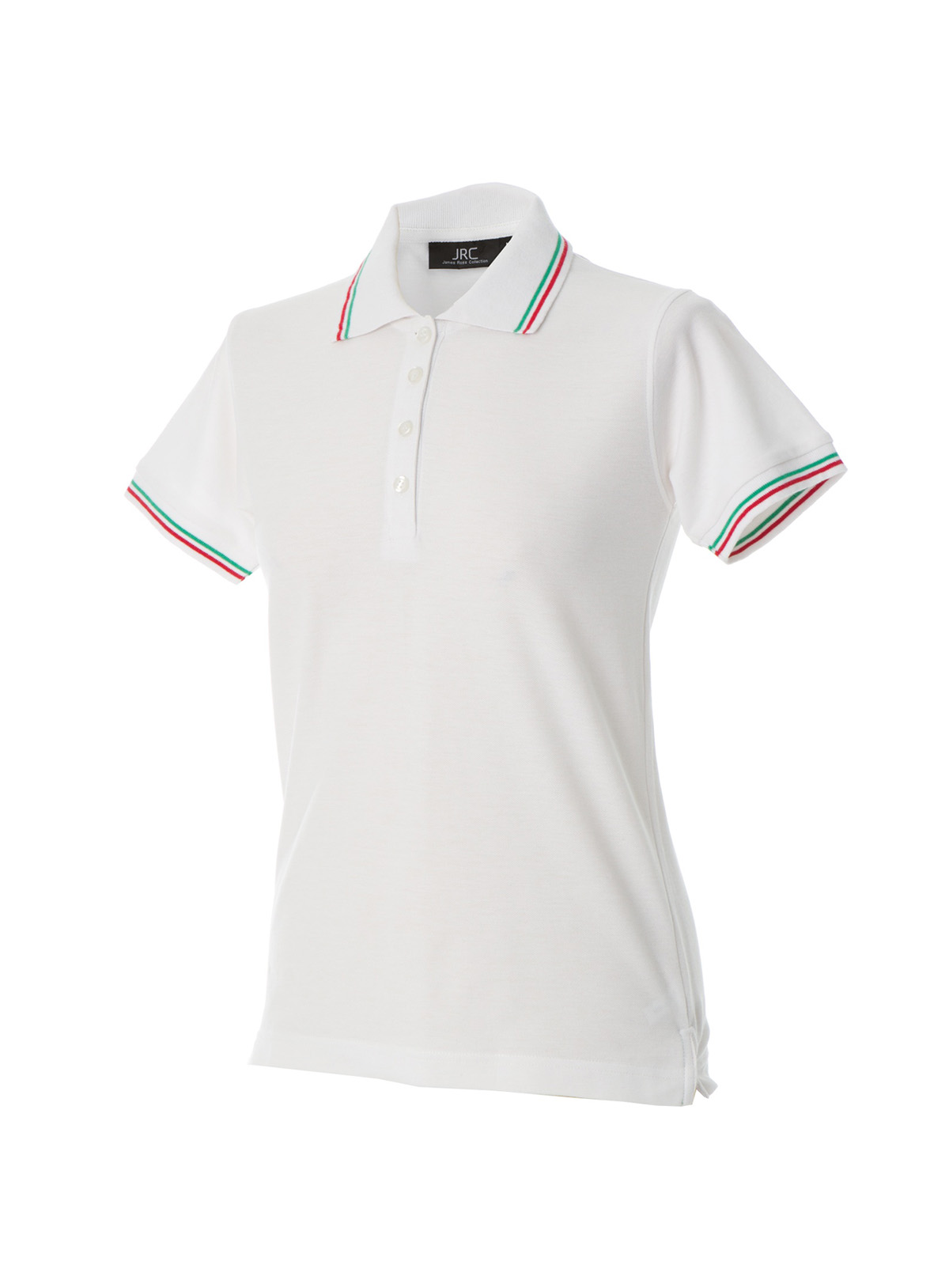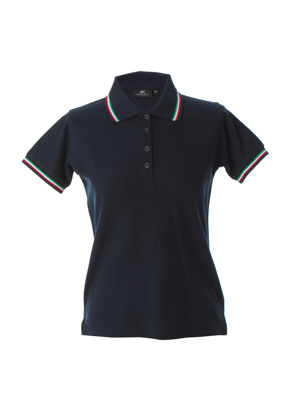 – Doppio piping tricolore su colletto e fondo manica