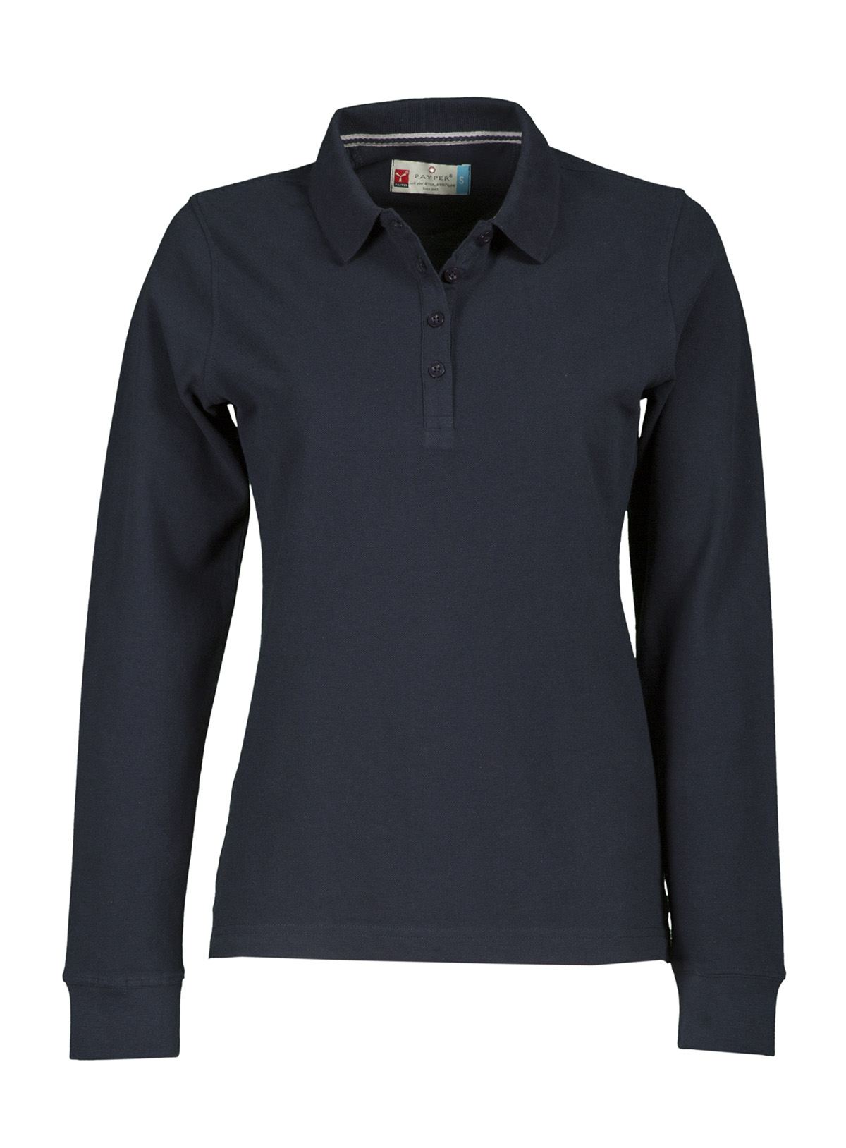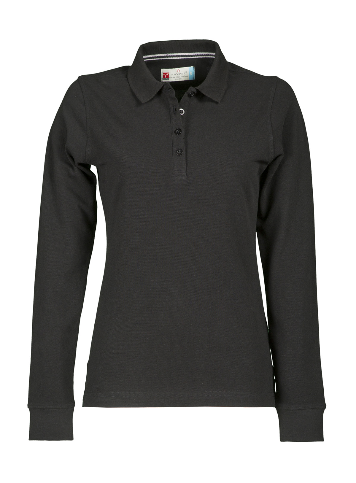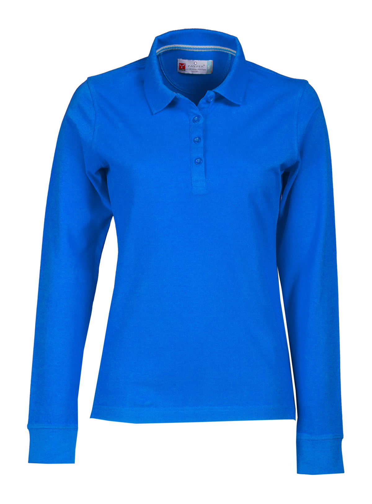 Polo a manica lunga con apertura a 4 bottoni in tinta, spacchetti laterali e lunetta dietro collo.