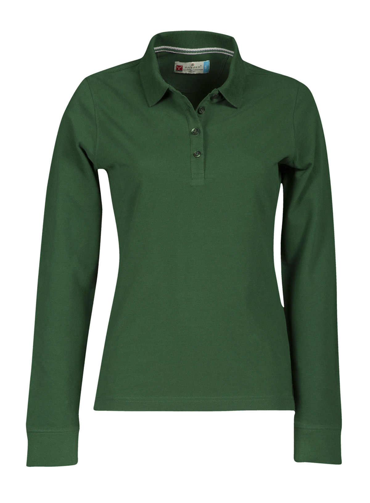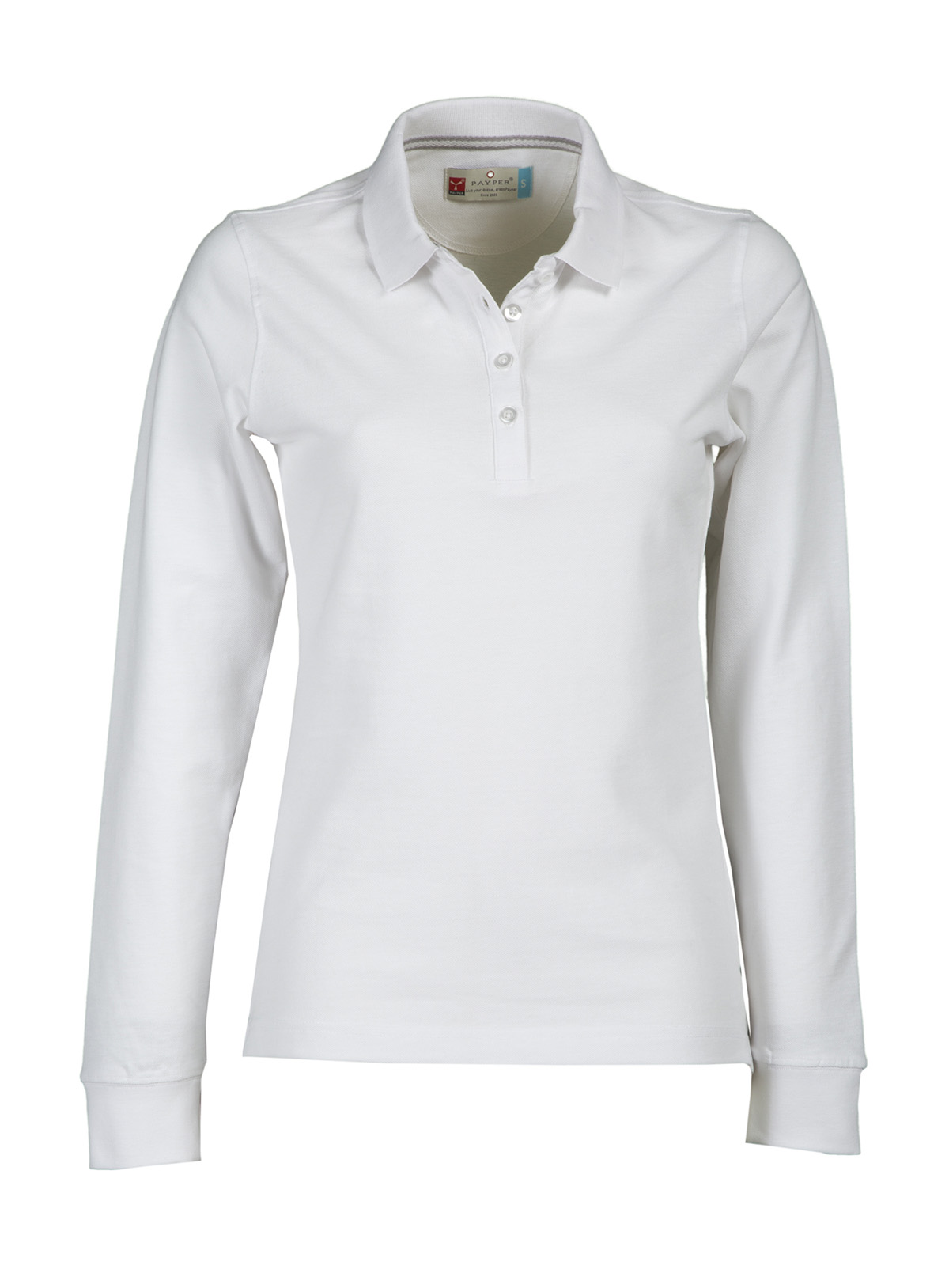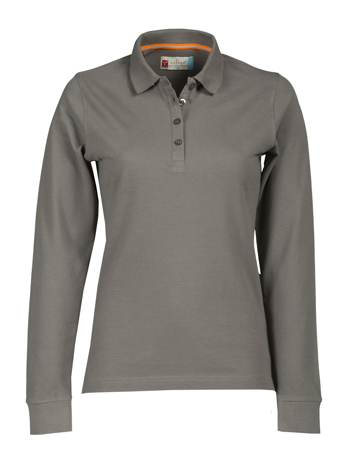 Polo a manica lunga con apertura a 4 bottoni in tinta, spacchetti laterali e lunetta dietro collo.