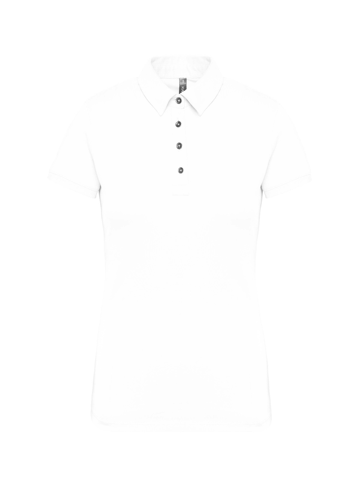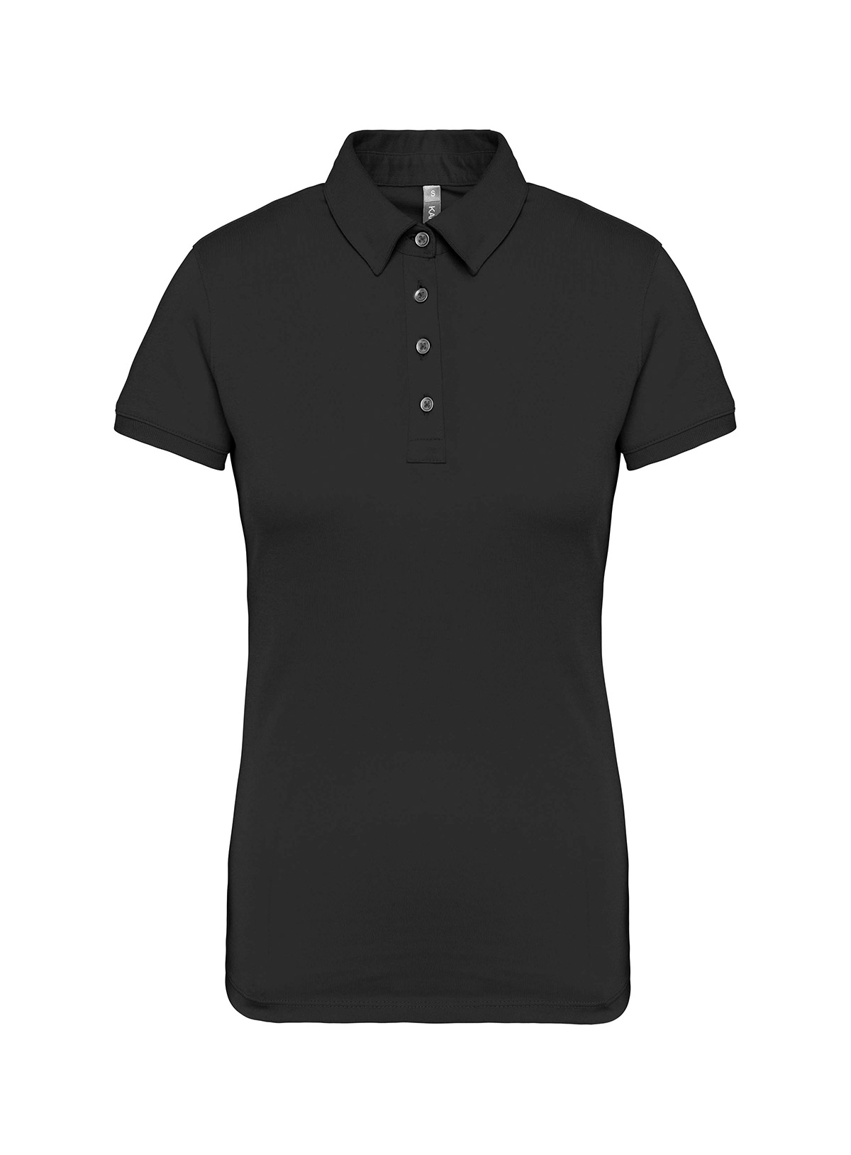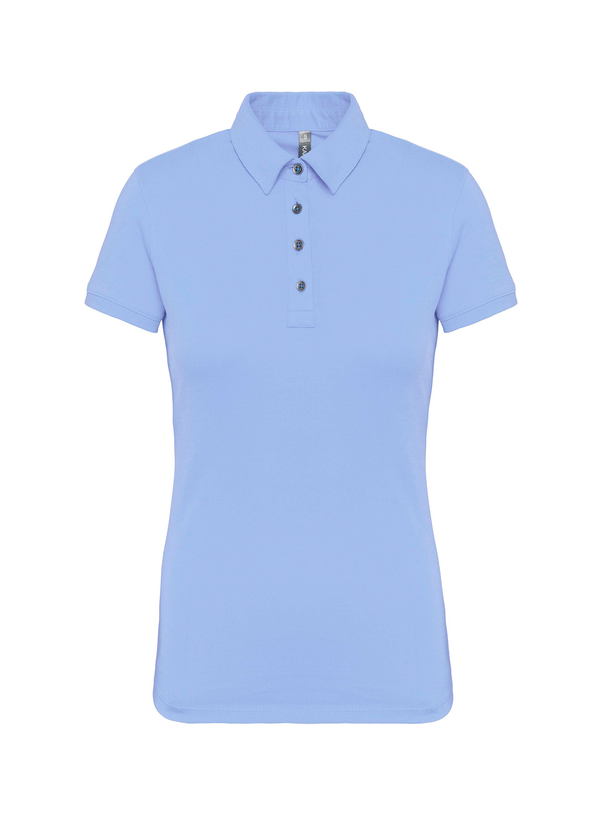 essuto in maglia jersey. Collo a camicia. Pattina con 4 bottoni in metallo. Inserto sulla spalla. Costine a fondo manica. Doppia impuntura a fondo capo.