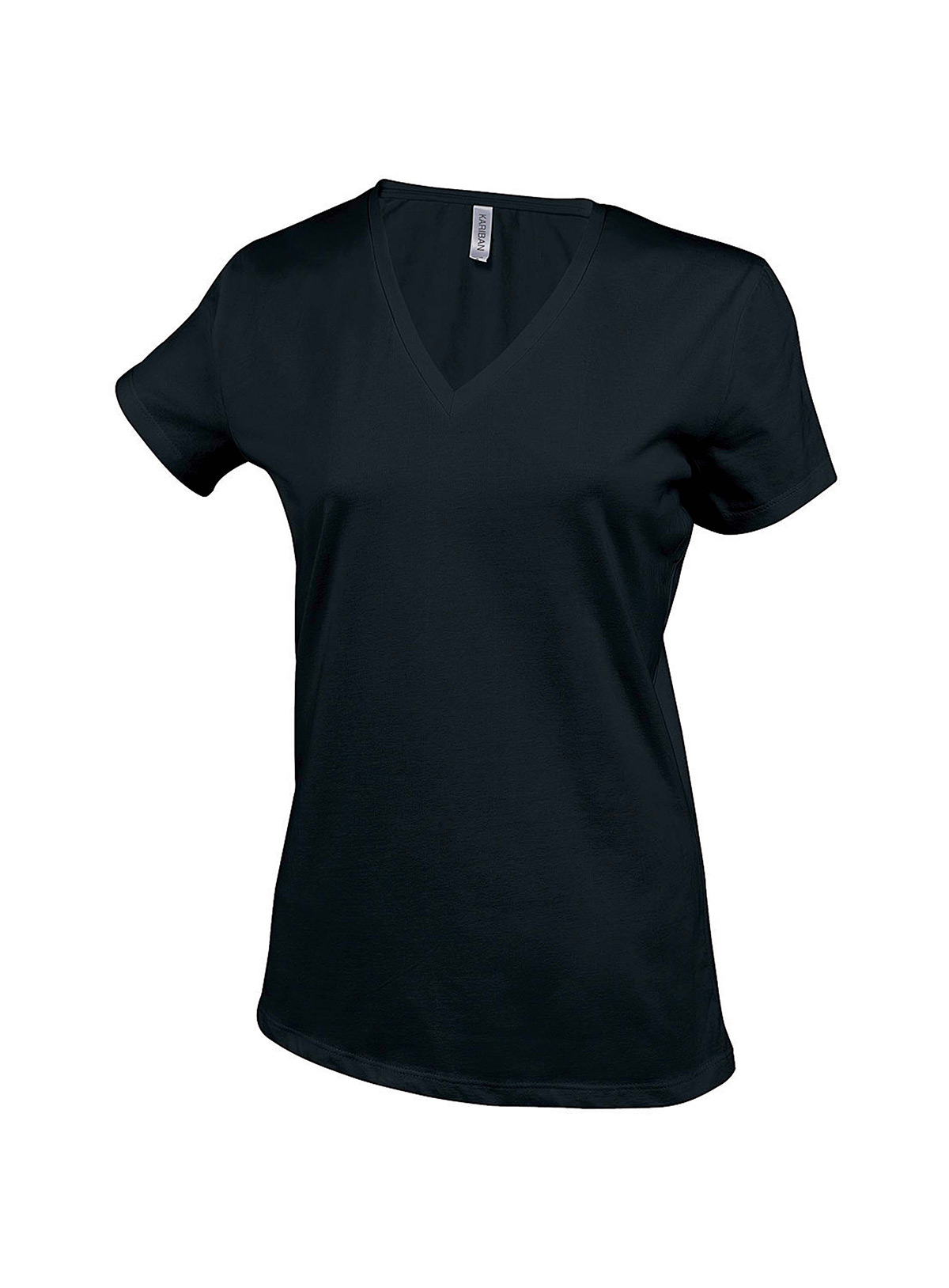 Vestibilità aderente. Scollo a V con costina e nastrino di rinforzo. Cuciture a doppio ago.