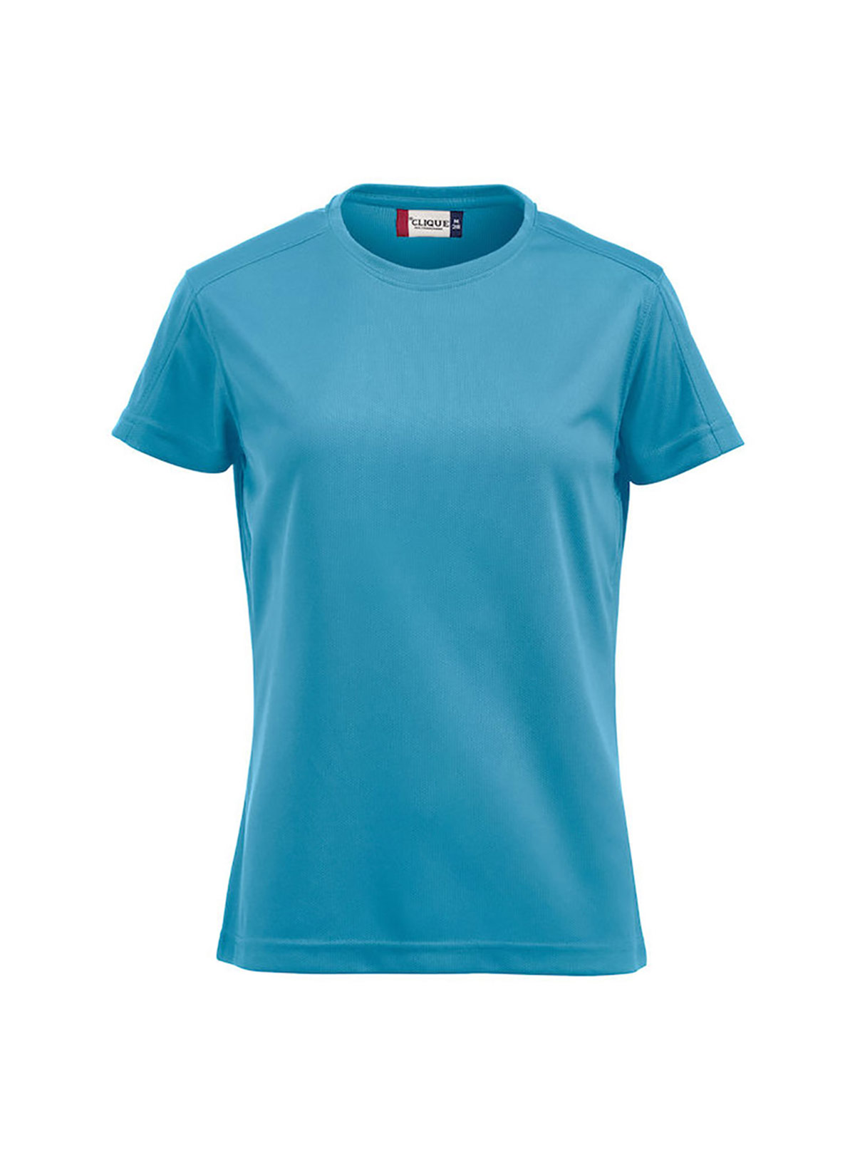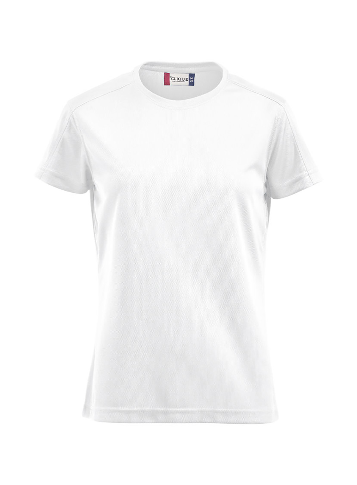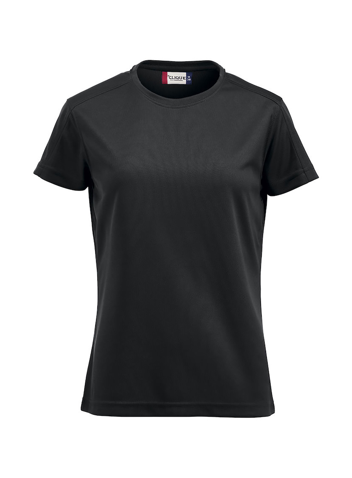 T-shirt donna in tessuto tecnico traspirante con cuciture laterali.